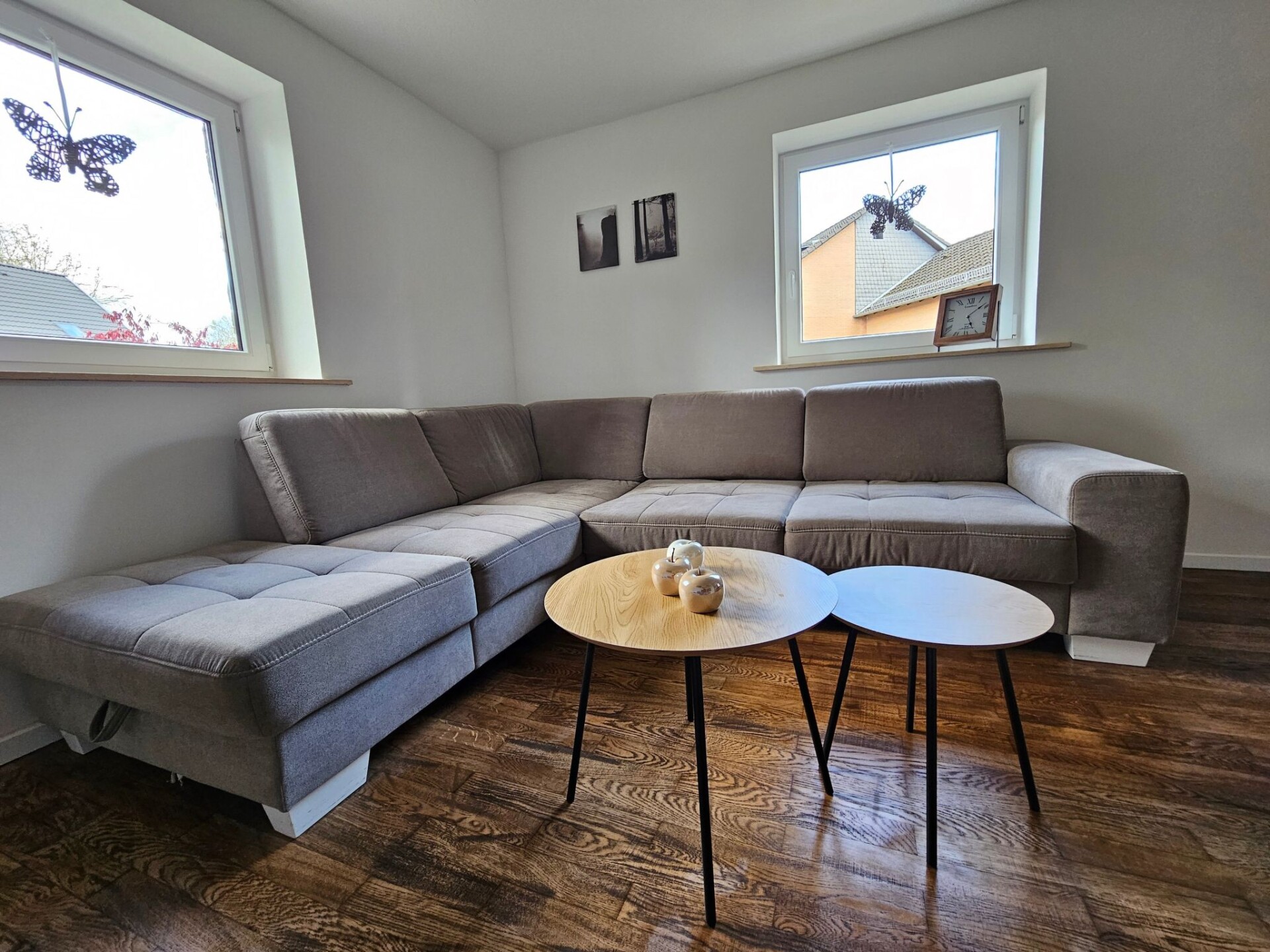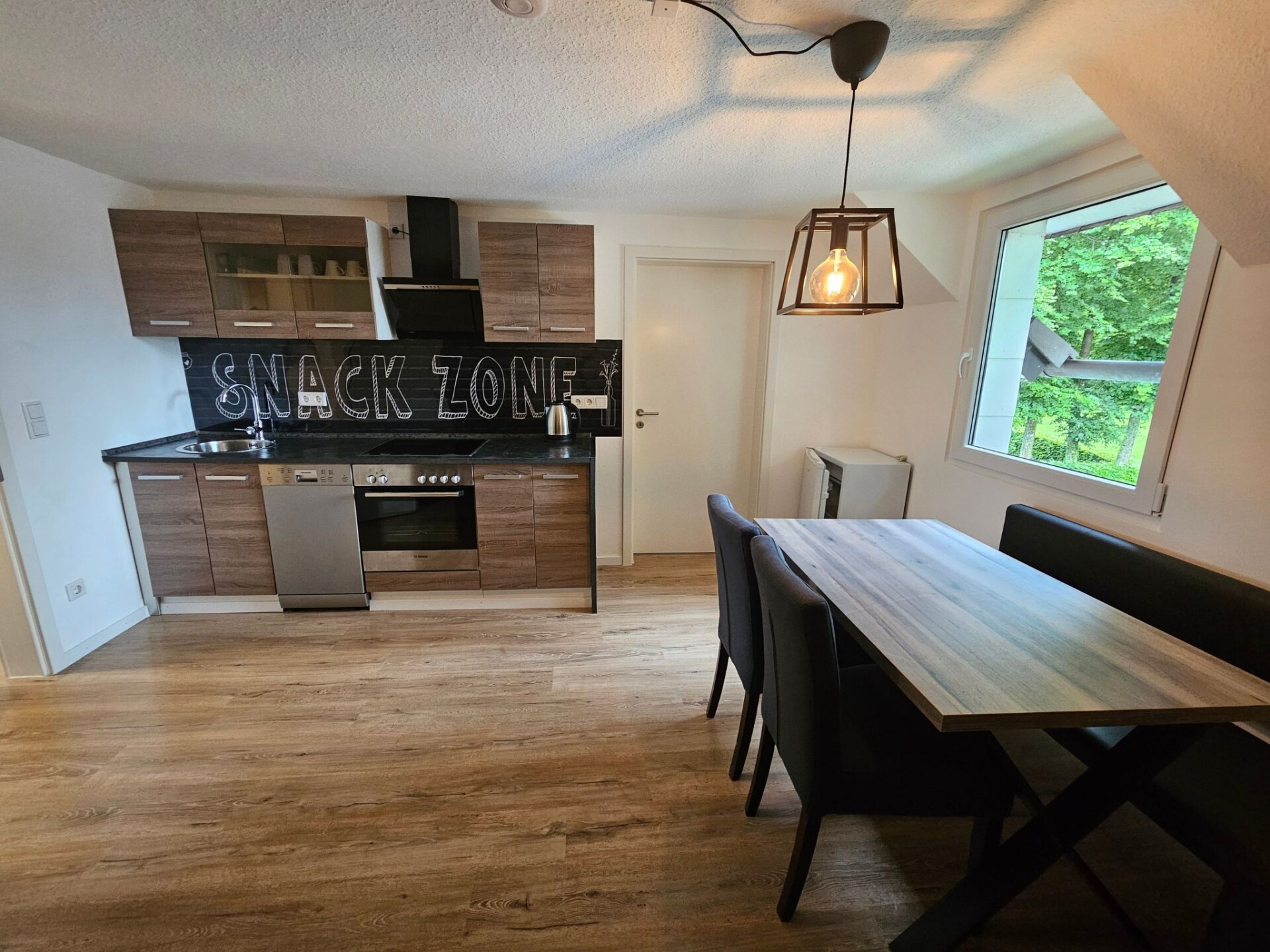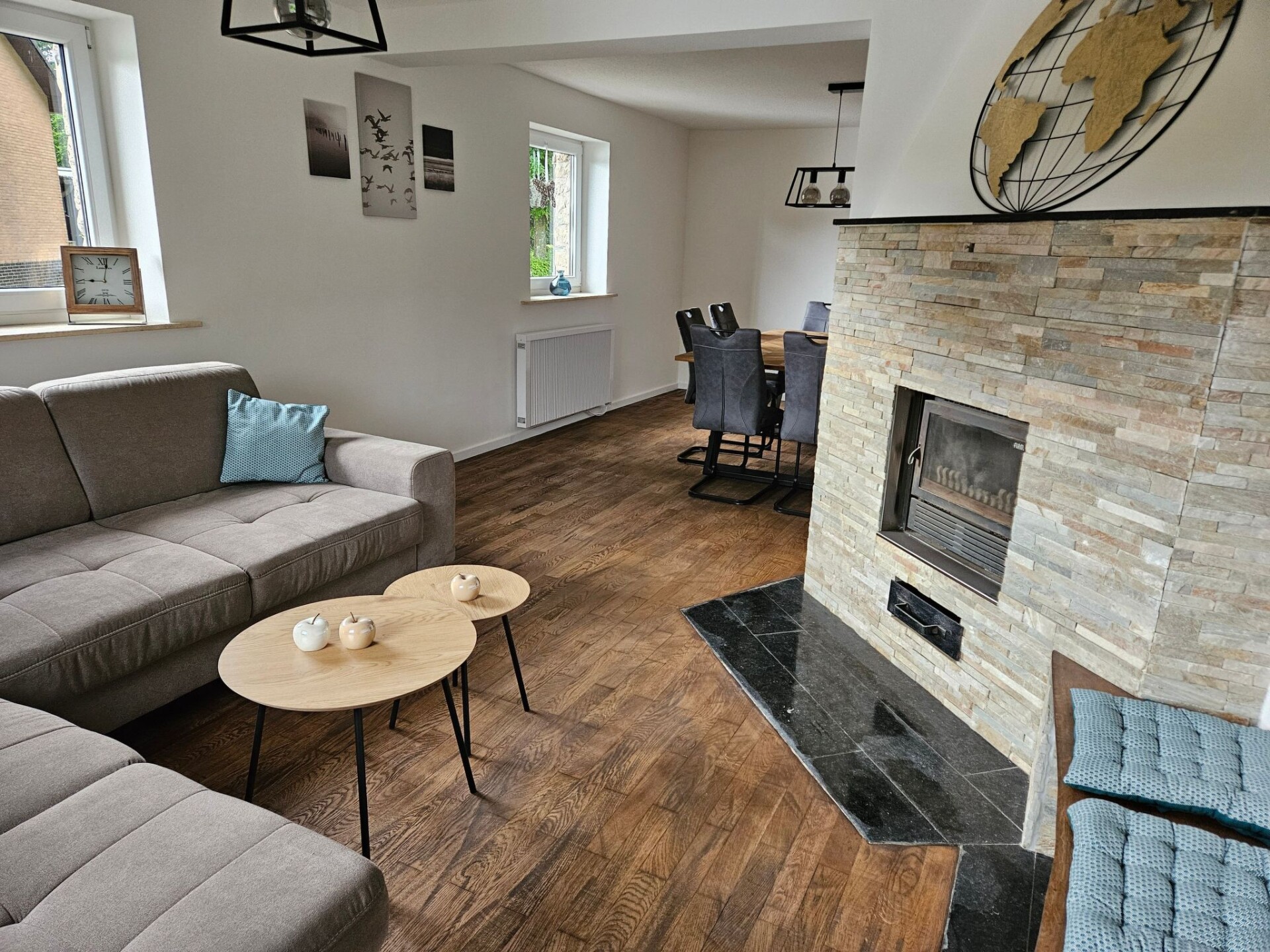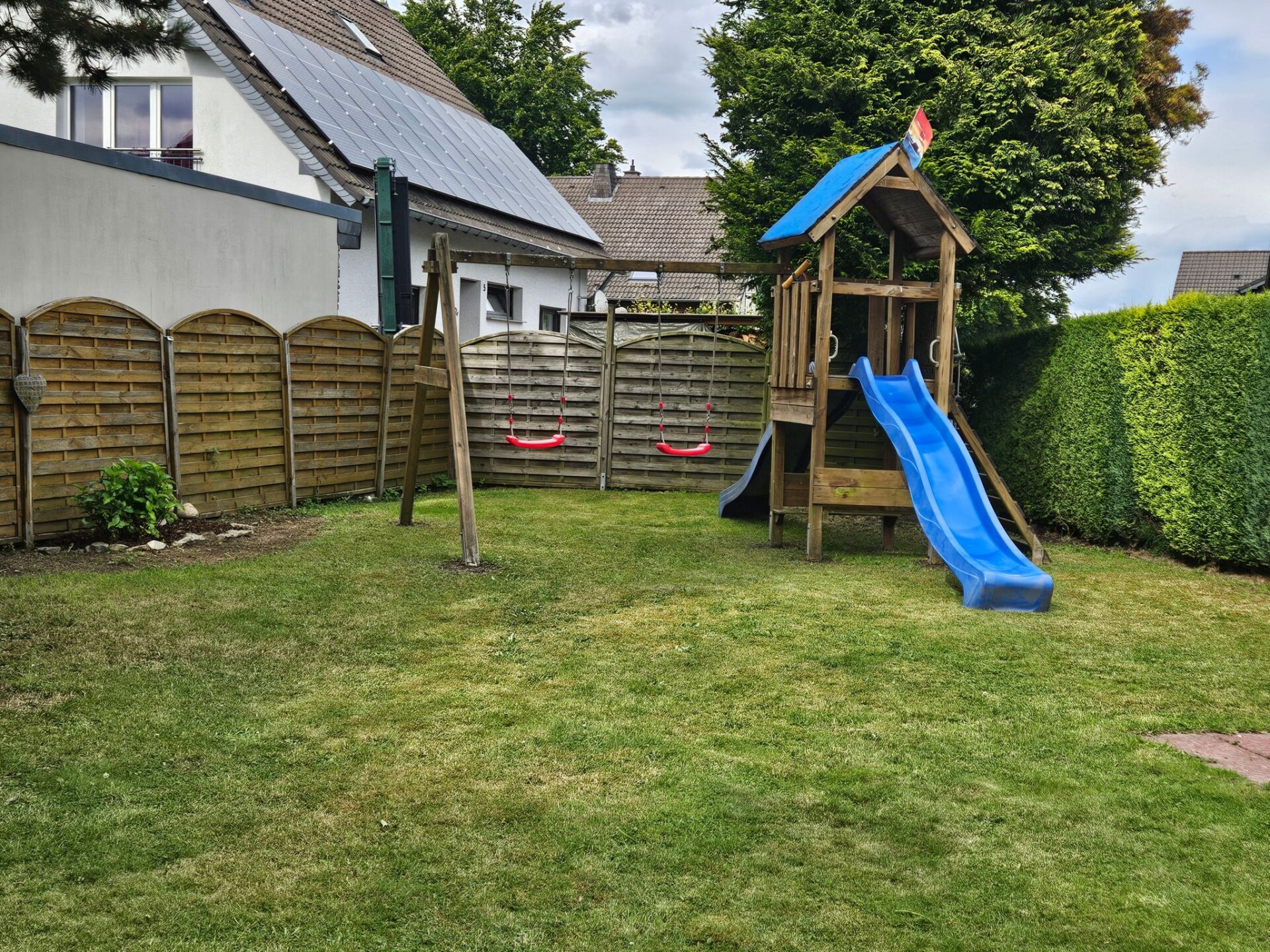 Experience unforgettable moments in our charming holiday home, idyllically situated in Höfen, in the heart of the Eifel National Park. Freshly renovated at the end of 2023 and beginning of 2024, you can expect tasteful and lovingly designed accommodation that offers the perfect retreat for nature enthusiasts and those seeking relaxation.The house has two floors with spacious rooms that can comfortably accommodate up to 10 people. There are a total of four separate bedrooms - three double rooms and one quadruple room - and a bathroom with shower and WC on each floor, as well as an additional WC next to the quadruple room. Two fully equipped kitchens on both floors offer all the necessary household appliances as well as sufficient cutlery and china for 10 people. The living and dining area with a large table and ample seating as well as a cosy wood-burning stove invite you to spend time together.A beautiful, large garden with a decked terrace offers plenty of space for outdoor relaxation. Here you can enjoy relaxing hours in nature. Free parking is available right next to the house, and for added convenience, two garages can be booked for an extra charge, ideal for guests who want to store their bikes safely.Our holiday home is located in the immediate vicinity of numerous hiking and cycling trails, making it the ideal starting point for exploring the Eifel National Park, the historic old town of Monschau, Lake Rursee and the High Fens. The nearest shopping facilities are in the neighbouring village of Imgenbroich. In Höfen itself and in the surrounding area you will find restaurants, a snack bar and a petrol station. For those interested in culture, the famous Monschau Christmas market is easy to reach by shuttle bus from a nearby bus stop.Enjoy the peaceful, natural surroundings of our holiday home and make your stay a special experience. Whether for relaxing days in nature or as a starting point for a variety of activities in the region - here you will find the ideal place for your group trips or family excursions. We look forward to welcoming you soon to our lovingly furnished holiday home in Höfen.Quiet timesIn the spirit of good neighbourliness, we ask you to respect the public quiet times such assuch as midday, night and Sunday rest. Also in the holiday home itselfshould also be kept quiet between 22:00 and 6:00 out of consideration.If you intend to bring your bicycles with you, we would ask you to book the lockable garage. It is not permitted to leave bicycles in the house.