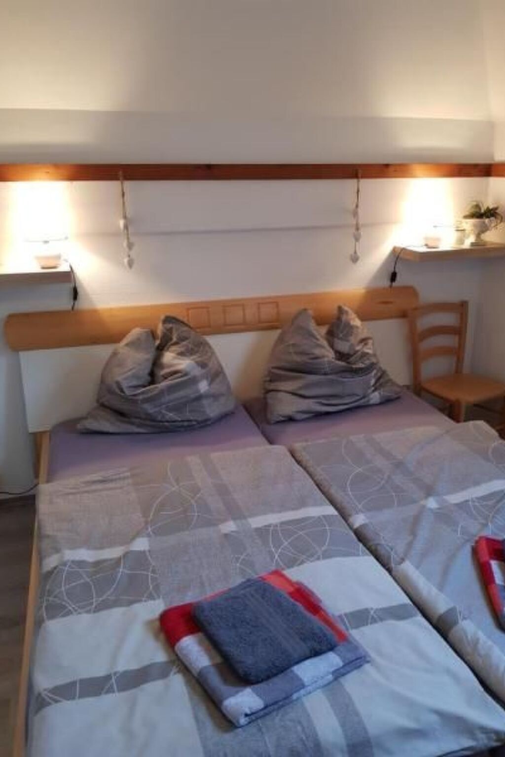 The Silbersee is one of the cleanest bodies of water in Hesse.With a small sandy beach, large sunbathing lawn and a jetty for pedal boats, the Silbersee invites you to adventure, fun and relaxation. You will stay in an idyllic and quiet 75 m² holiday park on the Silbersee in a modern house.The holiday home has 3 levels, on the ground floor you will find the living/dining area with fireplace, TV-SAT system, radio and a dining area. The open-plan kitchen on the upper floor is equipped with dishwasher, cooker, oven, toaster, microwave, coffee machine, kettle, hand mixer, sufficient pots and cooking utensils, fridge with freezer compartment and sufficient crockery.One bedroom on the 1st floor with wardrobe (a double bedroom with separate WC and washbasin, an extra shower with separate WC), on the 2nd floor a double bedroom and a bedroom with two single beds. Both have access to the balcony.Unfortunately not suitable for wheelchair users.There is a seating area in front of the house and a barbecue is available.The holiday park is a car-free zone, so that your children can move around safely. In the holiday park: restaurant, sauna, solarium, bowling alley (all extra). Swimming bay (DLRG in summer). In case of bad weather, "Frielo-Land" is available to all children (extra). New: From 7 Nov. 2009 "Wellnessparadies am Silbersee" is open with sauna, swimming pool, beauty etc. The holiday home is located in a pure holiday park in the beautiful Kurhessische-Bergland, the home of the Brothers Grimm. The holiday park is located directly on one of the cleanest lakes in Hesse. Motor vehicles are only allowed to drive onto the holiday park to a limited extent; it is only permitted to drive up to the holiday home for loading and/or unloading. However, there are plenty of parking spaces available for your vehicle in the park.A high chair and a travel cot are available on request.The holiday home is located in the Silbersee holiday park, in the middle of Germany, only 40 minutes by car south of Kassel. Via the A 7 motorway, exit Homberg (Efze), continue on the B 323 and the B 254 to the Frielendorf Nord exit and you will reach the holiday village after 1 km, which is located on the approx. 10,000 m² bathing lake. The holiday village is surrounded by extensive forests, which are ideal for hiking and mountain biking. The park offers a range of leisure activities such as a modern climbing park, a large indoor play paradise, a wellness paradise (indoor pool), miniature railway, all-weather toboggan run, petting zoo, archery, minigolf, skating and bowls, football, tennis and basketball courts, adventure playgrounds and much more.Shopping facilities can be found in the village shop and in Frielendorf (1.5 km). There are many excursion destinations in the surrounding area. The district town of Homberg/Efze with its castle and historic old town (approx. 10 km), the Knüll wildlife park (approx. 10 km), Schwalmstadt with its historic and fortified old town centres (approx. 12 km), surfing and diving at Singliser See (approx. 12 km), the Borken Mining Museum (approx. 15 km), the Kellerwald Nature Park (approx. 25-30 km), Kassel, the city of the Documenta and Hessentag 2013 (approx. 50 km), or the Edersee at the Edertalsperre (approx. 60 km).Arrival: 2-6 p.m.Departure: 9-10 amOnly the persons specified at the time of booking may stay in the holiday home.Short description 1Number of kitchens : 1SurroundingsHire facilities : boat hire, bike hireSports facilities in the neighbourhood : Fishing, Golf course, Climbing, Cycling toursGarden and outdoor facilitiesGarden equipment : Garden furniture available, BarbecueOutside: Garden available; barbecue; terrace;General: 2nd single bed; Bathroom: 2; Floor: 0; Bicycle rental: 0,00 km; Detached building; Plot size: 680 m²; Year of renovation: 2018; Bedrooms;Living: King-size bed; Radio; Satellite TV; TV;Bath/WC: Shower; Hairdryers; Toilet;Cooking: Oven; electric cooker; espresso machine; freezer compartment; hob; coffee machine; fridge; microwave; dishwasher; freezer; toaster; kettle;Other: View; Pets allowed: max. 2; Heating; No internet; Vacuum cleaner;Distances (as the crow flies, approx.): Distance to cafés/ restaurants: 1.00 km; Distance to grocery store: 1.00 km; Distance to lake: 30.00 km; Distance to train station: 15.00 km; Holiday park nearby: 1 m;SurroundingsRental facilities : Bicycle hireGarden and outdoor facilitiesGarden equipment : Barbecue