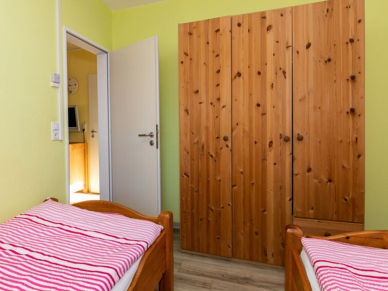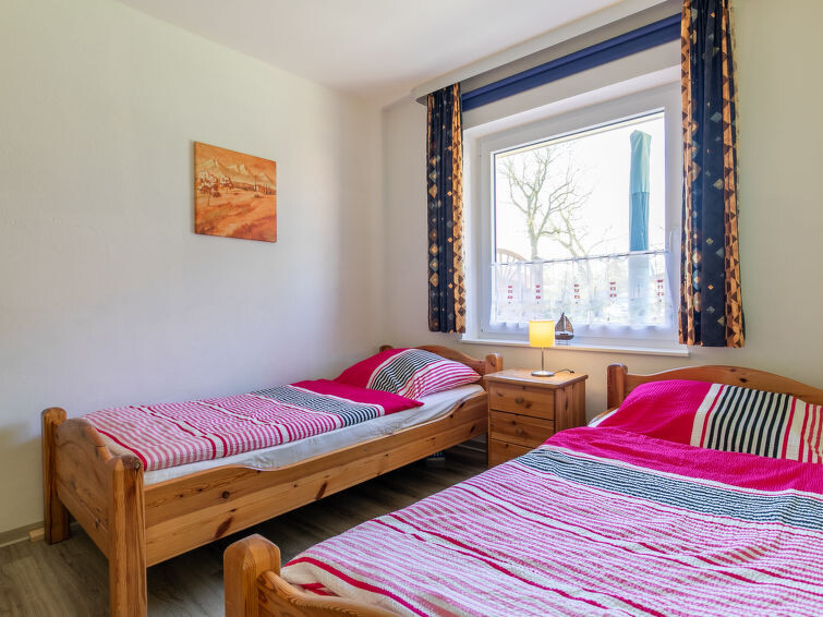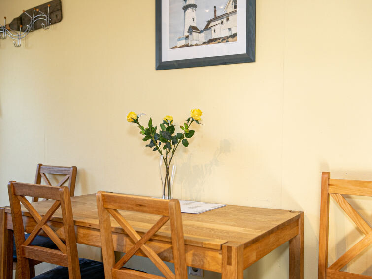 Appartement 3-kamers 45 m2, op de begane grond. Doelmatig en gezellig ingericht: woon-/eetkamer met eettafel, Sat-TV, radio en CD-speler. Uitgang naar het terras. 1 kamer met 1 2-pers bed. 1 kamer met 2 bedden (90 cm, lengte 200 cm). Keuken (oven, 4 keramische glas kookplaten, broodrooster, waterkoker, elektrische koffiemachine). Douche/WC. Terrasmeubelen. Ter beschikking: wasmachine, kinderstoel, kinderbed. Internet (Internet (WiFi), gratis). Niet rokers woning. Maximaal 1 huisdier/hond toegestaan. Rookmelders. Boekingen zijn alleen voor vakantiedoeleinden toegestaan.