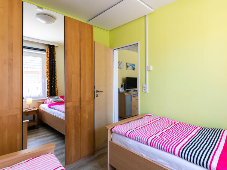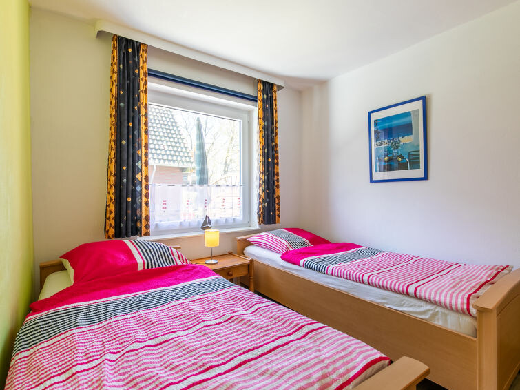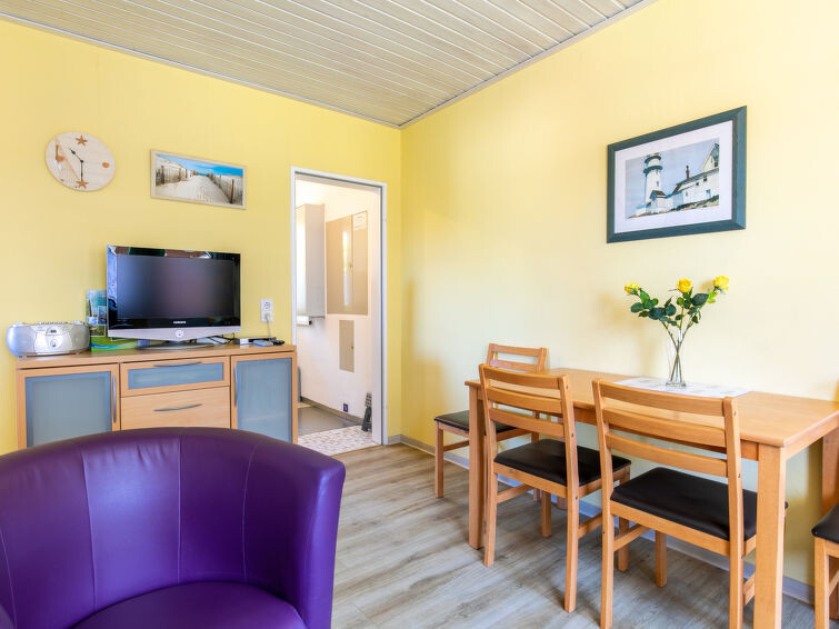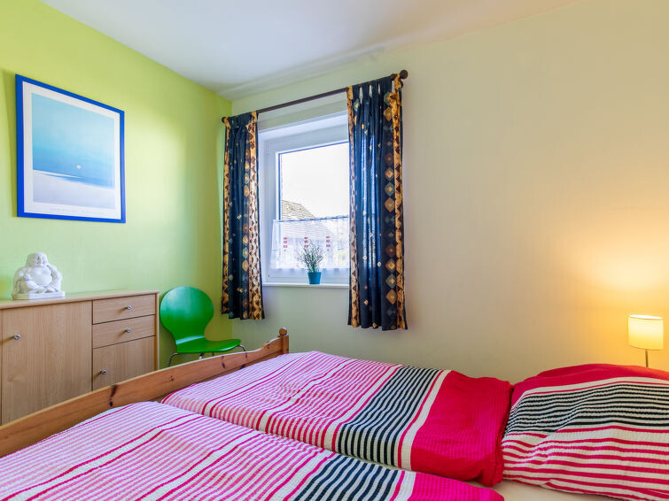 Appartement 3-kamers 45 m2, op de begane grond. Doelmatig en gezellig ingericht: woon-/eetkamer met Sat-TV, radio en CD-speler. Uitgang naar het terras. 1 kamer met 1 2-pers bed. 1 kamer met 2 bedden (90 cm, lengte 200 cm). Keuken (oven, 4 keramische glas kookplaten, broodrooster, waterkoker, elektrische koffiemachine). Douche/WC. Terrasmeubelen. Ter beschikking: wasmachine, kinderstoel, kinderbed. Internet (Internet (WiFi), gratis). Niet rokers woning. Maximaal 1 huisdier/hond toegestaan. Rookmelders. Boekingen zijn alleen voor vakantiedoeleinden toegestaan.