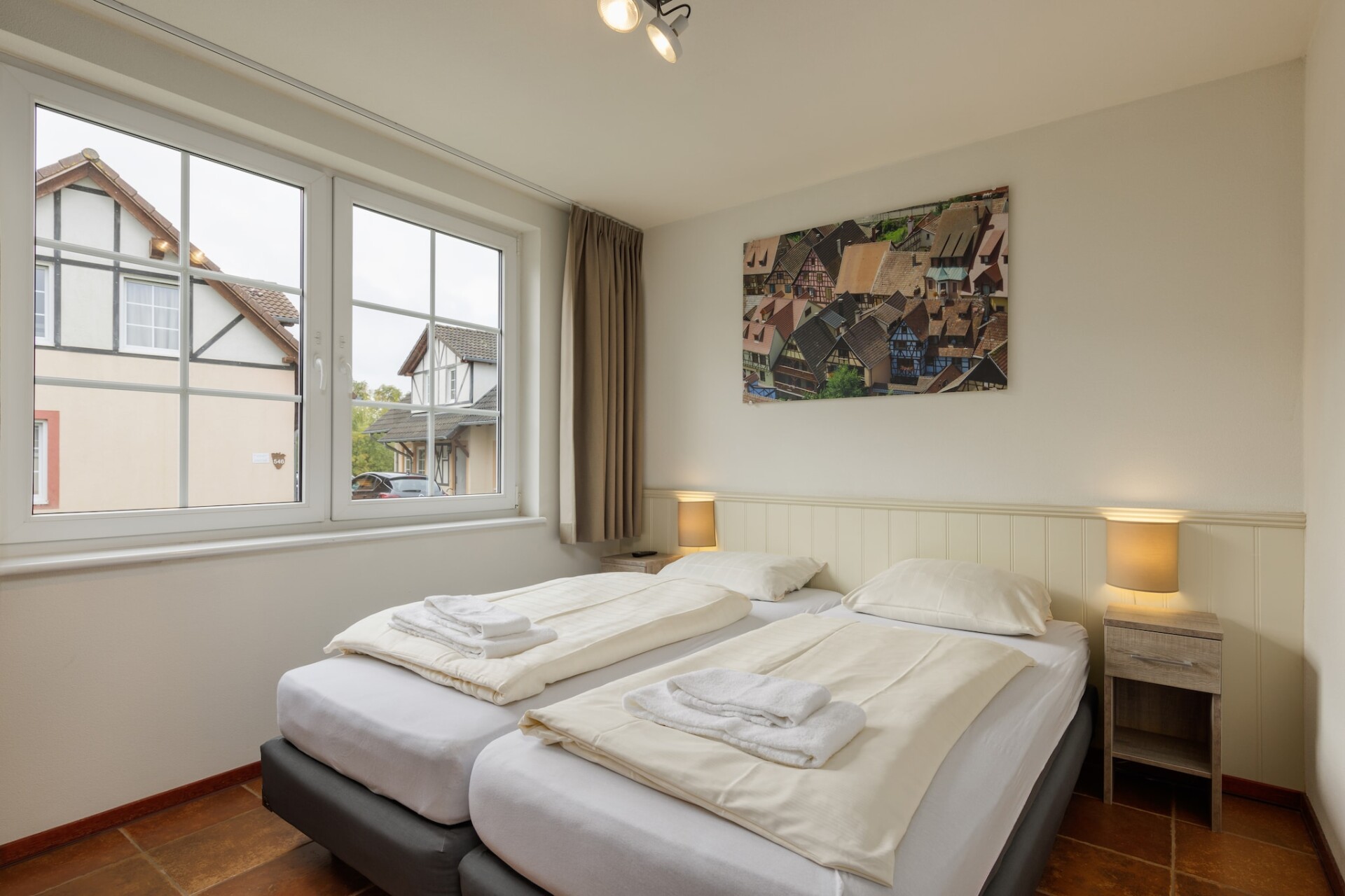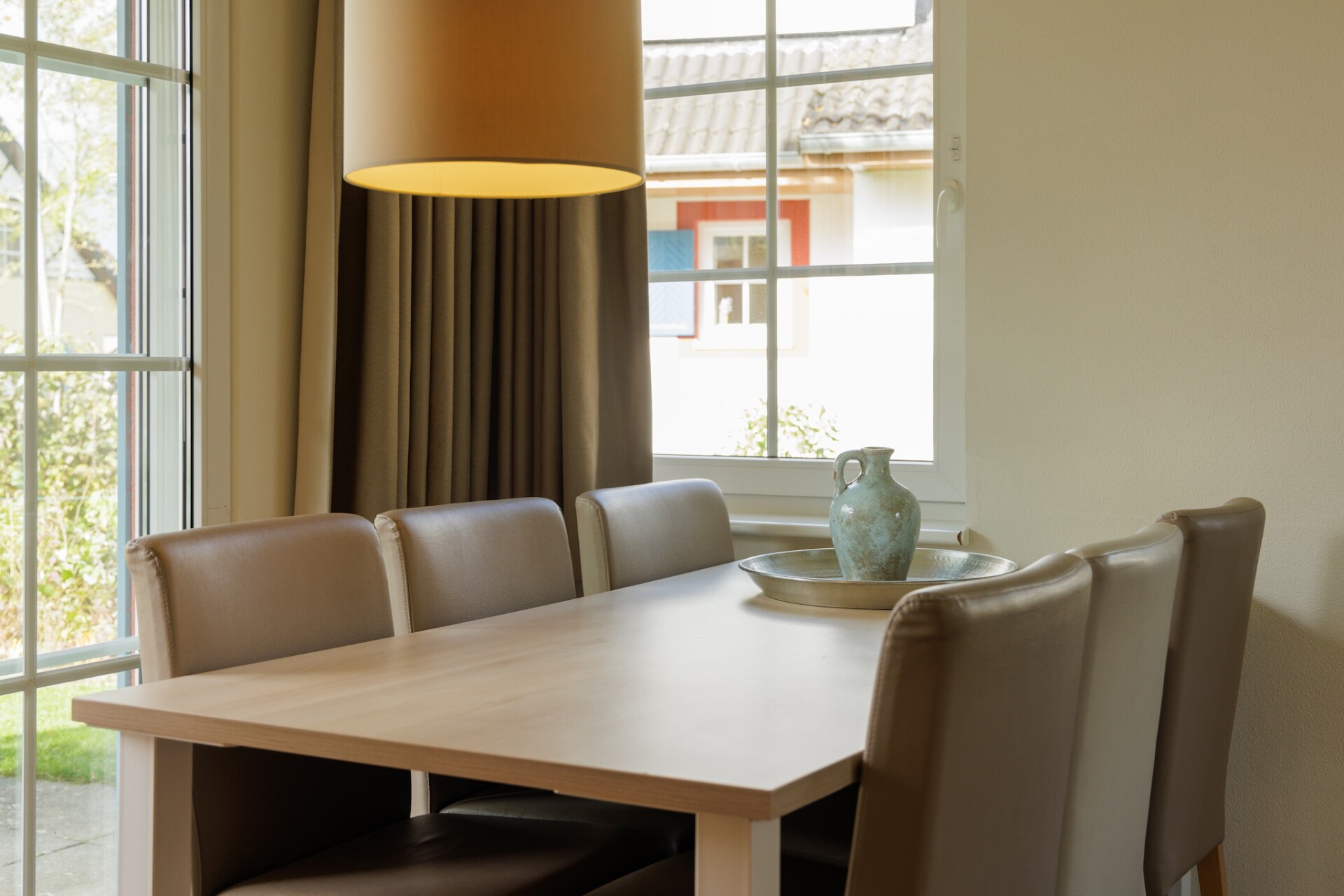 U beschikt over een ruime woonkamer en een open keuken met diverse moderne apparatuur. Beneden is er een slaapkamer met twee eenpersoonsbedden (die tot een tweepersoonsbed kunnen worden geschoven) en een en-suite badkamer. Boven zijn er twee eenpersoonsslaapkamers. Een van de slaapkamers is voorzien van een tv. De tweede badkamer bevindt zich ook boven. Alle bedden zijn boxspringbedden. Een berging met wasmachine en droger maakt het geheel compleet.