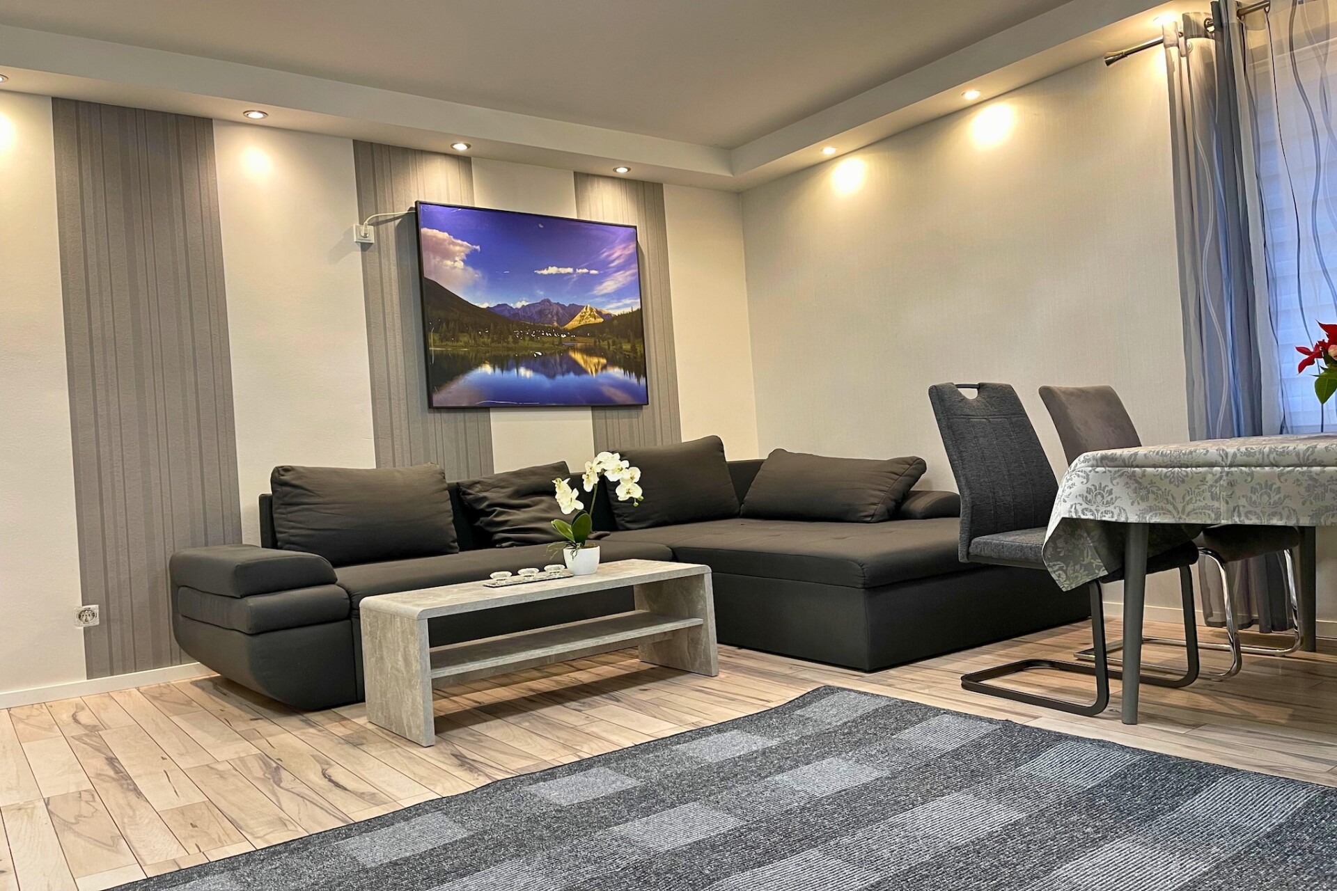 Dit goed ingerichte appartement, gelegen in het historische hart van Trier, is de perfecte keuze voor gezinnen of kleine groepen die op zoek zijn naar comfort en gemak. Dankzij de ruime indeling beschikt het appartement over een gezellige woonkamer met een eenpersoons slaapbank, tv, eettafel en zithoek – ideaal om te ontspannen na een dagje sightseeing. De volledig uitgeruste keuken is voorzien van een fornuis, oven, magnetron, vaatwasser, koffiezetapparaat en koelkast, waardoor u gemakkelijk en aangenaam zelf kunt koken.