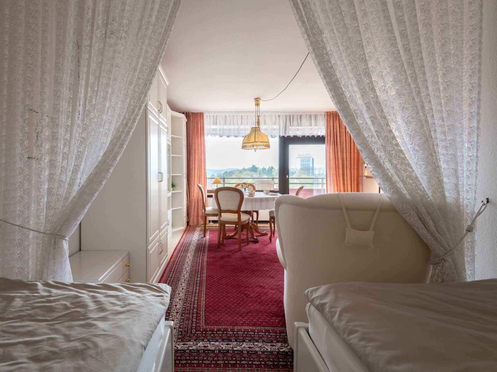 "Hunsrückblick (A905)", appartement 1-kamer 38 m2 op de 9e verdieping, op het westen gelegen. Woon-/eetkamer met Sat-TV (Flatscreen TV), air-conditioning. Uitgang naar het balkon. Slaapnis met 2 bedden (90 cm, lengte 200 cm). Kookhoek in de hal (4-pits kookplaat, broodrooster, waterkoker, magnetron, elektrische koffiemachine). Bad/douche/WC. Balkonmeubilair. Zeer mooi uitzicht op het landschap. Ter beschikking: Internet (WiFi, gratis). Niet rokers woning. Rookmelders. Boekingen zijn alleen voor vakantiedoeleinden toegestaan. In plaats van een afgesloten slaapkamer bevinden sommige slaapgedeeltes zich in een open ruimte (galerij, nis, etc.).