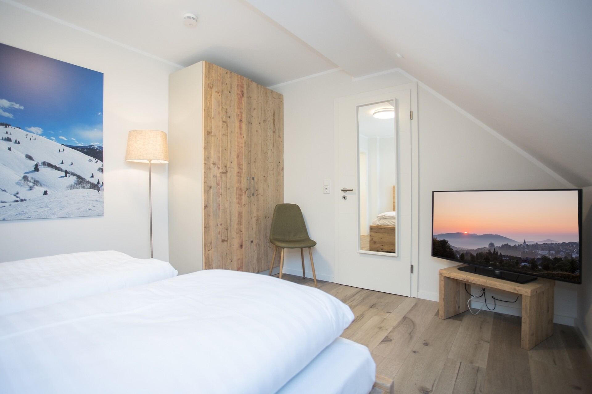 Het appartement, gelegen op de 2e etage, biedt ruimte voor 4 personen (2 volwassenen, 2 kinderen). Via de trap bereik je de accommodatie waarin alle kamers op één etage liggen, wel zijn er enkele hoogteverschillen, zoals een trapje. In de woonkamer vind je een comfortabele (slaap)bank met daarbij een televisie en een eettafel met ruimte voor vier personen. De keuken is van alle gemakken voorzien. Met een inductiekookplaat, combi-magnetron, vaatwasser, koelkast met vriesvakje, broodrooster, waterkoker en nespresso koffiezetapparaat heb je alles in huis om je maaltijden te bereiden. De slaapkamer ligt naast de keuken en bevat een tweepersoonsbed (2x 90x200cm). Er is hier een tweede tv aanwezig zodat je ook vanuit bed nog even heerlijk televisie kan kijken. Er zijn daarnaast 2 nachtkastjes, bedlampjes en een kledingkast aanwezig. Op de slaapbank in de woonkamer is verder slaapplaats voor 2 kinderen. De badkamer is ingericht met een inloop/regendouche, toilet, wastafelmeubel en een handdoekradiator. Vanuit de accommodatie kijk je uit over de bergen van Sauerland. De omgeving is heerlijk om te wandelen met je hond, die mag gezellig mee op vakantie want in deze accommodatie is één huisdier toegestaan. Er is in de accommodatie geen wasmachine aanwezig maar het is mogelijk om kosteloos gebruik te maken van de wasmachine in de gezamenlijke opbergruimte voor fietsen en bijvoorbeeld ski’s. Deze accommodatie ligt in Neuastenberg. In het centrum van Neuastenberg vind je een bakkerij en een aantal gezellige restaurants voor een hapje en een drankje. Het kleine gezinsvriendelijke skigebied, inclusief een natuurlijke rodelbaan, is perfect om met kinderen te skiën. De omgeving is rustig en gemoedelijk maar desondanks is er vanalles te beleven op de ski’s, slee, fiets of lopend. Hier zal je je niet snel vervelen!