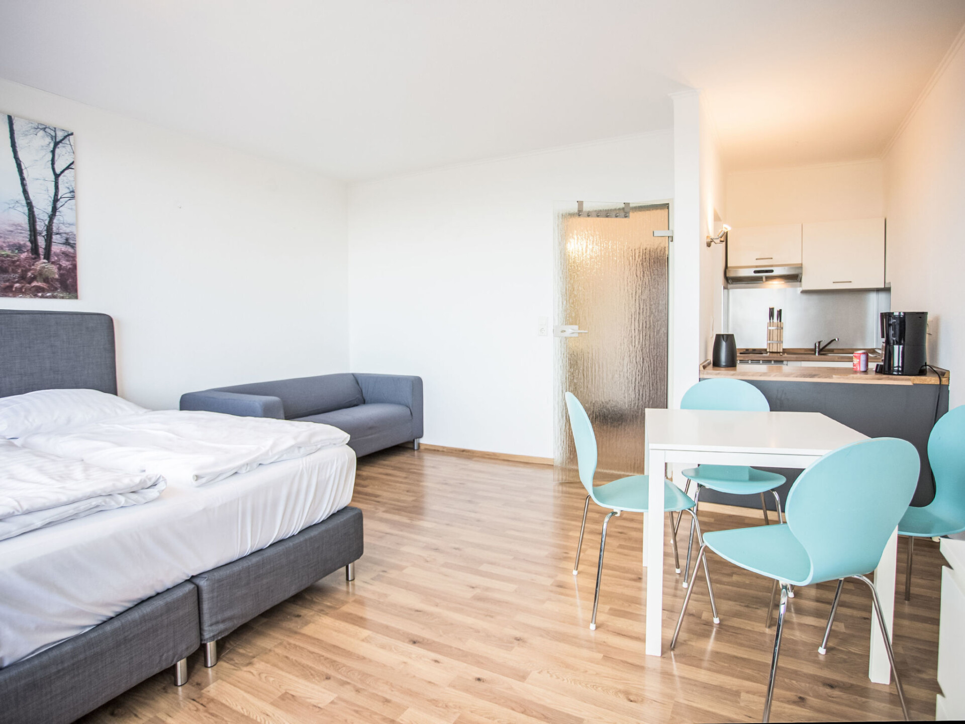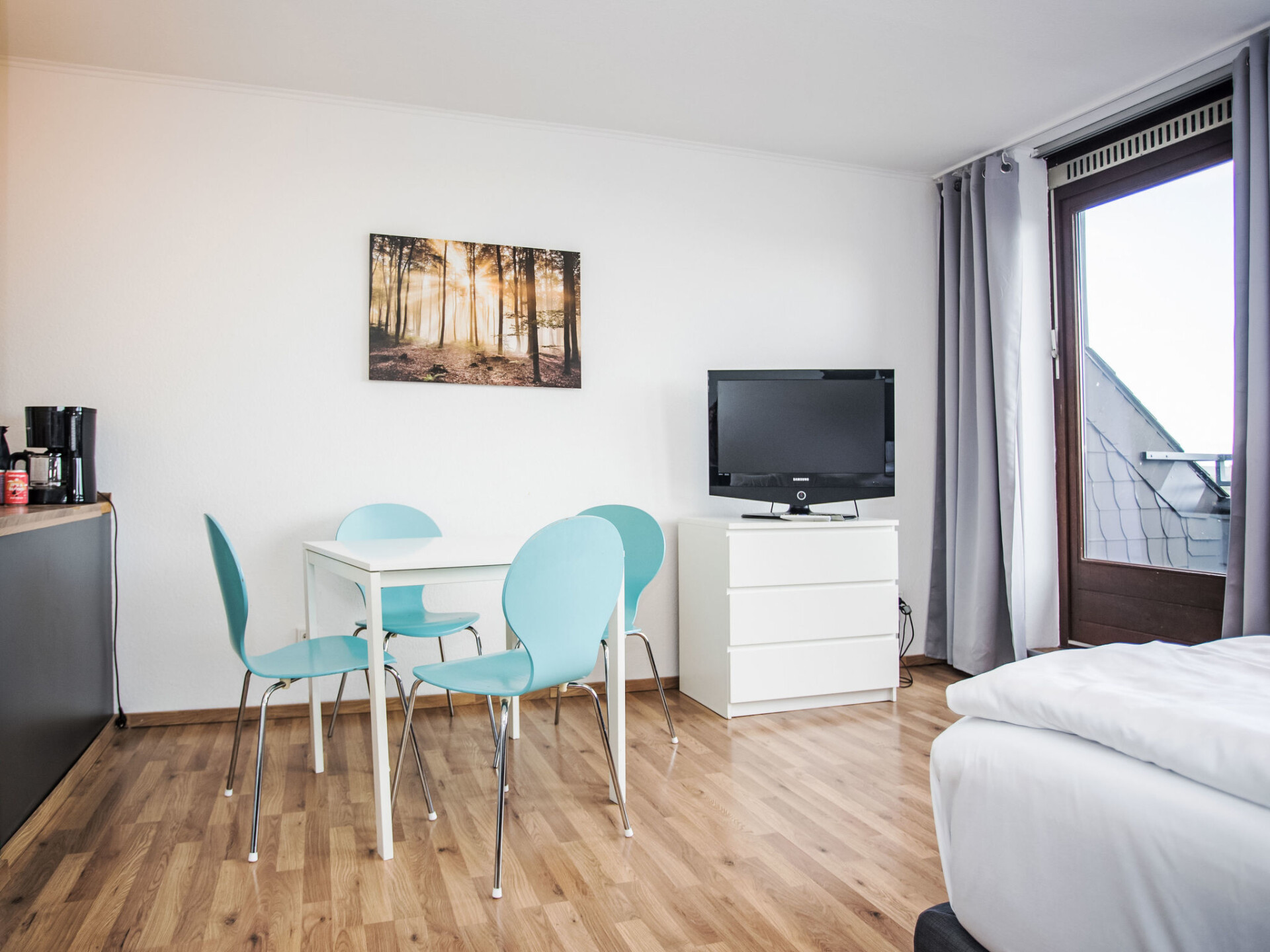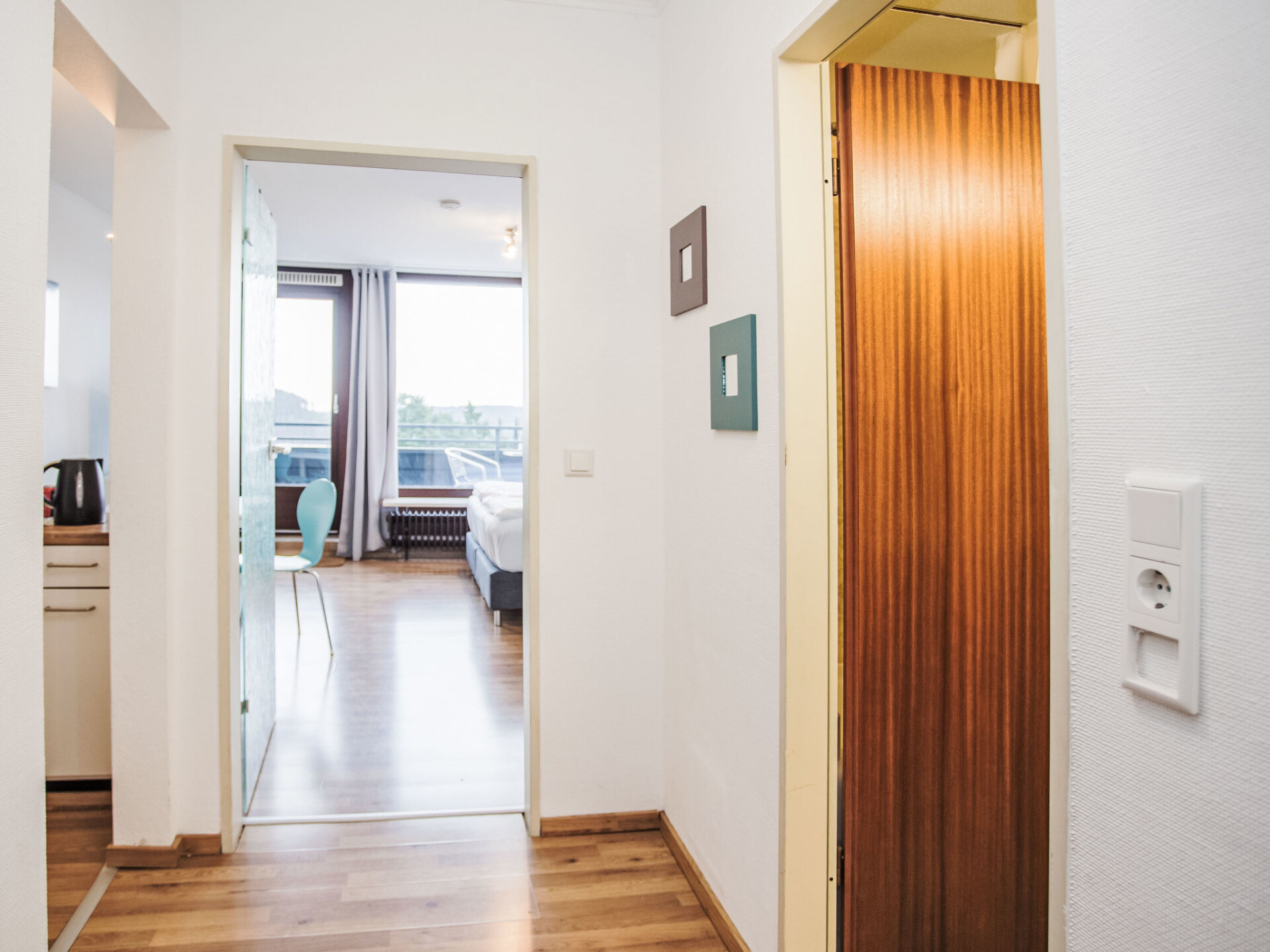 "Fernblick", appartement 1-kamer 38 m2, op de bovenverdieping. Doelmatig en modern ingericht: woon-/slaapkamer met 1 2-pers bed en Sat-TV (Flatscreen TV). Uitgang naar het balkon. Kleine, open keuken (2-pits kookplaat, broodrooster, waterkoker, elektrische koffiemachine) met eettafel. Bad/WC. Verwarming. Balkon. Balkonmeubilair. Mooi panoramazicht. Ter beschikking: Internet (WiFi). Parkeerplaats. Niet rokers woning. Maximaal 1 huisdier/hond toegestaan. Rookmelders, brandblusser.