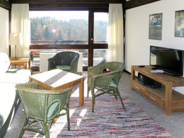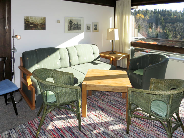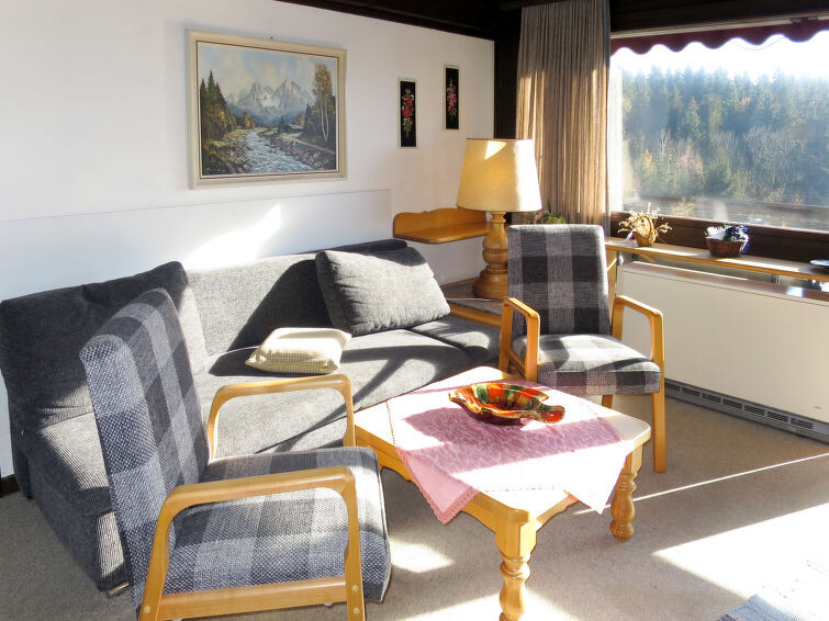 "Salzburg", appartement 2-kamers 68 m2 op 2 verdiepingen. Doelmatig en met veel hout ingericht: woon-/slaapkamer met 1 2-pers divanbed, eettafel en Sat-TV. Uitgang naar het balkon. Kookhoek (2-pits kookplaat, elektrische koffiemachine). Bad/WC of douche/WC. Verwarming. Bovenverdieping: open galerij met 2 bedden. Balkon. Balkonmeubilair. Niet rokers woning. Maximaal 1 huisdier/hond toegestaan. Rookmelders. Af en toe kan de slaapbank voor twee personen in de woonkamer vervangen worden door 2 eenpersoonsbedden op de galerij. In plaats van een afgesloten slaapkamer bevinden sommige slaapgedeeltes zich in een open ruimte (galerij, nis, etc.).