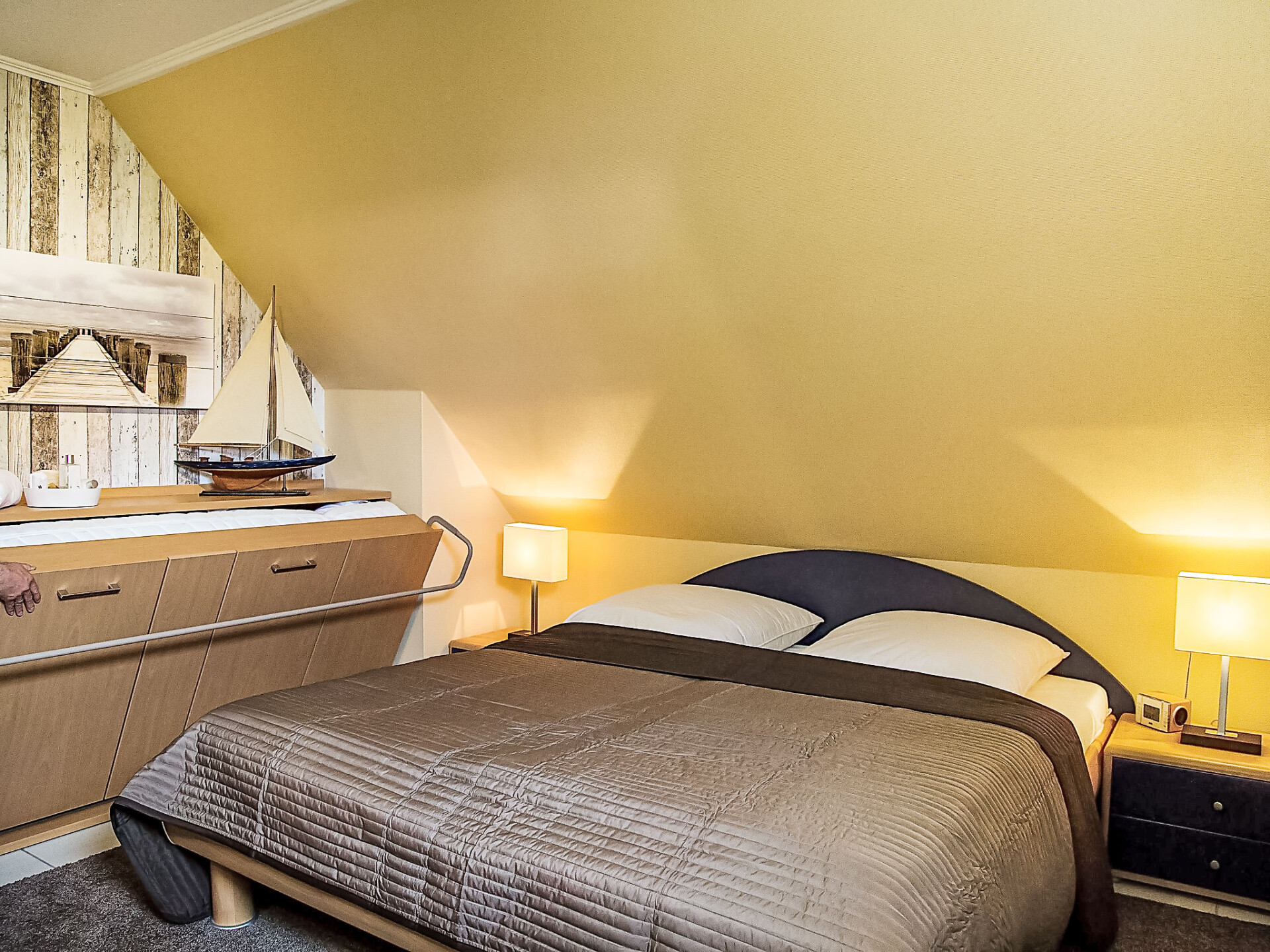 "Witthuus-Spiekeroog", appartement 3-kamers 74 m2 op de 1e verdieping. Comfortabel en stijlvol ingericht: woon-/eetkamer 25 m2 met Sat-TV (Flatscreen TV), DVD. Uitgang naar het balkon. 1 kamer 12 m2 met 1 2-pers bed (2 x 90 cm, lengte 200 cm), 1 kastbed (90 cm, lengte 190 cm). 1 kamer 12 m2 met 1 2-pers bed (2 x 90 cm, lengte 200 cm). Kookhoek (oven, afwasmachine, 4 keramische glas kookplaten, broodrooster, waterkoker, magnetron, elektrische koffiemachine). Douche/WC. Vloerverwarming. Balkon 15 m2, op het zuidoosten gelegen. Balkonmeubilair, elektrische barbecue, ligstoelen. Ter beschikking: kinderstoel, haardroger. Internet (Internet (WiFi), gratis). Parkeerplaats bij het huis. Niet rokers woning.