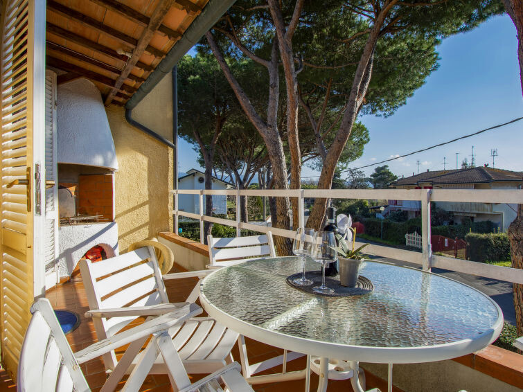 Huis met 2 woningen van 2 verdiepingen, omgeven door bomen. Aan de rand van de plaats, 1.5 km van het centrum van Marina di Castagneto, zonnige ligging in een woonwijk, 1.5 km van zee. Voor medegebruik: terrein (omheind). Voor alleengebruik: barbecue. In het huis: wasmachine. Wissel van linnengoed (extra wissel te betalen). Wissel van handdoeken (extra wissel te betalen). Schoonmaak op verzoek (extra). Parkeerplaats op het terrein. Oplaadstation. Levensmiddelenwinkel 100 m, supermarkt 2 km, café 100 m, bushalte "Hotel Il Pino N" 500 m, zandstrand 1.5 km. Attracties in de buurt: Castagneto Carducci, Bolgheri, Pisa, Lucca, Firenze.