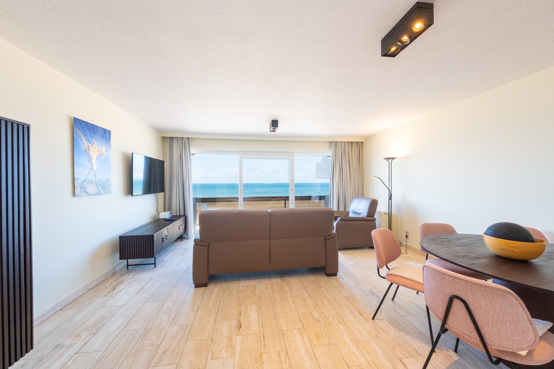 Appartement op de vijfde verdieping, ideaal voor een comfortabele vakantie aan zee. De woning beschikt over twee slaapkamers met elk een dubbel bed, waardoor het perfect is voor gezinnen of koppels die samen reizen. De ruime, lichtrijke woonkamer met grote ramen creëert een aangename sfeer en biedt toegang tot een terras met prachtig zeezicht. De volledig uitgeruste open keuken is voorzien van alle comfort om gezellig te koken en samen te tafelen. De vernieuwde badkamer met douche en het afzonderlijke toilet zorgen voor extra gebruiksgemak tijdens uw verblijf. Aan de achterzijde bevindt zich een zongericht terras met uitzicht op het hinterland, waar u heerlijk kunt ontspannen en genieten van de rust. Met zijn moderne inrichting, veel licht en twee terrassen combineert dit appartement comfort, stijl en ligging – de perfecte uitvalsbasis voor een onvergetelijke vakantie aan de Belgische kust. Wifi: ja - parking: inbegrepen - lakens: zelf meenemen - handdoeken: zelf meenemen.