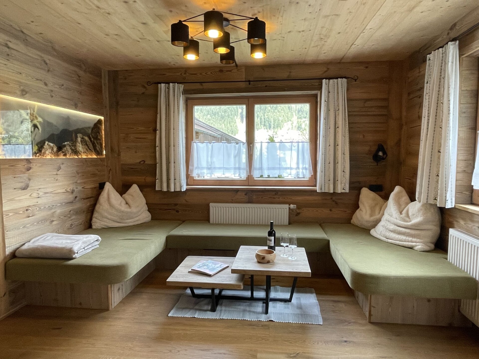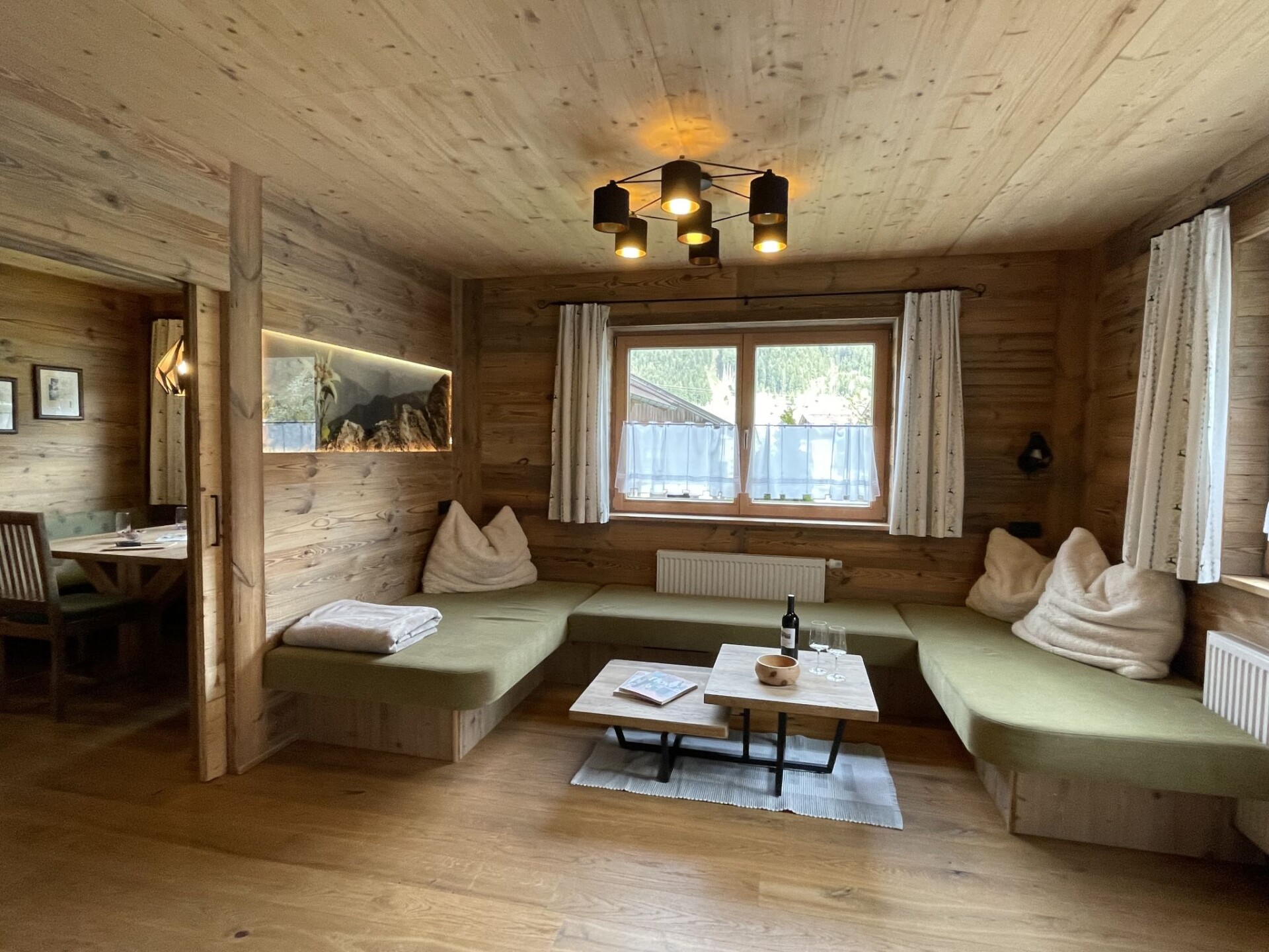 "Eberharter", appartement 4-kamers 90 m2 op de 1e verdieping. Volledig gerenoveerd in 2019, gezellig en met veel hout ingericht: woonkamer met Sat-TV. Uitgang naar het terras. 2 2-pers. kamers. 1 kamer met 1 bed. Keuken (oven, afwasmachine, 4 keramische glas kookplaten, broodrooster, waterkoker, diepvriezer, elektrische koffiemachine) met eethoek. Douche, aparte WC, dubbele wastafels. Houten vloeren. Terras 20 m2. Terrasmeubelen, barbecue (verrijdbaar). Ter beschikking: Internet (Internet (WiFi), gratis). Niet rokers woning. Privé ingang, brandblusser.