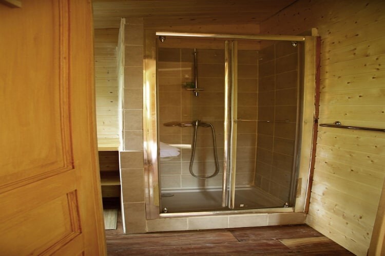 De lodge beschikt over een ruim terras van 30 m² met uitzicht op het rustige bos, waar u kunt ontspannen en wilde dieren kunt observeren, zoals reeën, hazen, wilde zwijnen en diverse vogelsoorten. De rustige omgeving en natuurlijke schoonheid creëren een serene sfeer, ideaal om na te denken, te lezen of gewoon te genieten van de geluiden van het bos.
