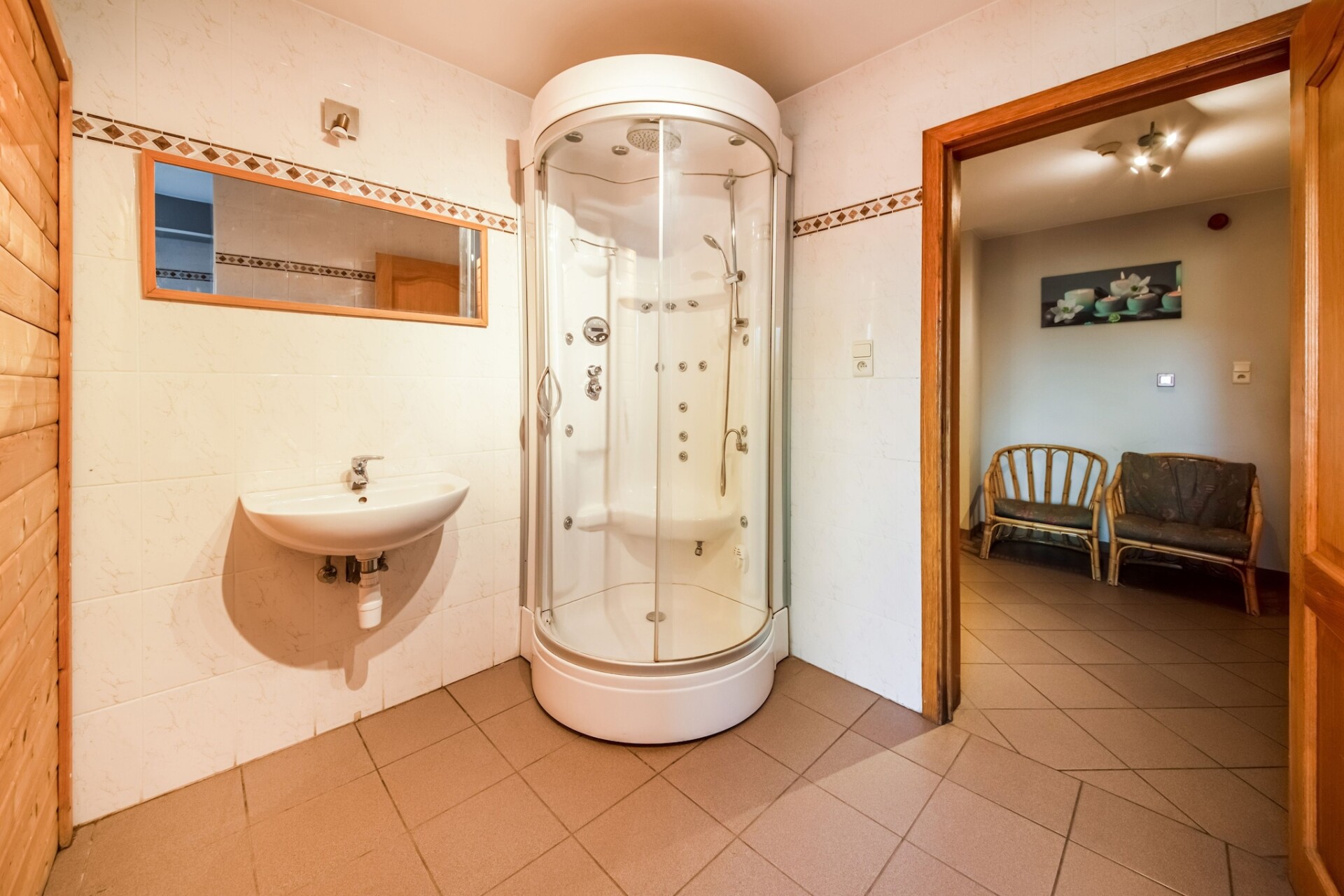 De villa beslaat drie verdiepingen en beschikt over zes slaapkamers, meerdere badkamers en een gezellige woonkamer met kabel-tv en een open haard. De keuken is uitgerust met een oven, magnetron en vaatwasser, terwijl de wellnessruimte beschikt over een bubbelbad en sauna. Een tweede badkamer is voorzien van een wasmachine en droger voor extra gemak. Buiten kunnen gasten ontspannen in de omheinde tuin, genieten van maaltijden op het terras en gebruikmaken van de barbecue en tuinmeubelen. Het gastenverblijf beschikt over zes stallen, ideaal voor paardenliefhebbers.