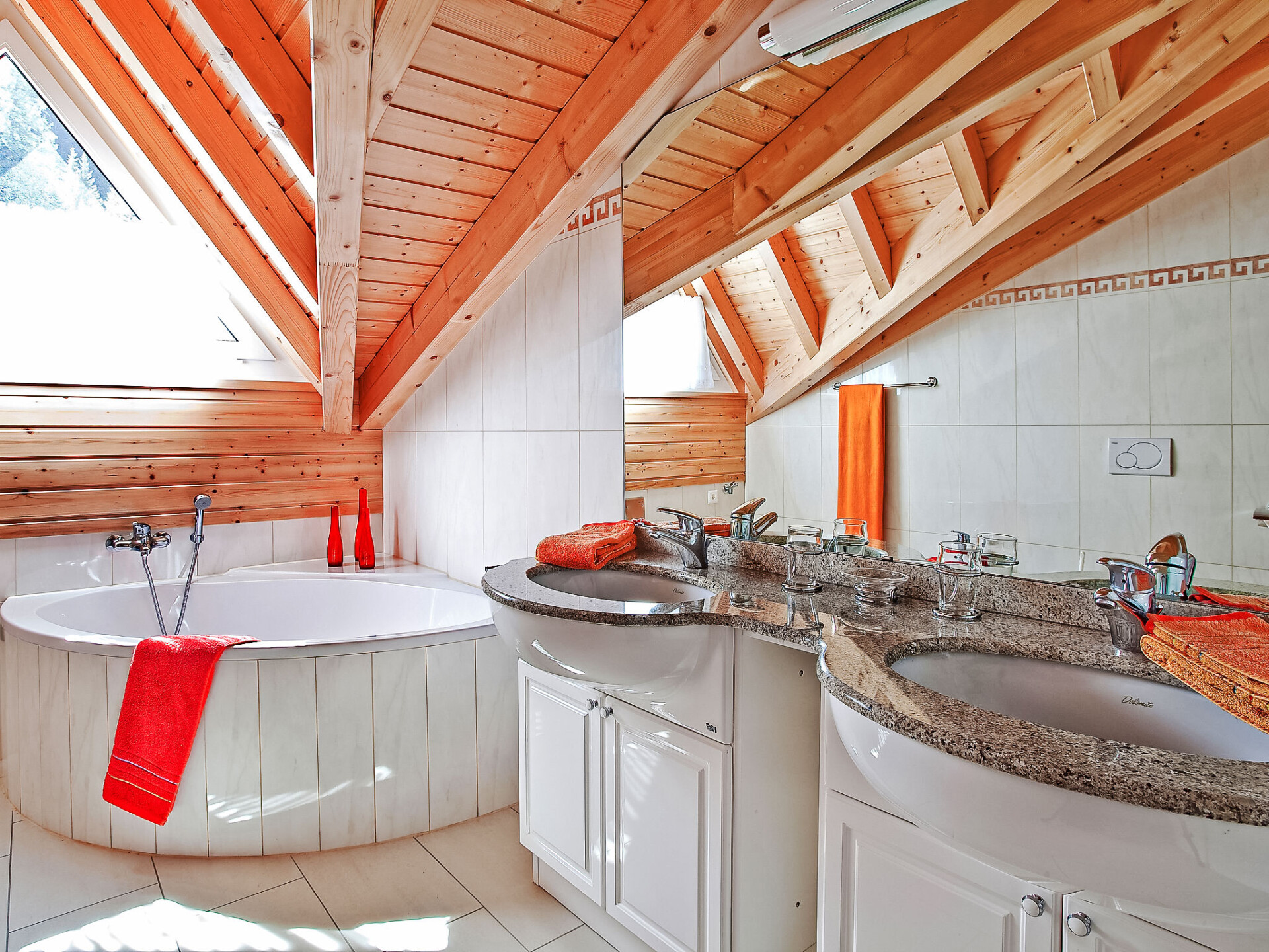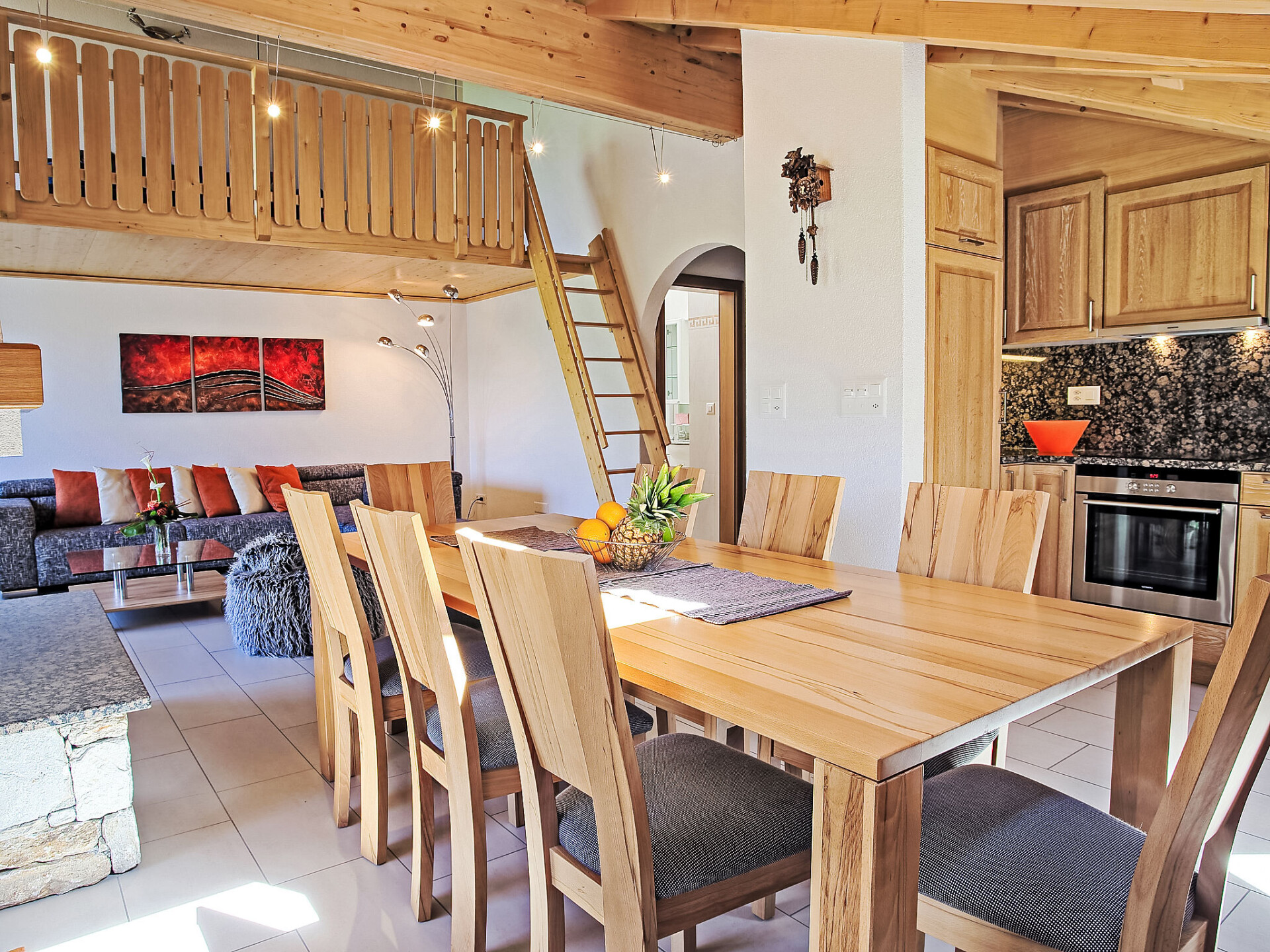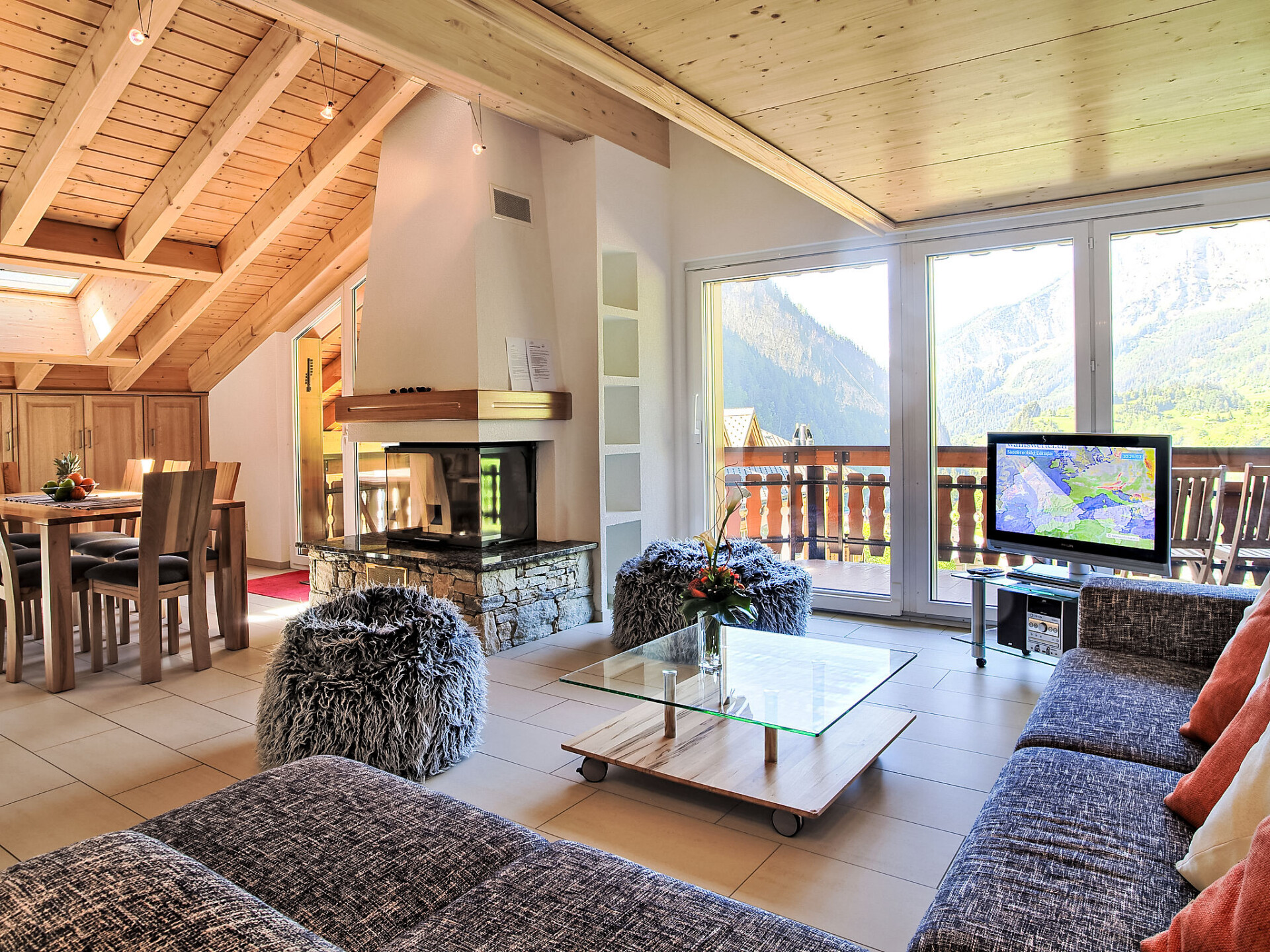 Dakappartement 3-kamers 98 m2 op 2 verdiepingen op de 4e verdieping. Comfortabel en smaakvol ingericht: woon-/eetkamer met open haard en Kabel-TV (Flatscreen TV), stereo-installatie en DVD. Uitgang naar het balkon, op het zuiden. 1 kamer met afgeschuinde daken met 1 2-pers bed, bad/bidet/WC en Kabel-TV (Flatscreen TV). 1 kamer met 2 bedden. Open keuken (oven, afwasmachine, 4 keramische glas kookplaten, magnetron, elektrische koffiemachine). Douche/WC. Bovenverdieping: (ladder) open galerij met 2 bedden. Terrasmeubelen. Zeer mooi uitzicht op de bergen en het landschap. Ter beschikking: kinderstoel, kinderbed. Internet (WiFi, gratis). Parkeerplaats (overdekt). Niet rokers woning. In plaats van een afgesloten slaapkamer bevinden sommige slaapgedeeltes zich in een open ruimte (galerij, nis, etc.).