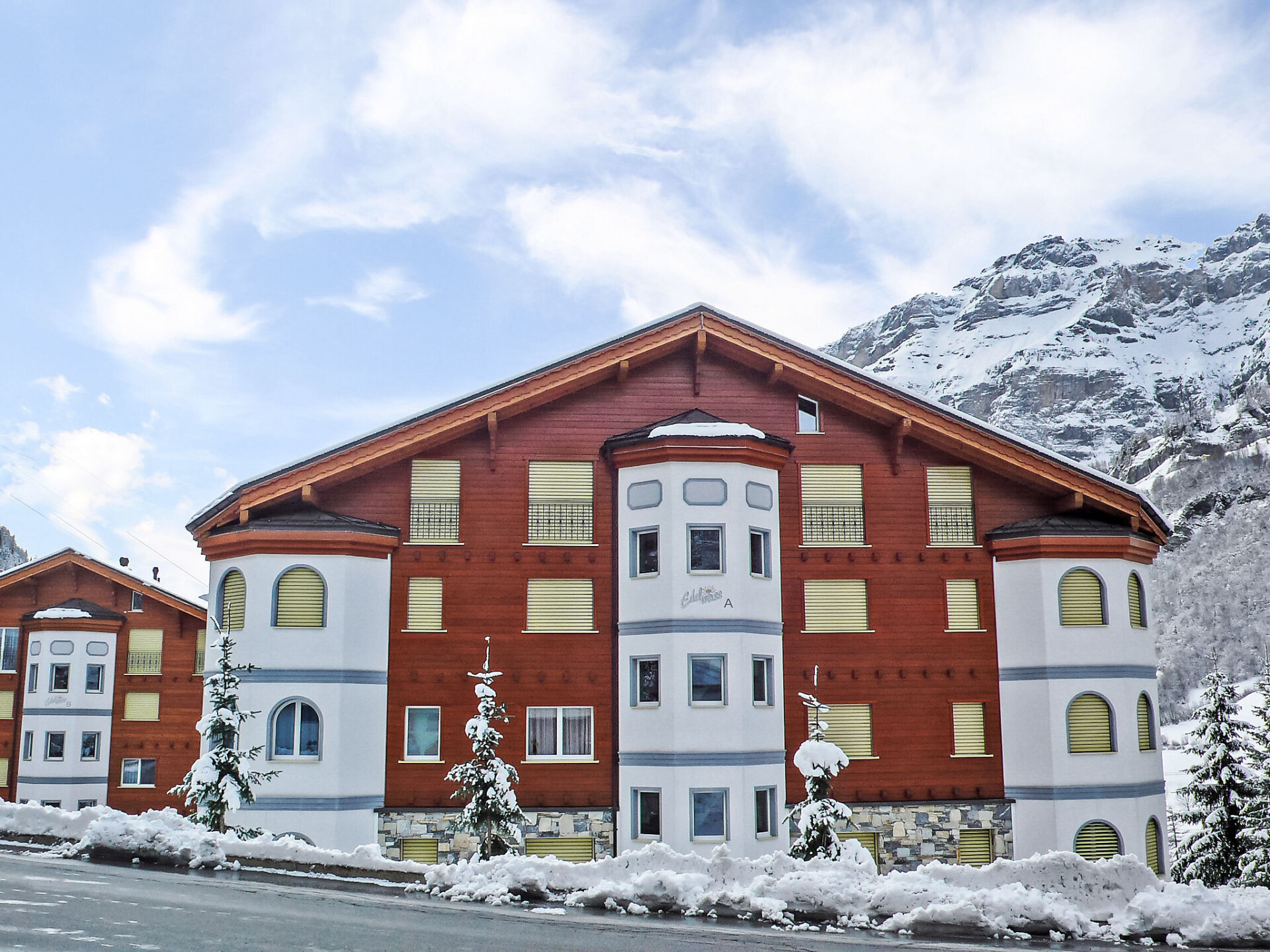 Mooi, comfortabel flatgebouw "Edelweiss A", 1.350 m boven zeeniveau. 450 m van het centrum, rustige, zonnige ligging, 250 m van het skigebied, aan een weg. Voor medegebruik: kinderspeelplaats. In het huis: lift, berging voor ski's, centrale verwarming, wasmachine, droger (voor medegebruik, extra). Broodjesservice. Toegangsweg tot aan het huis (bergweg). Gemeenschappelijke garage bij het huis. Winkel, levensmiddelenwinkel, restaurant 250 m, bushalte "Leukerbad, Bristol" 200 m, thermaalbad 350 m. Tennis, kabelbaan, ski faciliteiten 250 m. De Leukerbad Plus Card is inbegrepen in de boeking. De Leukerbad Plus Card omvat de volgende diensten: gratis gebruik van de lokale bus Ringjet, gratis gebruik van het kinderskigebied Erli, gratis gebruik van de sportarena (badminton, tennis, squash, biljart, tafeltennis, schaatsen, voetbal, zaalvoetbal, minigolf, kei, enz.), 15% korting bij het kopen van een sneeuw- en zwempas. 10% korting op abonnementen en meerdere toegangen tot openbare thermen.