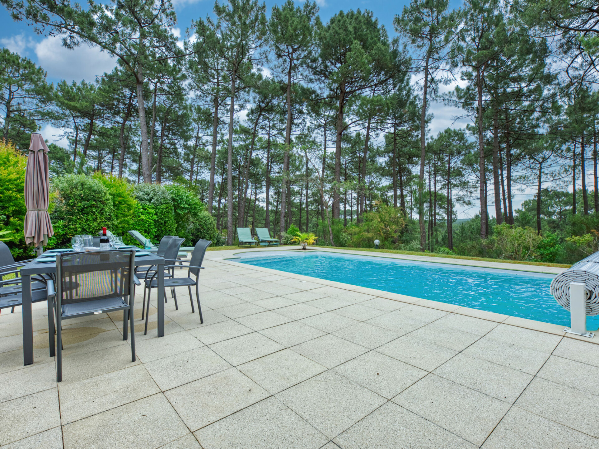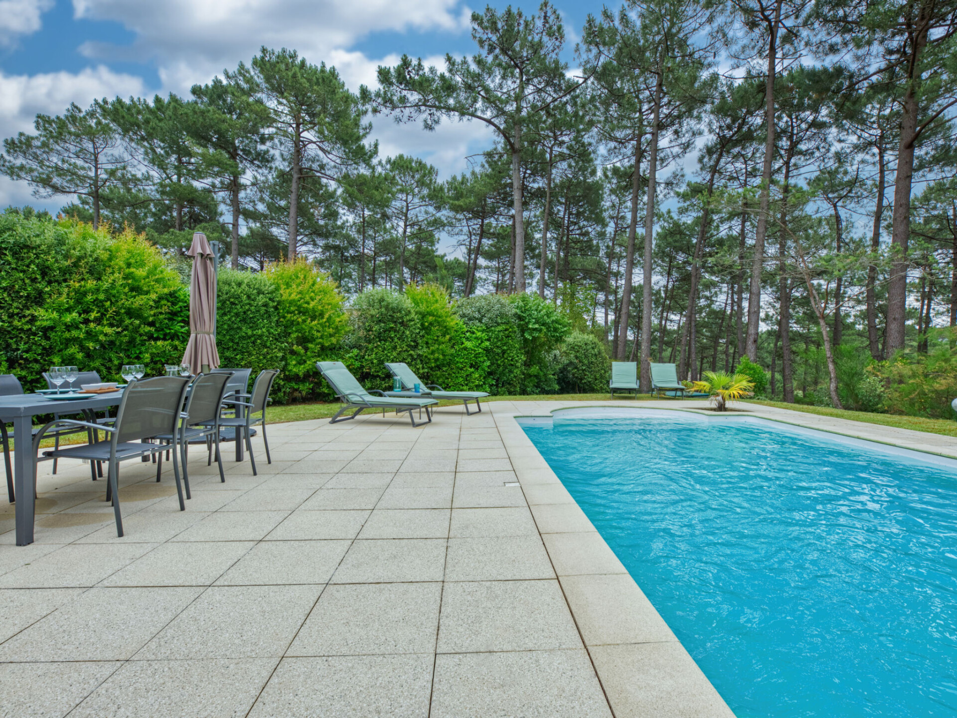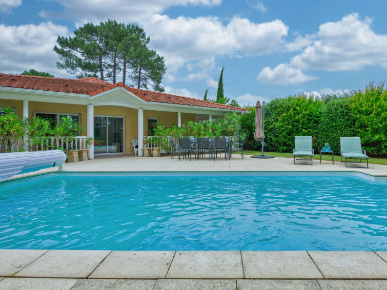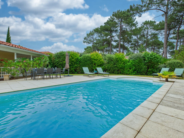 Eengezinswoning "Eden Parc". Buiten de plaats, 2.5 km van het centrum, 3 km van het meer. Voor alleengebruik: tuin 300 m2 (omheind), openluchtzwembad (8 x 4 m, seizoensgebonden beschikbaarheid: 01.Jun. - 30.Sep.) met alarminstallatie. Parkeerplaats op het terrein. Winkel 2.5 km, levensmiddelenwinkel 2.5 km, supermarkt 4 km, restaurant 250 m, bushalte "Le Huga" 3.2 km, zandstrand 2.5 km. Golfterrein (18 holes) 500 m, tennis, tennishal 750 m, manege 15 km. Attracties in de buurt: Parcours Aventure 1 km, Dune du Pilat 60 km, Bordeaux 60 km, Saint-Emilion 60 km. Bekende meren kunnen gemakkelijk worden bereikt: Lac du Moutchic 3 km, Maubuisson 15 km.