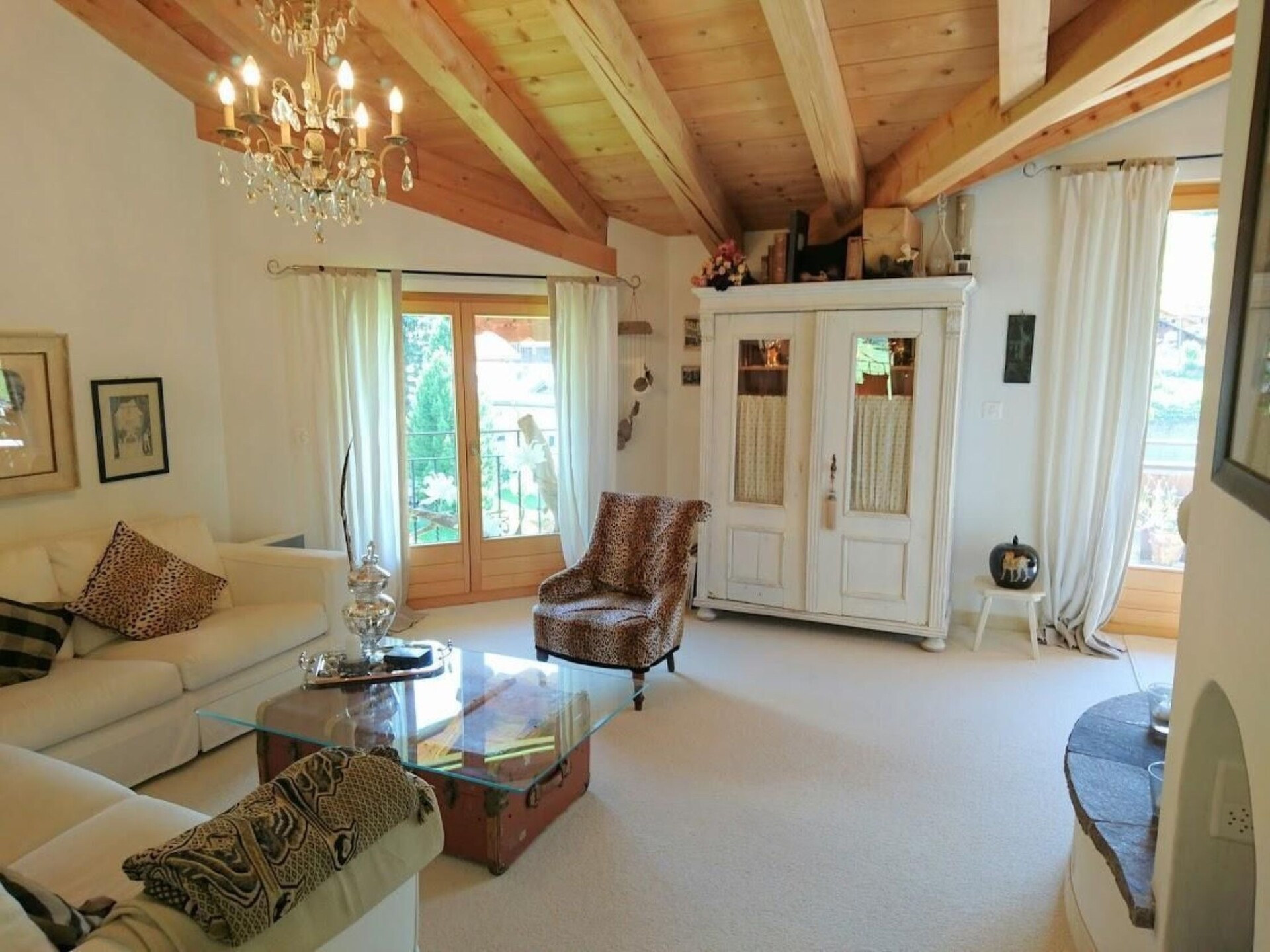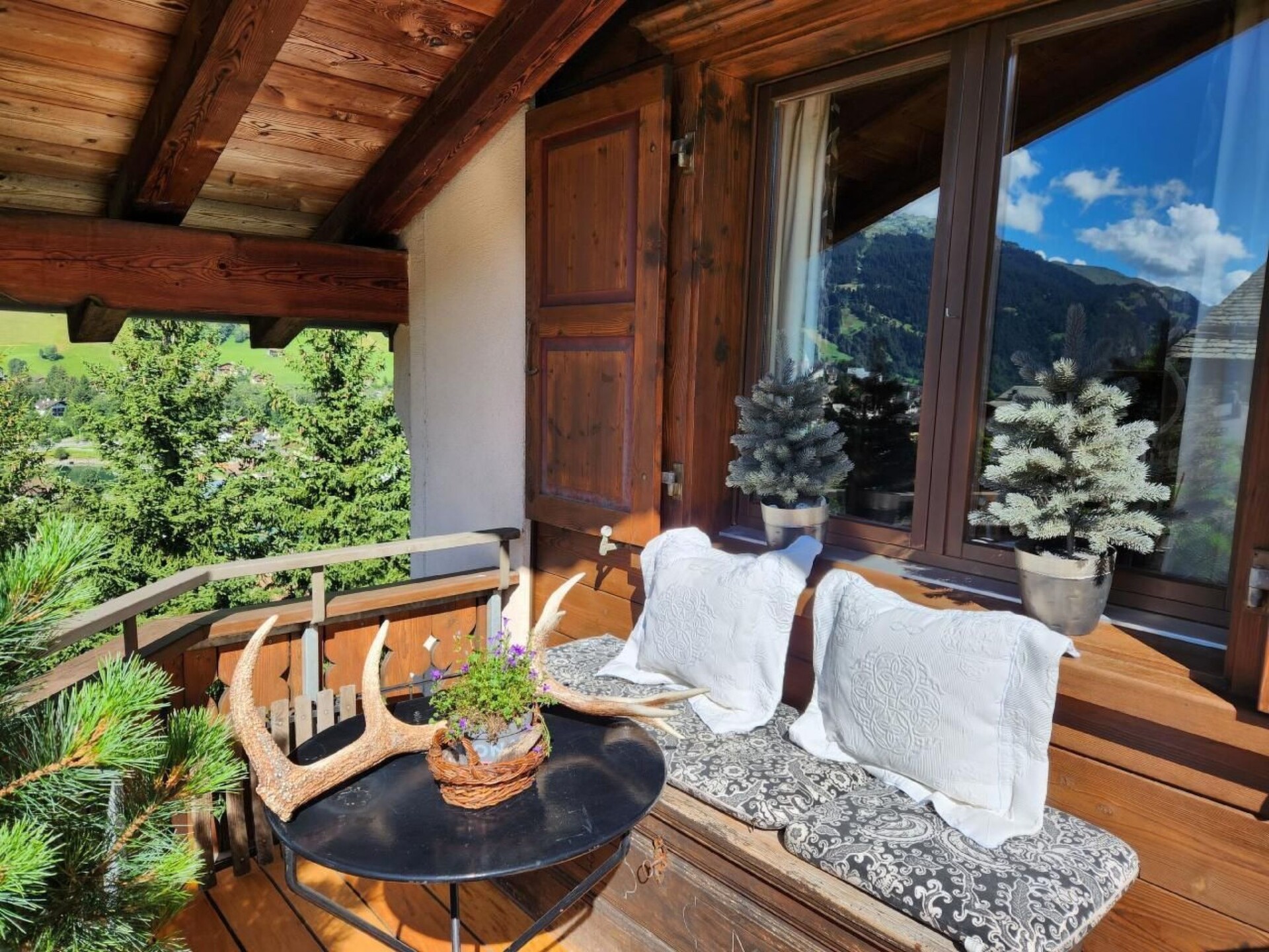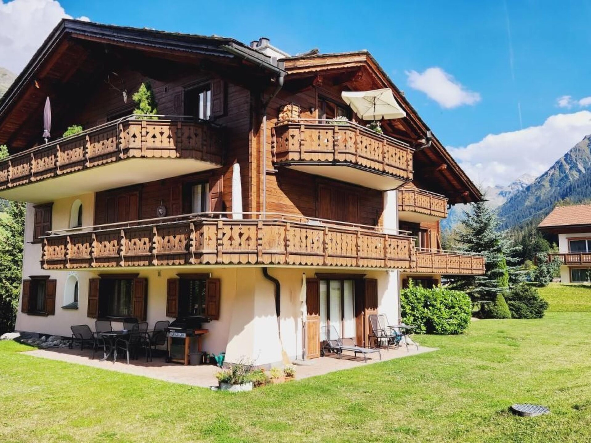 Experience our exclusive retreat amidst the breathtaking scenery of Klosters Platz - a sun-drenched 3 1/2 room penthouse flat with an impressive ceiling height of 5 metres in places, extending over 100 square metres. This jewel is centrally located yet very quiet, promises pure peace and relaxation and offers a fantastic panoramic view over the mountains to the village.Inside you will find high-quality and tasteful furnishings that leave nothing to be desired. Enjoy the warmth of the fireplace and the fully equipped kitchen with microwave and dishwasher. The two exclusive marble bathrooms, one of which has a whirlpool and double washbasin, as well as towel dryers in both bathrooms, underfloor heating in all rooms, radio, Sonos, HD cable TV and WiFi ensure a comfortable stay. Large bedroom wardrobes with interior lighting and a variety of clothes hangers, additional storage space and a spacious cloakroom in the entrance area offer plenty of room for your wardrobe.Outside, two south-facing and west-facing terraces invite you to relax. Here you will find a charcoal barbecue, a sun lounger and an infrared heat lamp above the dining table for cosy evenings under the stars. Guests also have access to a lift, a private sauna with three loungers and a large shower, a ski and ski boot room, a storage room for bicycles, an underground car park and a laundry room with washing machine and tumble dryer.The area surrounding the flat offers a wide range of sports and leisure activities. Whether fishing, mountaineering, ice skating, golfing, hunting, climbing, mountain biking, paragliding, cycling, rafting, horse riding, tobogganing as well as alpine and cross-country skiing in winter - there are activities to suit every taste and requirement. There is also a sports centre and tennis courts nearby.Treat yourself to an unforgettable break in our exclusive penthouse flat, which is an unrivalled experience with its stylish furnishings, unique panoramic views and wealth of outdoor activities in this dream setting. Leave everyday life behind and immerse yourself in the beauty and tranquillity of Klosters Platz - the perfect place to relax, enjoy nature and recharge your batteries.