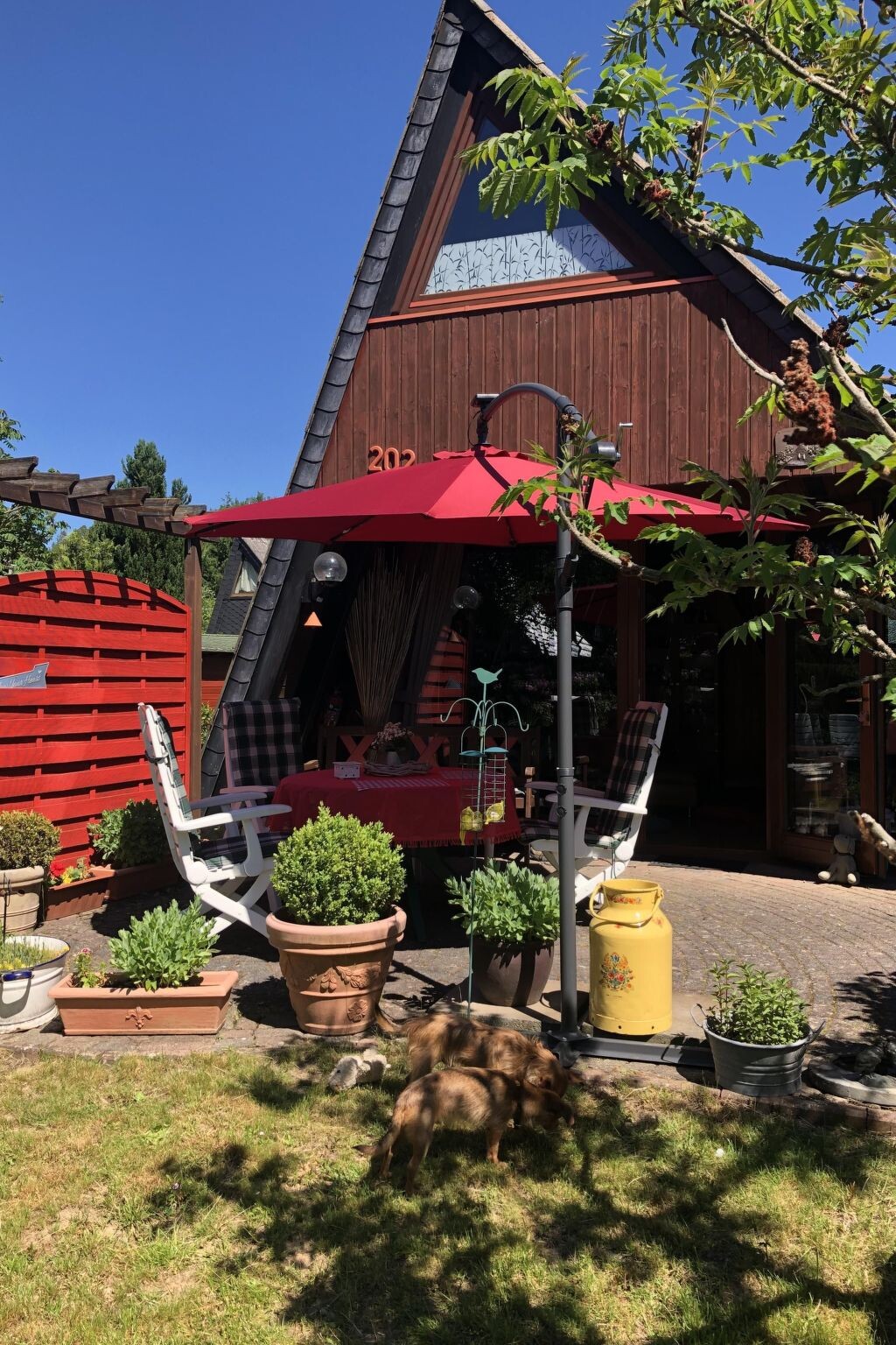 Maximaal 3 huisdieren/honden toegestaan. Immerse yourself in the peaceful and relaxing atmosphere of our charming Eifel cottage, situated right on the edge of the forest. Here, in the imaginative setting of the German Eifel near Blankenheim, the Freilingen holiday village promises an unforgettable nature experience. The absolute tranquillity of the forest and the proximity to appealing recreational and leisure activities make this place an ideal retreat for couples, families and friends longing for a break from the hustle and bustle of everyday life.The house offers a fully equipped kitchen, a bathroom with shower, a living room with dining area, a children's chair, WLAN radio, Smart TV with Internet and SAT as well as a terrace with awning. In the storage room there is a drawer with many brochures and a hiking map of the area.Kitchen equipment : As far as I can see, everything is available in the kitchen. There are several services, cutlery, glasses and cups available. Some spices, coffee and tea are available for the time being.Below the holiday village is the Freilinger See, which can be reached on foot in about 20 minutes. There are large lawns for sunbathing and a restaurant.The following options are available for sporting activities in the holiday village: Tennis courts, table tennis tables, swimming pool (outdoor pool), boules court and a mini-golf course. For the children there is a playground with various play equipment (sandpit, climbing tower, etc.). The sunbathing lawn by the swimming pool offers space for a wide variety of activities.Boules, tennis rackets and mini golf clubs are available in the house.Location: Germany, Blankenheim, Freilingen holiday villageLocation description : The cottage is part of the holiday village FreilingenThe holiday village Freilingen is located approx. 530 m above Freilingen near Blankenheim.Arrival and distance to the nearest airport: Cologne-Bonn 80 km; Distance to the nearest station: Blankenheim 15 km; Distance to the nearest motorway exit: Blankenheim 10 km; Distance to the nearest shop: Blankenheim 9 kmThe two bedrooms on the upper floor are each equipped with two beds (double bed and pull-out bed) and matching wardrobes. For children you can bring a travel cot (not available).Bedroom furnishings: double bed 2x90x190; 2 single beds á 90x200 (bed linen: 80x80 pillows; duvet standard size 135x200) and corresponding wardrobesThe garden is completely fenced with a 1 metre high fence.Garden equipment: garden furniture and barbecue availableA lockable carport is available for parking your car or bicycles. There is plenty of garden furniture in the carport. Two sunbeds are also available.There are two washing machines and tumble dryers available for the general public, which are not located directly in the holiday home. The tokens for these can be obtained from the manager.Other : Non-smoking houseArrival is from 16.00 and departure until 10.00 at the latest.The rental price includes a basic electricity supply of 6 kWh per night. Additional consumption will be charged at the current electricity price.Heating: advance payment on electricity consumption (mandatory, to be paid in advance)An overnight tax of 3% is levied on the total accommodation price and paid to the municipality of Blankenheim.Hire facilities in the surrounding area: boat hire, bicycle hireSports facilities in the area: fishing, basketball, football pitch, hunting, climbing, mountain biking, cycling tours, indoor riding centre, riding arena / riding facilities, skiing (cross-country skiing), tennisExcursions in the surrounding area: Nohn waterfall, Nürburgring, Kommern open-air museum, Ahrsteig, Eifelsteig, nature high ropes course, Hellenthal bird of prey station, "Grube Wohlfahrt", Hellenthal-Rescheid / Eifel, Ahütte museum railway stationMake your next holiday unforgettable with a stay in our Eifel cottage, where nature, comfort and adventure await you. Enjoy the tranquillity of the forest, the wide range of leisure activities on offer in the holiday village and the countless excursion possibilities in the beautiful surroundings of Blankenheim. A perfect place to relax and experience awaits you here - ideal for anyone who wants to escape from everyday life and find true relaxation in nature.