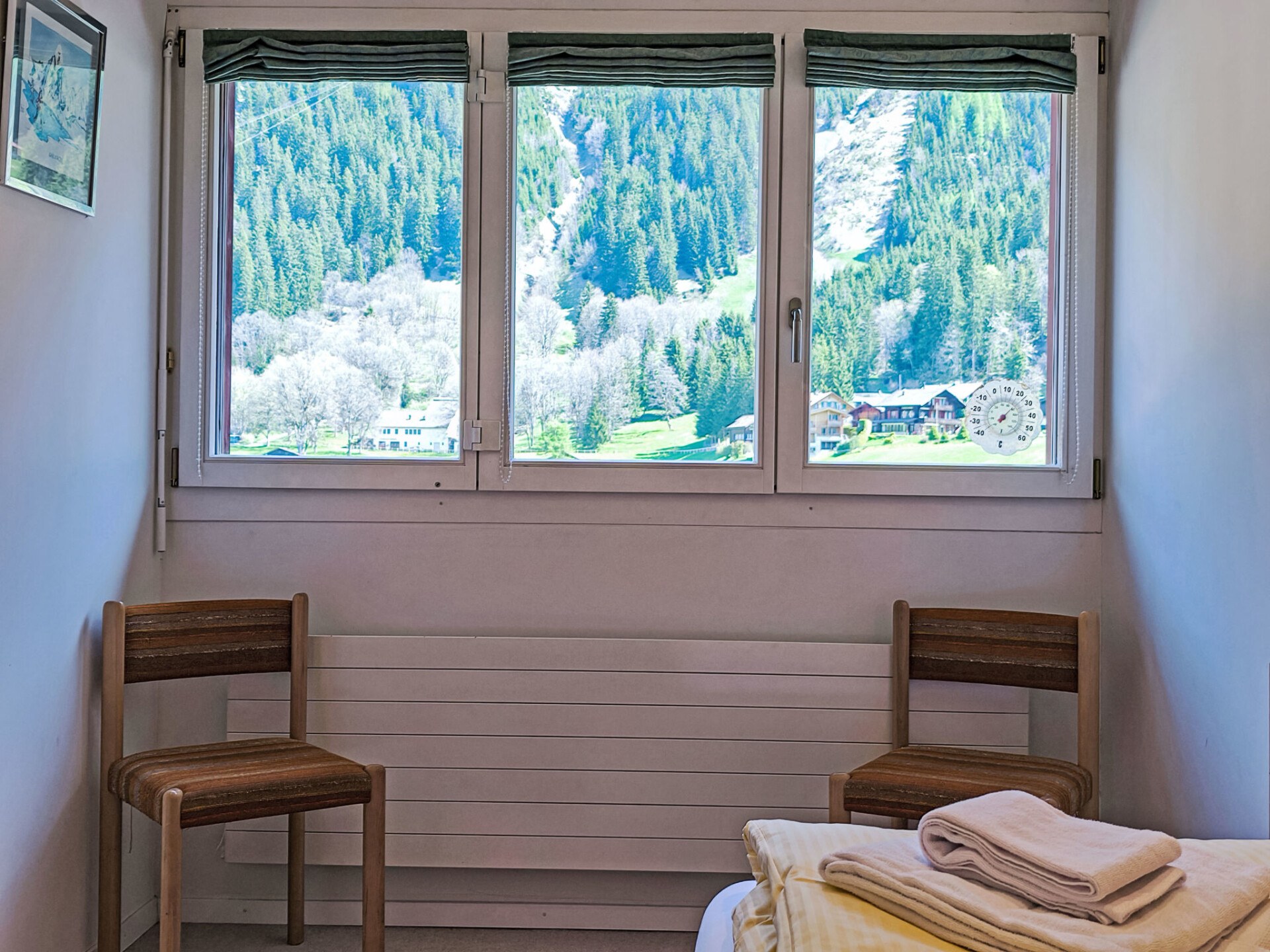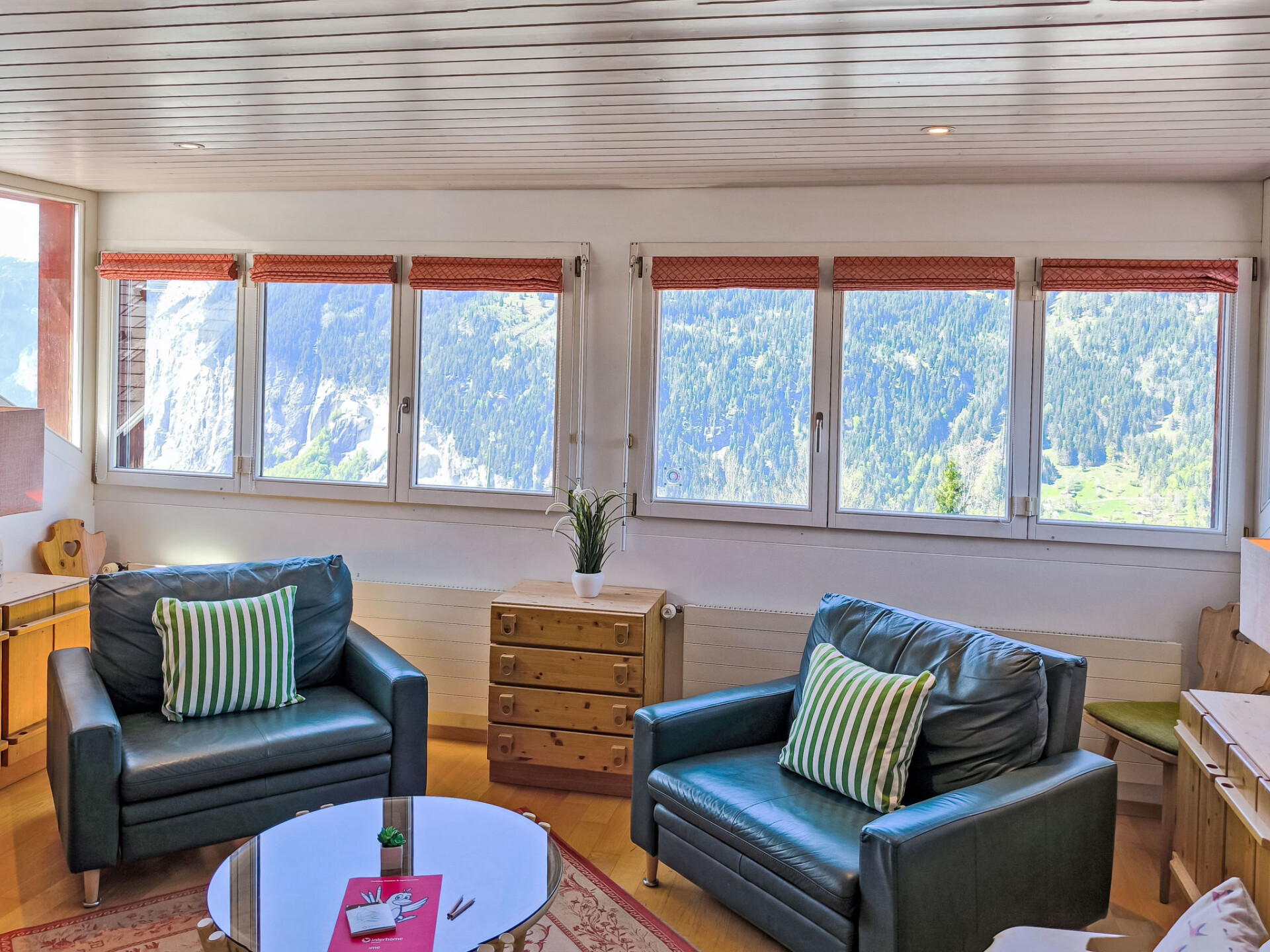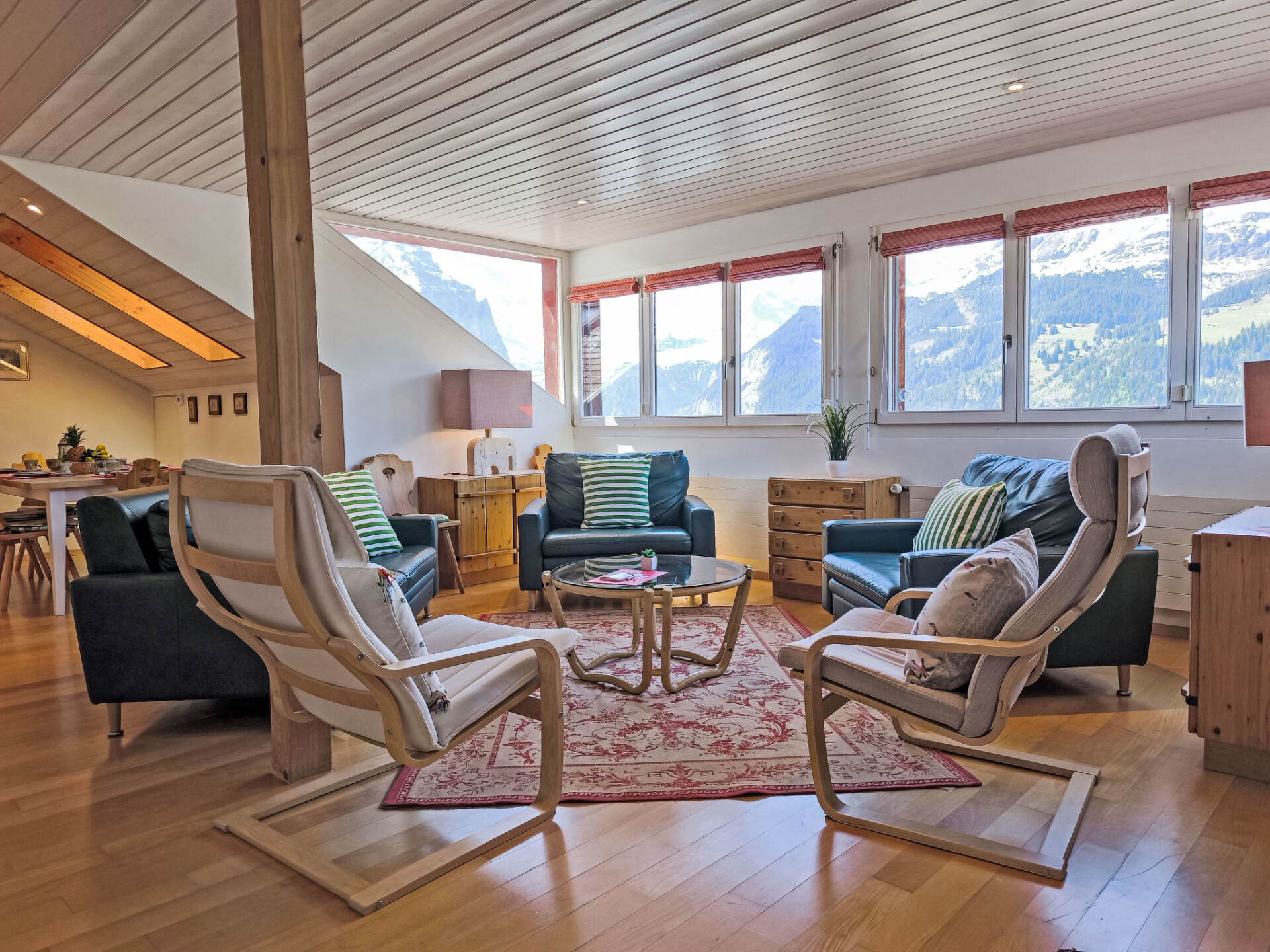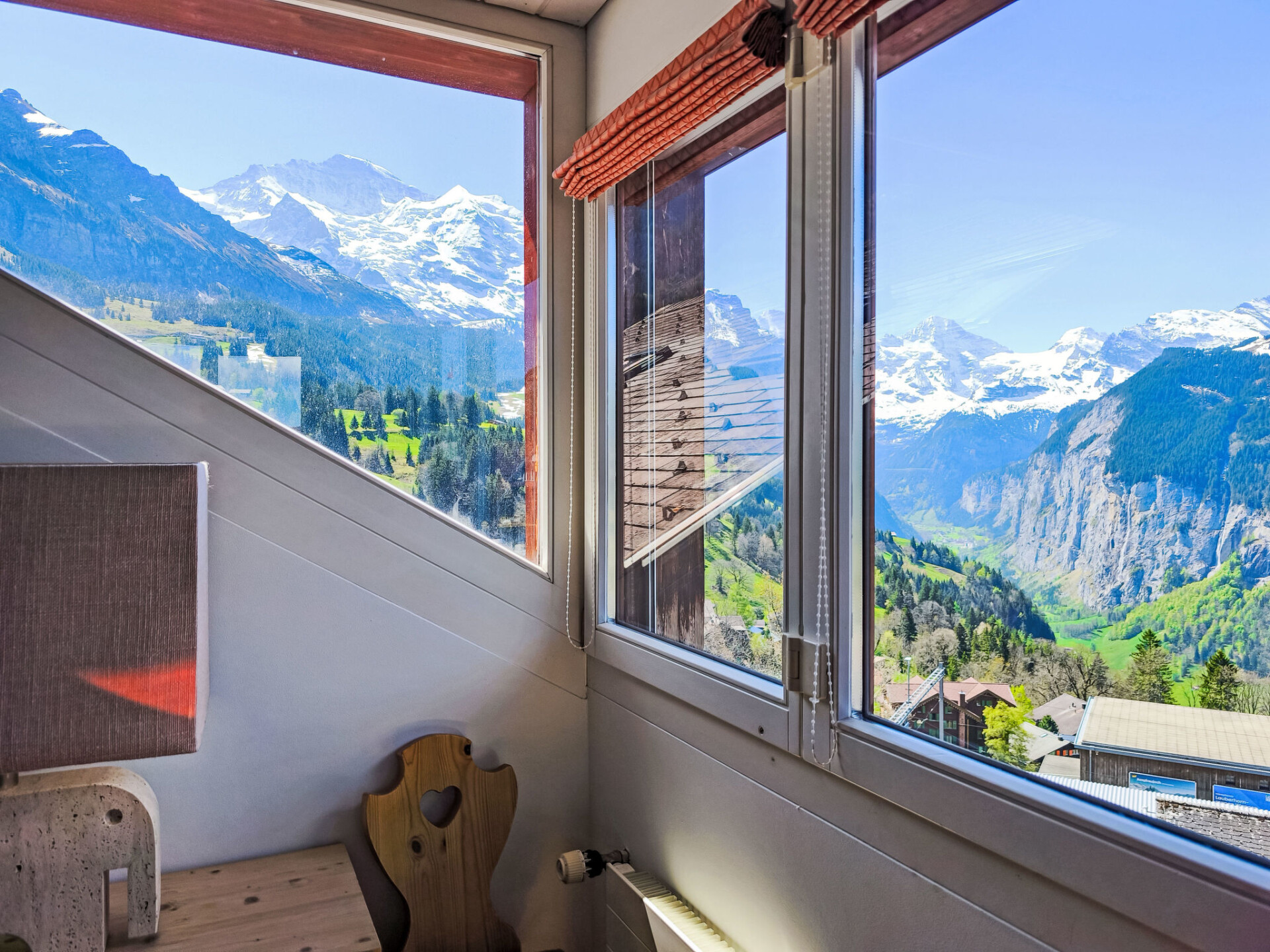 "Eiger Residence Top Floor Apt P", appartement 3-kamers 95 m2, op de bovenste verdieping. Ruim en licht, gedeeltelijk afgeschuinde daken, comfortabel en modern ingericht: open woon-/eetkamer met panoramavenster met Kabel-TV. 1 kamer met 3 bedden (90 cm, lengte 200 cm). 1 kamer met 2 bedden (90 cm, lengte 200 cm). Groot, open keuken (oven, afwasmachine, 4 keramische glas kookplaten, waterkoker, magnetron, diepvriezer, elektrische koffiemachine, pads voor de koffiemachine (Nespresso) extra, raclette oven, fondue Set (chinese)). Bad/WC, douche/WC. Mooi panoramazicht op de bergen, het dal en Jungfrau. Ter beschikking: wasmachine, droger, strijkijzer, haardroger. Internet(WiFi), gratis). Geschikt voor families. Niet rokers woning.