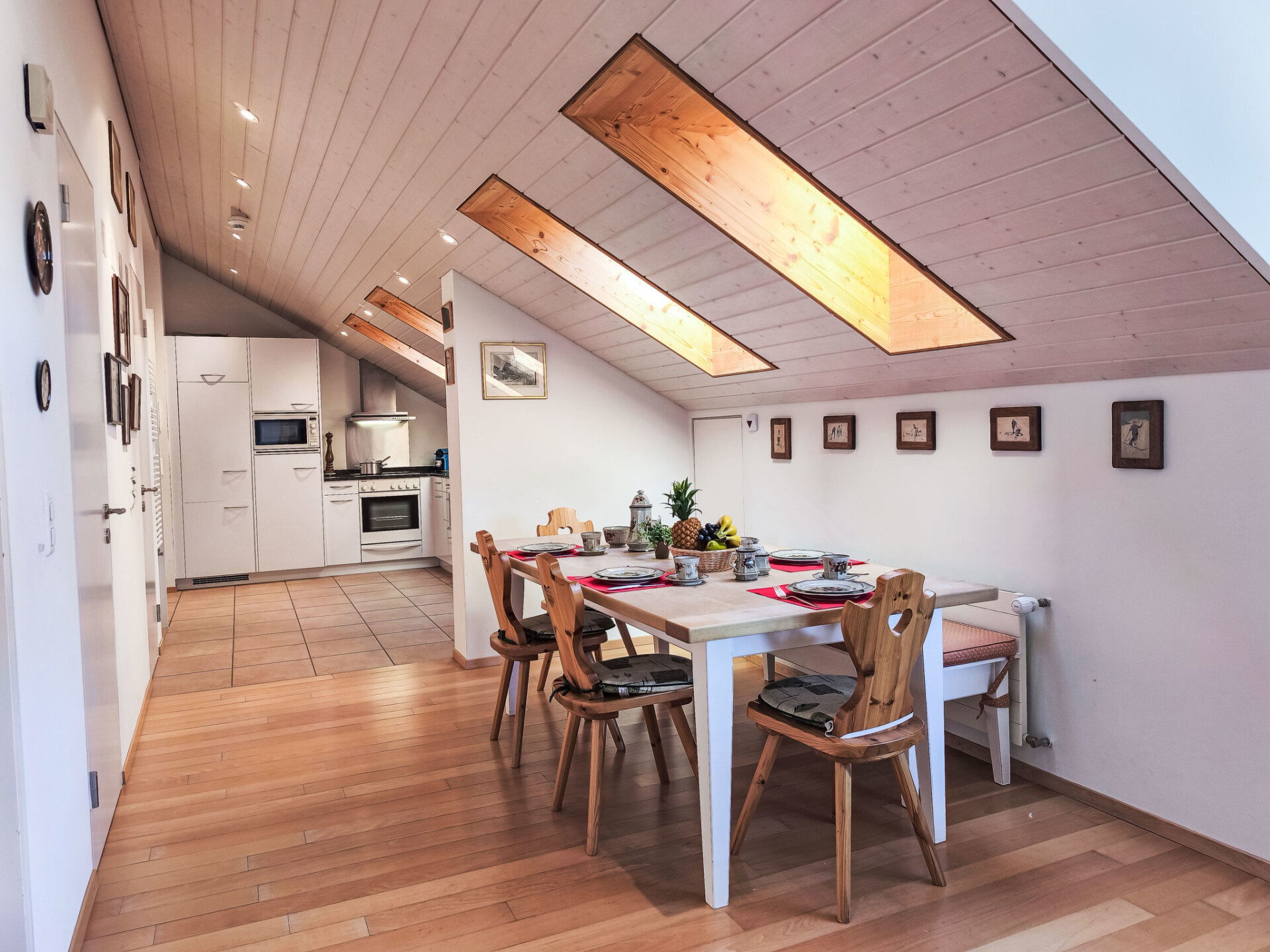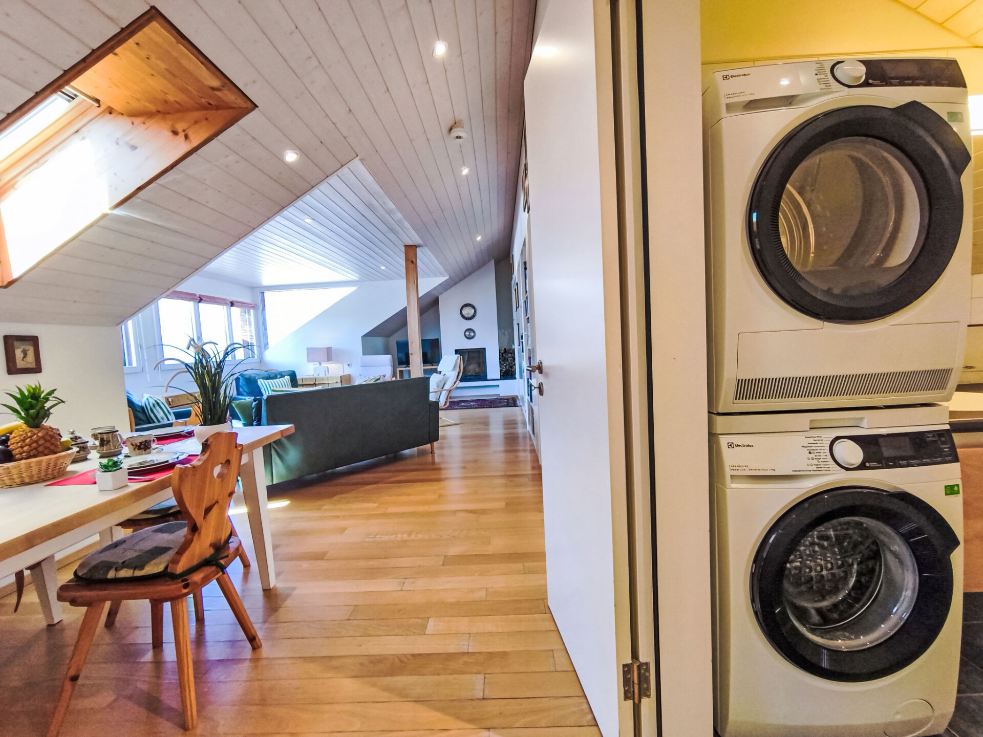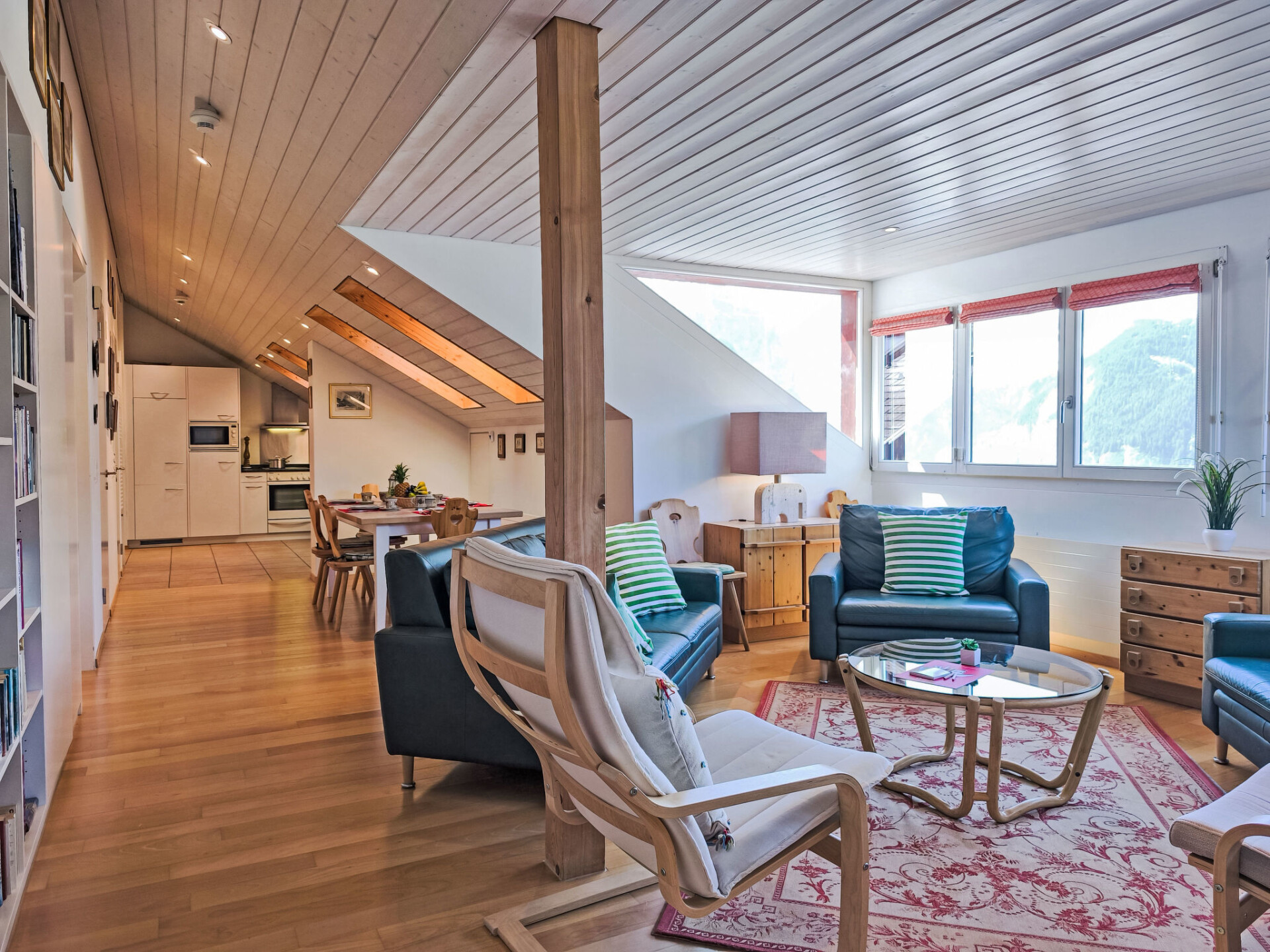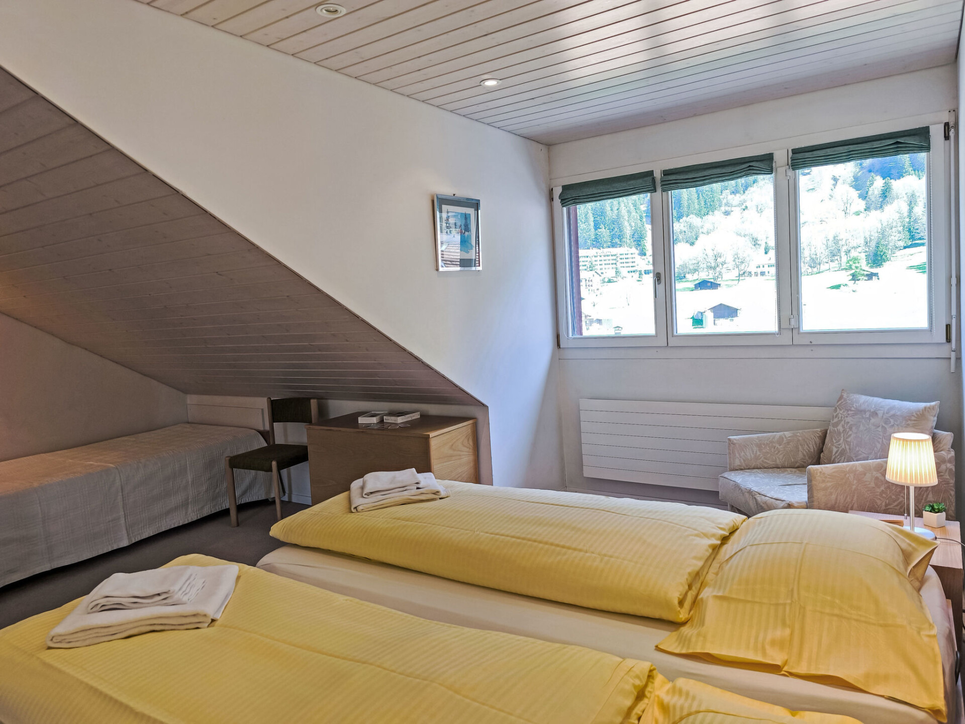 "Eiger Residence Top Floor Apt P", appartement 3-kamers 95 m2, op de bovenste verdieping. Ruim en licht, gedeeltelijk afgeschuinde daken, comfortabel en modern ingericht: open woon-/eetkamer met panoramavenster met Kabel-TV. 1 kamer met 3 bedden (90 cm, lengte 200 cm). 1 kamer met 2 bedden (90 cm, lengte 200 cm). Groot, open keuken (oven, afwasmachine, 4 keramische glas kookplaten, waterkoker, magnetron, diepvriezer, elektrische koffiemachine, pads voor de koffiemachine (Nespresso) extra, raclette oven, fondue Set (chinese)). Bad/WC, douche/WC. Mooi panoramazicht op de bergen, het dal en Jungfrau. Ter beschikking: wasmachine, droger, strijkijzer, haardroger. Internet(WiFi), gratis). Geschikt voor families. Niet rokers woning.