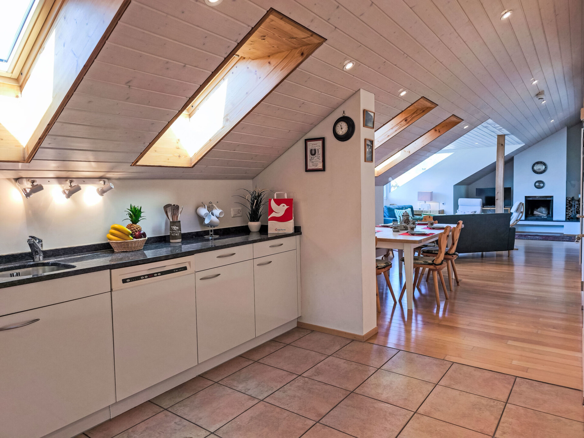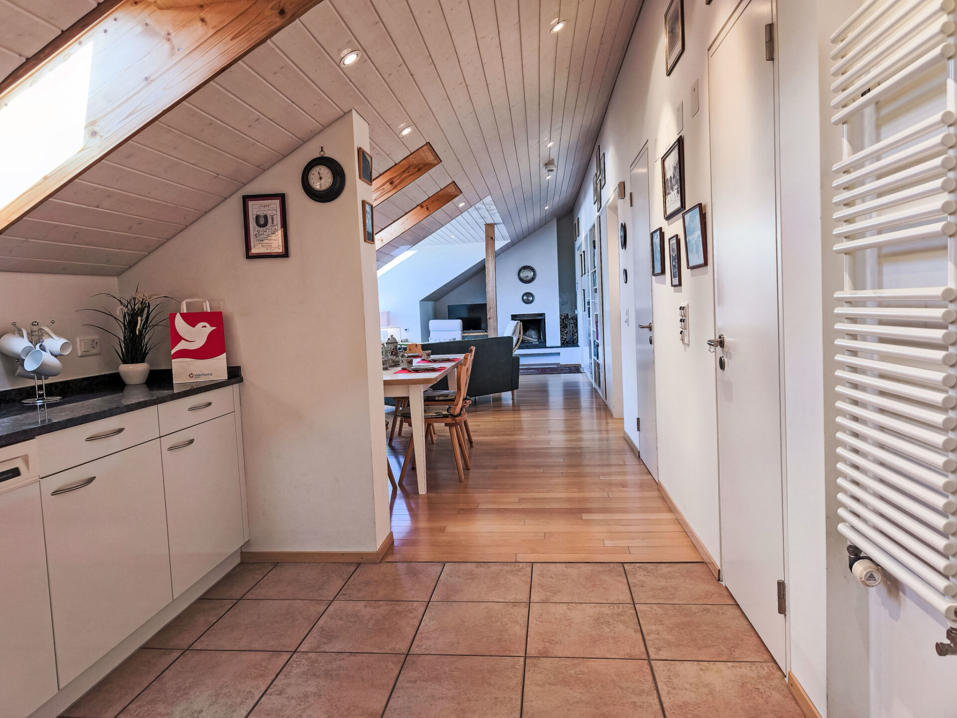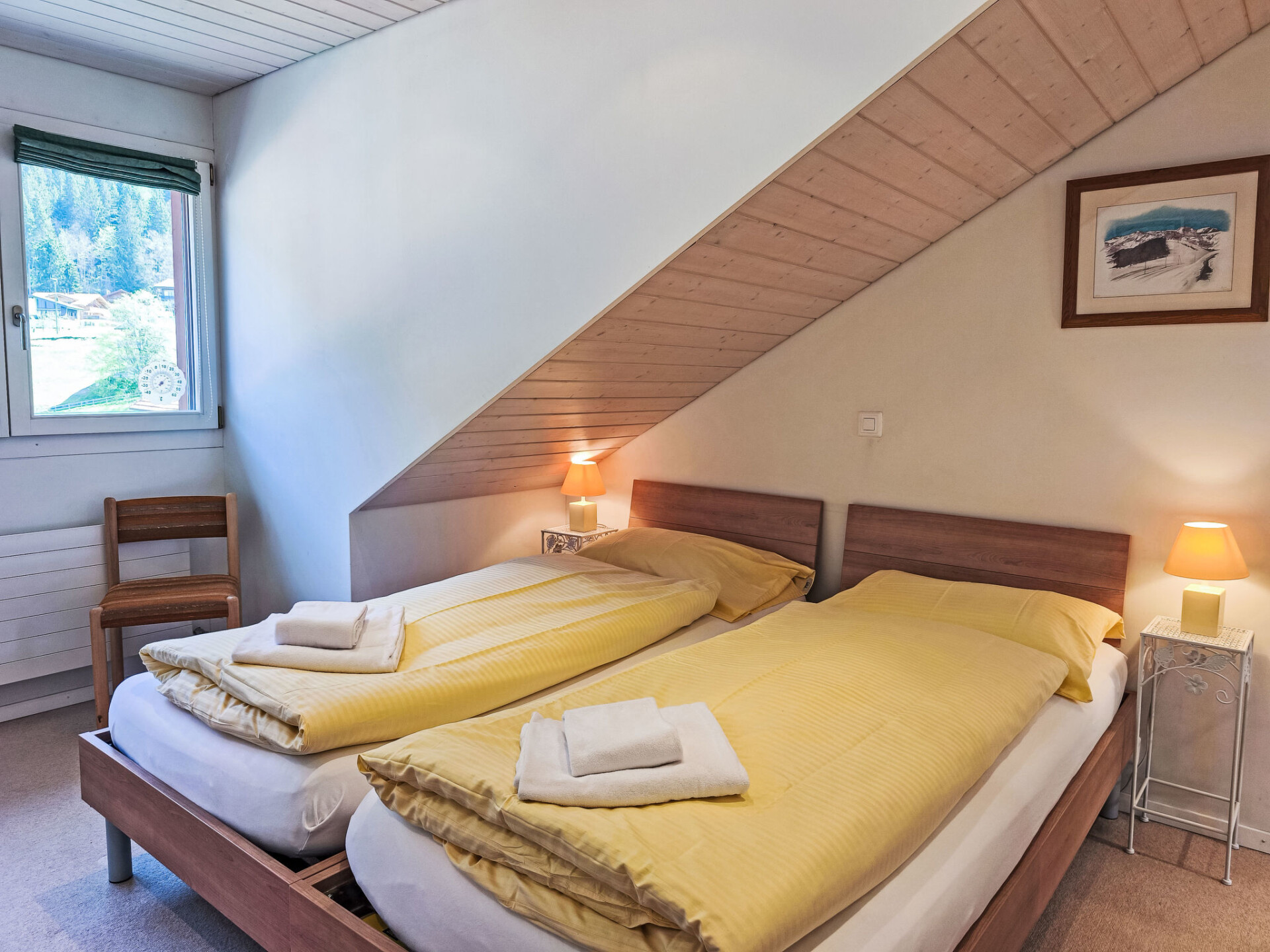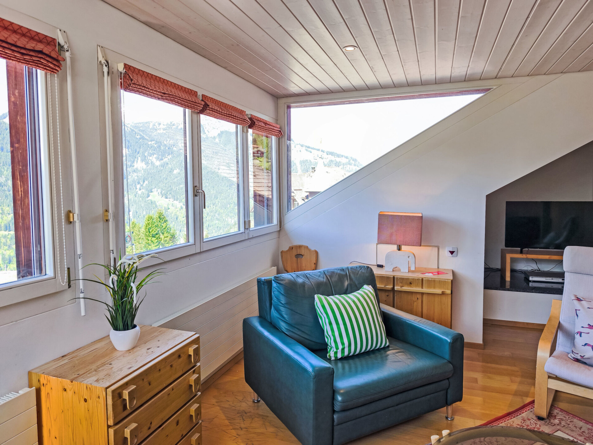 "Eiger Residence Top Floor Apt P", appartement 3-kamers 95 m2, op de bovenste verdieping. Ruim en licht, gedeeltelijk afgeschuinde daken, comfortabel en modern ingericht: open woon-/eetkamer met panoramavenster met Kabel-TV. 1 kamer met 3 bedden (90 cm, lengte 200 cm). 1 kamer met 2 bedden (90 cm, lengte 200 cm). Groot, open keuken (oven, afwasmachine, 4 keramische glas kookplaten, waterkoker, magnetron, diepvriezer, elektrische koffiemachine, pads voor de koffiemachine (Nespresso) extra, raclette oven, fondue Set (chinese)). Bad/WC, douche/WC. Mooi panoramazicht op de bergen, het dal en Jungfrau. Ter beschikking: wasmachine, droger, strijkijzer, haardroger. Internet(WiFi), gratis). Geschikt voor families. Niet rokers woning.