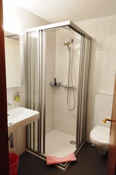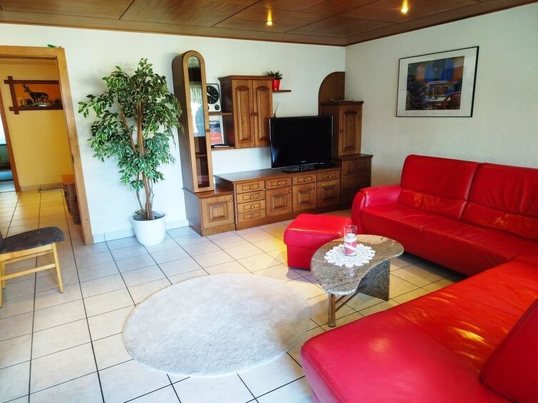 The 5.5 room apartment features 4 bedrooms, 1 living room, 1 kitchen, and 2 bathrooms. All rooms can be accessed from a spacious hallway. The apartment has two bathrooms (1st with shower and toilet, 2nd with bathtub, toilet). Each bedroom offers ample storage space for your clothing and also has a sink and a mirror; some rooms have a desk & chest of drawers. Two bedrooms are equipped with double beds (180 x 200 cm and 160 x 200 cm). Two other bedrooms offer single beds (1-bed and 2-bed rooms separately). Upon request, a baby cot can be set up for a fee (or we are happy to provide additional children's items). Beautiful views are offered by two balconies on the south and east sides. The kitchen is fully equipped (fridge with freezer, dishwasher, filter coffee machine, and fondue set, etc.). Of course, there is a large table with six chairs for you. In the living room, there is a larger corner sofa with a table and a living room wall with a flat-screen TV.