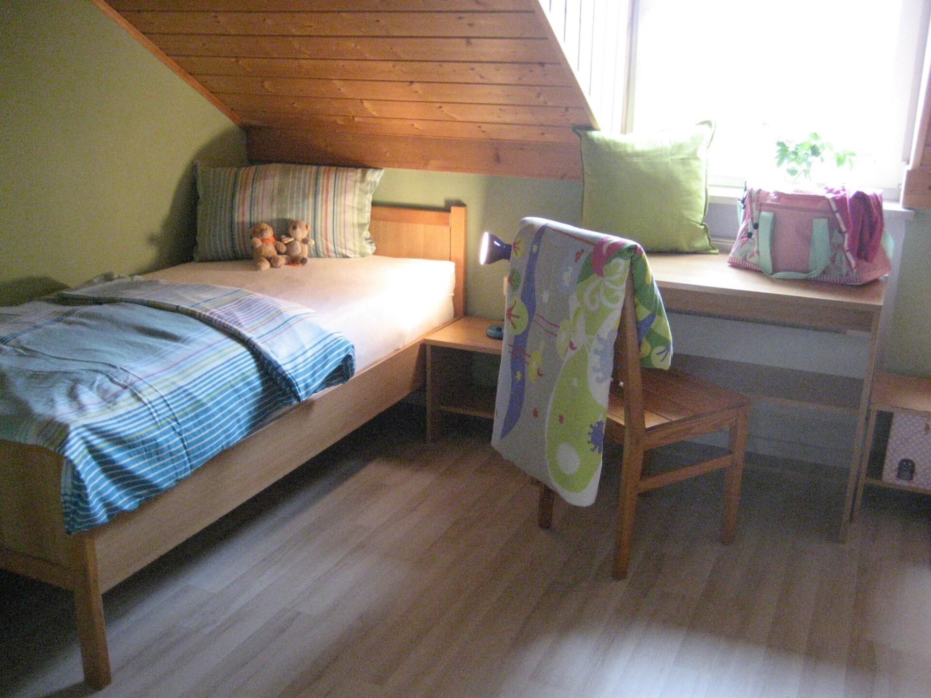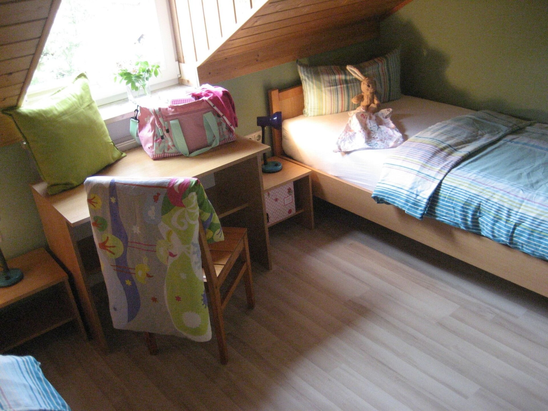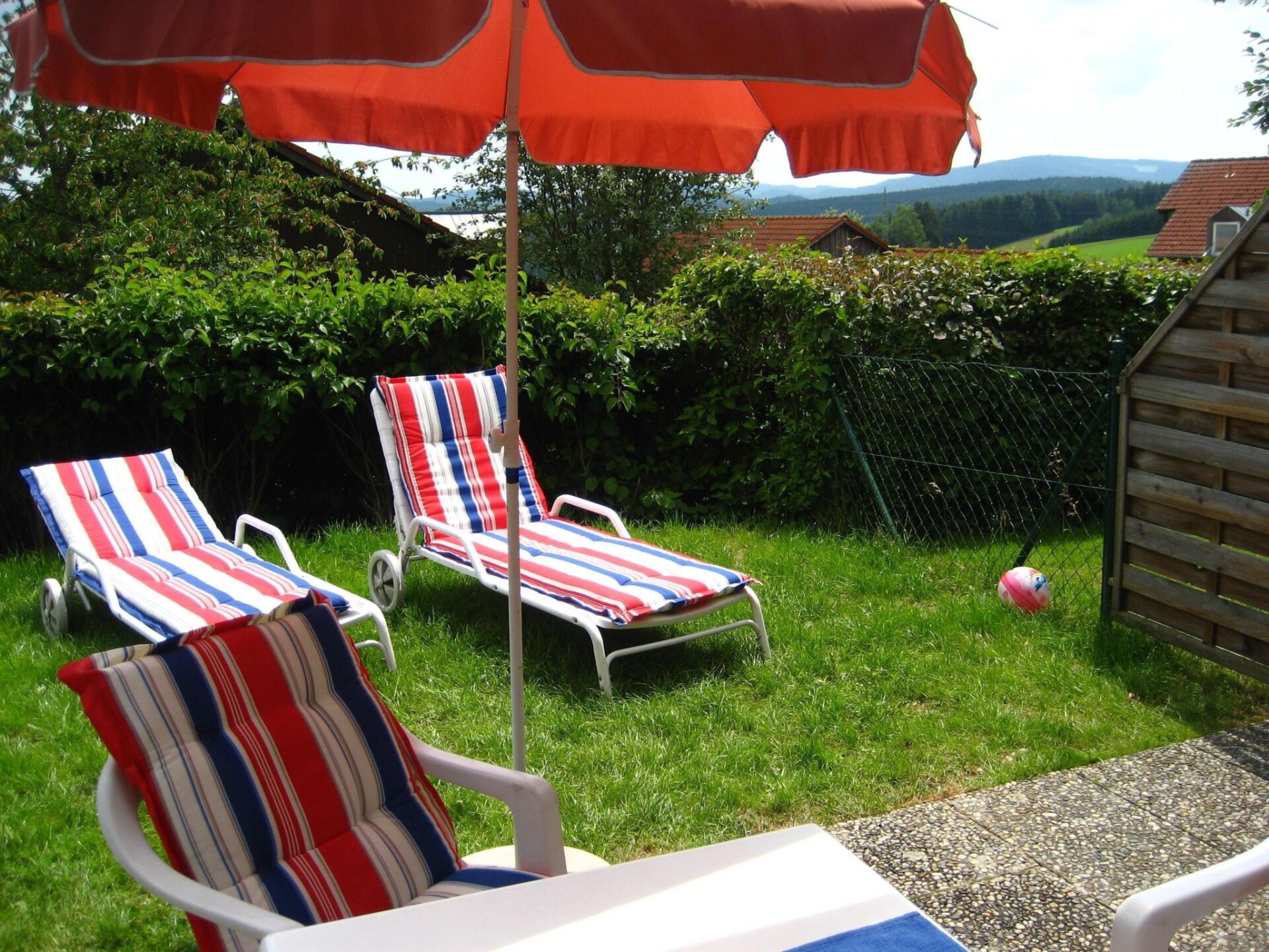 Maximaal 2 huisdieren/honden toegestaan. You'll feel right at home in this holiday home. The house was completely renovated in June 2018 and welcomes you with a modern and friendly design that will make you feel at home straight away. Here you can spend your holiday in an individual and informal ambience without sacrificing comfort. It is suitable for a family holiday as well as a sports or relaxation holiday with a variety of activities. This holiday home is in a quiet location in a holiday village on the outskirts of Zandt. This puts you in the immediate vicinity of hiking and cycling trails, children's playgrounds and a football pitch.In front of the living and dining area is the garden with terrace. There you can enjoy the sun and a wonderful view of the surrounding hills of the Bavarian Forest from breakfast until the early evening. There is a car park for one car directly in front of the house.The holiday home has a living and dining area with an open-plan kitchen, a shower room and hallway with a built-in infrared sauna on the ground floor. Upstairs there are two bedrooms, each with en-suite bathroom and WC. The cosily furnished living room offers a seating area, as well as a modern dining area with six seats, a sideboard with a satellite TV hanging on the wall above and free, in-house WLAN access. The comfortable sofa bed, 160 x 200 cm, in the living room offers space for two more people, limited, so that the house can be used by up to six guests. After a ride on the house's own sledge in winter, you can spend a particularly cosy winter evening in front of the Swedish stove, watching and listening to the crackling fire from the sofa. The wood for the Swedish stove, including kindling, can be conveniently obtained free of charge from the property management. The modern and fully equipped kitchen offers a hob, oven, microwave, dishwasher, kettle, toaster and many cooking utensils, so that you can cater for yourself. The bathroom is equipped with a shower, a washbasin with mirror and shelf, a WC and a window. On cooler days, underfloor heating provides cosy warmth throughout the ground floor. Your children can use the floor in the living area as a play area, while the sweat-inducing warmth of an infrared sauna in the hallway ensures your own relaxation. On the way between the infrared sauna and the bathroom, with underfloor heating in the hallway and the shower, you are guaranteed to keep your feet warm thanks to the pleasantly tempered floor. One bedroom on the upper floor has a double bed, each 80 x 200 cm, the other has two separate beds, each 90 x 190 cm. All beds are fitted with modern box-spring mattresses. There is also an adjoining washroom and WC for the bedrooms.The municipality of Zandt is located in the Upper Bavarian Forest Nature Park. The low mountain range landscape is ideal for hiking and cycling. You also have the opportunity to go skiing, swimming, canoeing, climbing etc. In the village you will find catering and everything you need for self-catering. Further shopping facilities and restaurants can be found in the town of Cham, approx. 10 km away, or in Bad Kötzting, approx. 8 km away. The latter offers, for example, a thermal bath and a new state-run casino. Zandt is an ideal starting point for sporting activities and for visiting nature parks, leisure parks, spas, museums, festivals etc. This holiday home is ideal for four people, or to a lesser extent for six people. It is suitable for a family holiday, a relaxing holiday or a sports holiday, e.g. hiking, mountain biking, road biking, skiing, swimming, canoeing, climbing.A high chair and a cot are available for your baby/toddler, so you can save yourself a lot of bulky luggage on arrival and departure. You are also welcome to book a linen package (bed linen and towels) from the landlord for a small fee. This will make packing your suitcase easier and you will have less laundry after your holiday. Arrival is usually possible from 16:00, departure until 9:30, or by arrangement. The rental price includes the costs for electricity, heating and water.