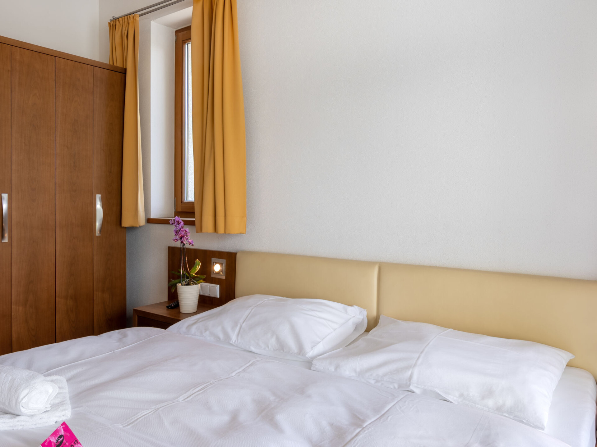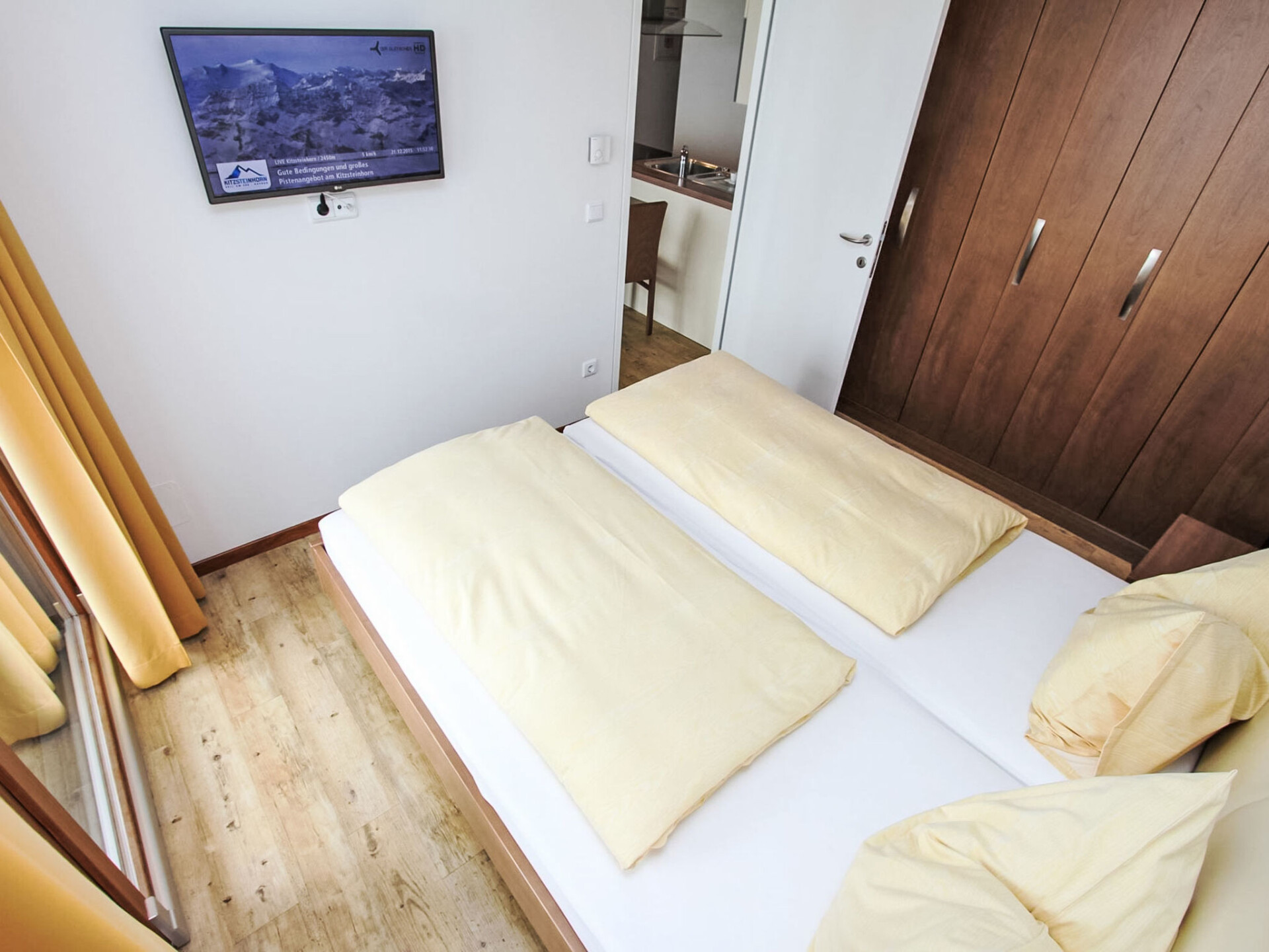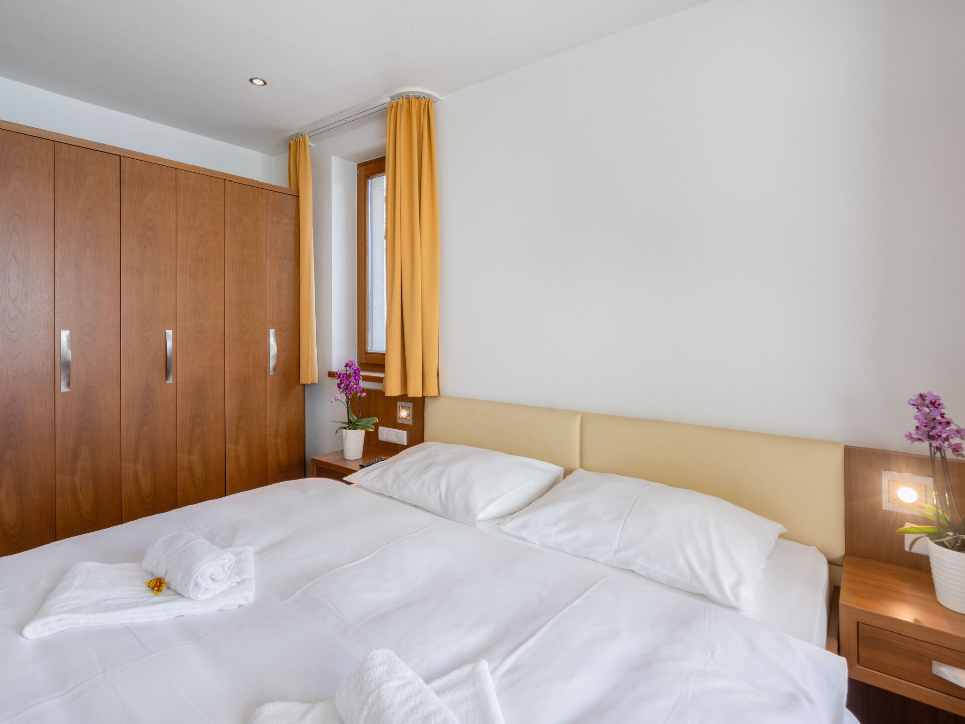 Appartement 2-kamers 40 m2. Licht, smaakvol en gezellig ingericht: 1 2-pers. kamer met Sat-TV (Flatscreen TV). Woon-/slaapkamer met 1 2-pers divanbed, eettafel, Sat-TV en Flatscreen TV. Berging. Open keuken (oven, afwasmachine, 4 keramische glas kookplaten, broodrooster, waterkoker, magnetron, elektrische koffiemachine, pads voor de koffiemachine (Nespresso) extra). Bad/bidet/WC. Vloerverwarming. Groot balkon. Balkonmeubilair. Zeer mooi panoramazicht op de bergen. Ter beschikking: haardroger. Internet (WiFi, gratis). Niet rokers woning. Maximaal 1 huisdier/hond toegestaan. Rookmelders. De beschrijving betreft een voorbeeld van dit type woning in dit complex. 50616-001123-2020