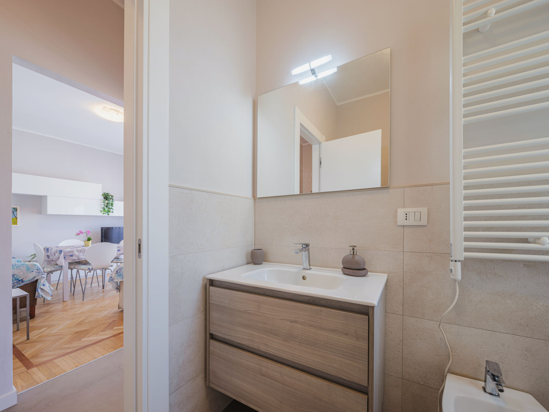 "Enrico", appartement 3-kamers 65 m2 op de 6e verdieping. Volledig gerenoveerd in 2023, doelmatig en modern ingericht: hal. Woon-/eetkamer met 1 2-pers divanbed, TV en air-conditioning. Uitgang naar het balkon. 1 2-pers. kamer met TV. 1 kleine kamer met 1 bed. Kookhoek (afwasmachine, 4 inductiekookplaten, magnetron). Douche/bidet/WC. Gas-verwarming. Verwarming alleen beschikbaar van 01.11. tot 31.03. Balkon 5 m2. Balkonmeubilair. Ter beschikking: wasmachine, haardroger. Internet (Internet (WiFi), gratis). Garage op 100 m, breedte 190 cm. Brandblusser. IT010015C2CZB4DARD