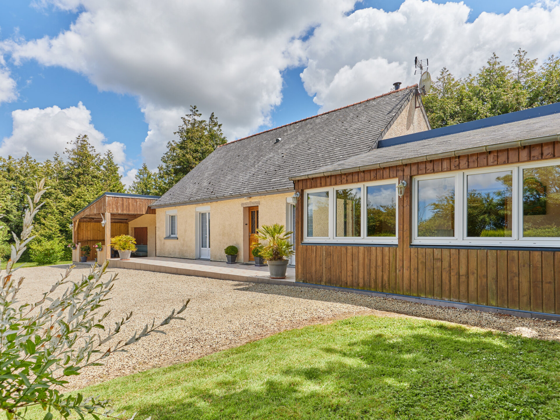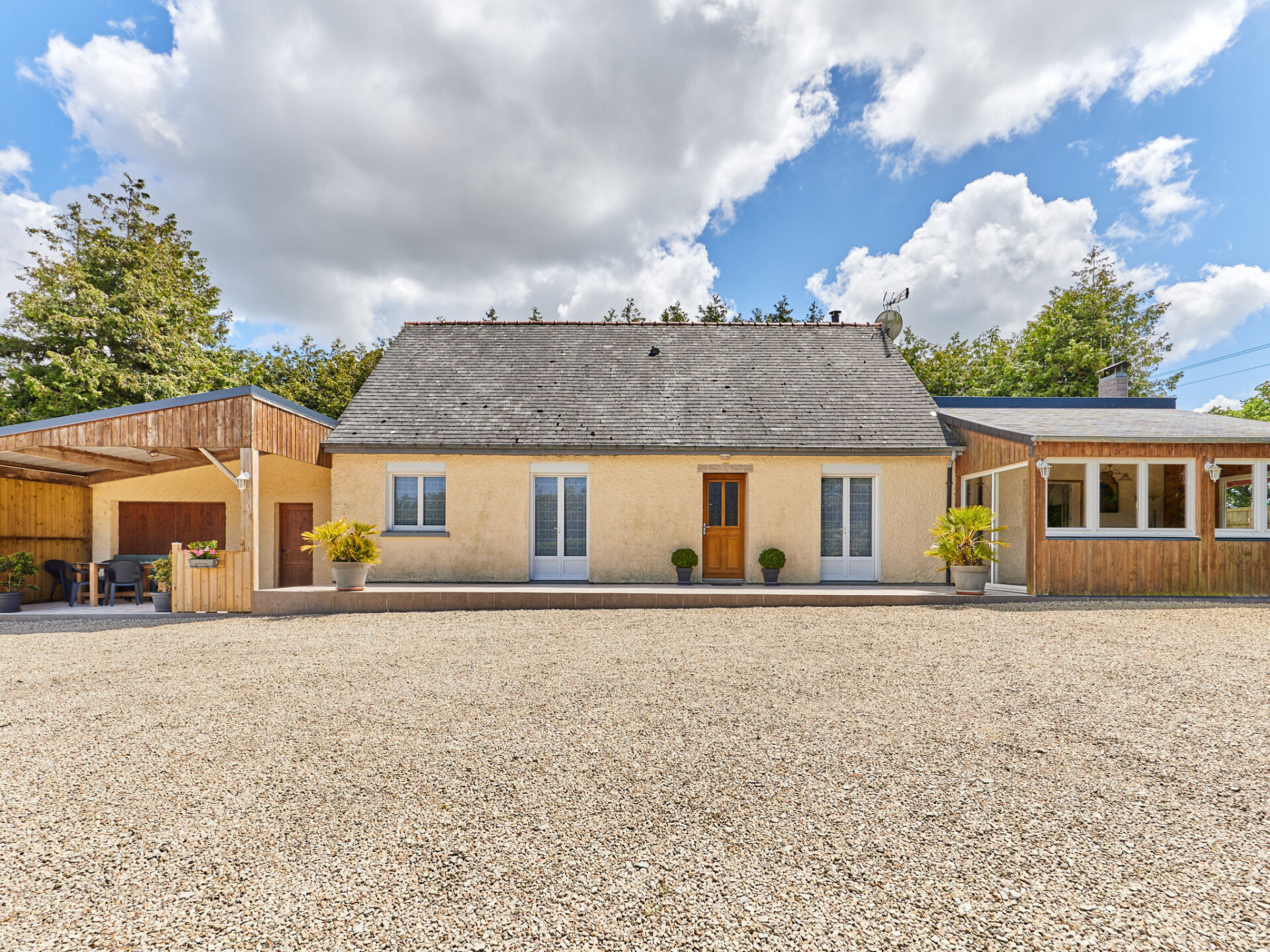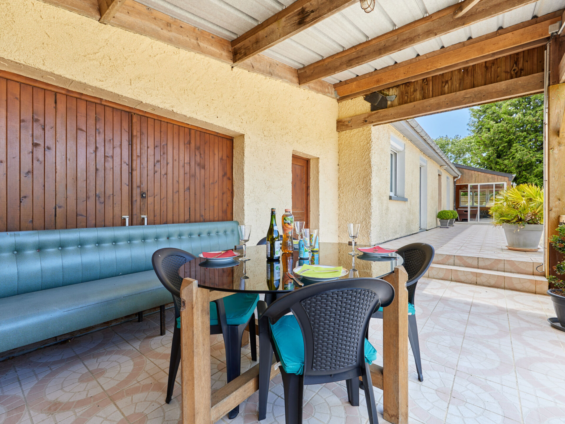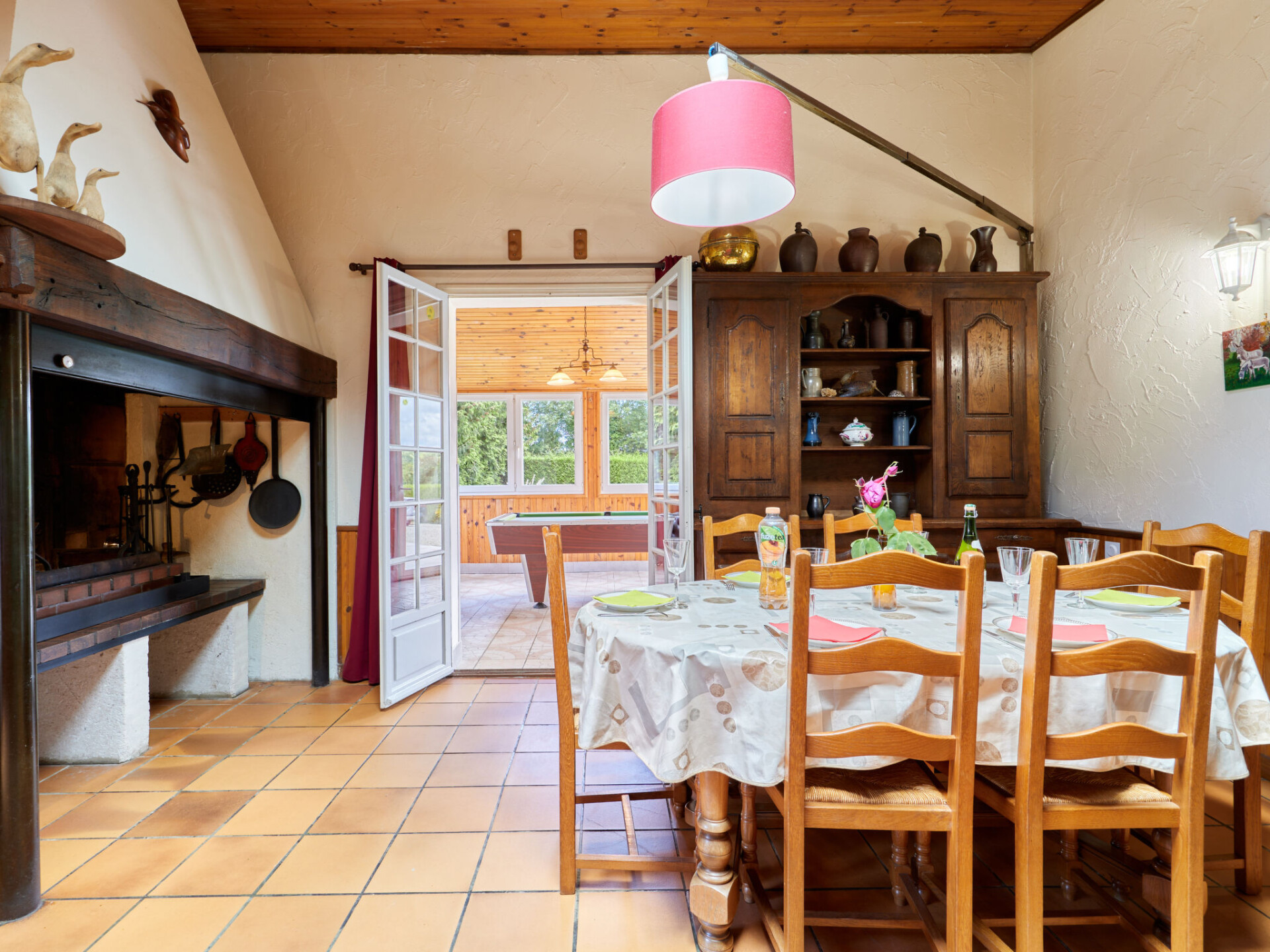 "Entre mer et campagne 3", huis 5-kamers 190 m2. Rustiek en met veel hout ingericht: woon-/eetkamer met open haard, eettafel, bar, Sat-TV, radio, stereo-installatie en DVD. Uitgang naar het terras. Biljardkamer met wintertuin. 3 kamers, elke kamer heeft 1 2-pers bed (160 cm). 1 kamer met 1 2-pers bed (1 x 140 cm). Uitgang naar het terras. Keuken (1 kookplaat, oven, afwasmachine, 3 kookpitten (vlammen), broodrooster, waterkoker, magnetron, diepvriezer, elektrische koffiemachine). Douche, aparte WC. Elektrische verwarming. Parketvloeren. Terras terras overdekt. Terrasmeubelen, barbecue, bergruimte. Ter beschikking: wasmachine, droger, strijkijzer, kinderstoel, kinderbed, haardhout (gratis). Internet (Internet (WiFi), extra). Rookvrij huis. Maximaal 1 huisdier/hond toegestaan.