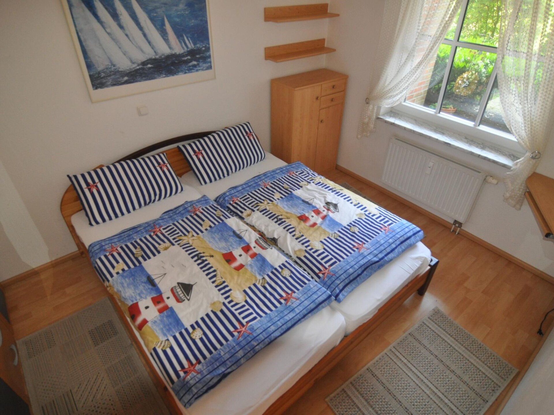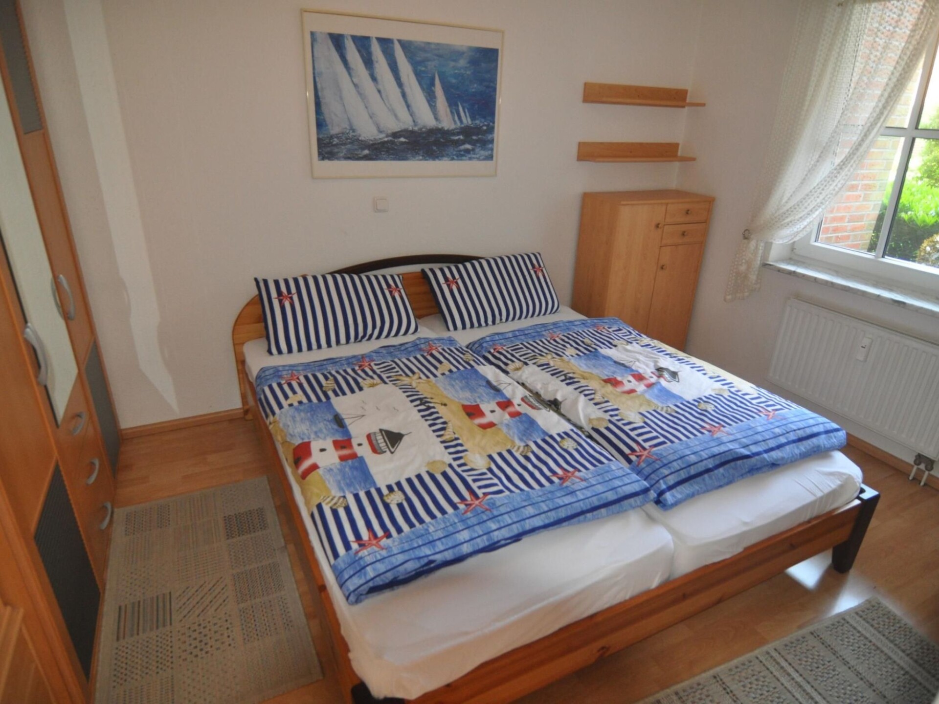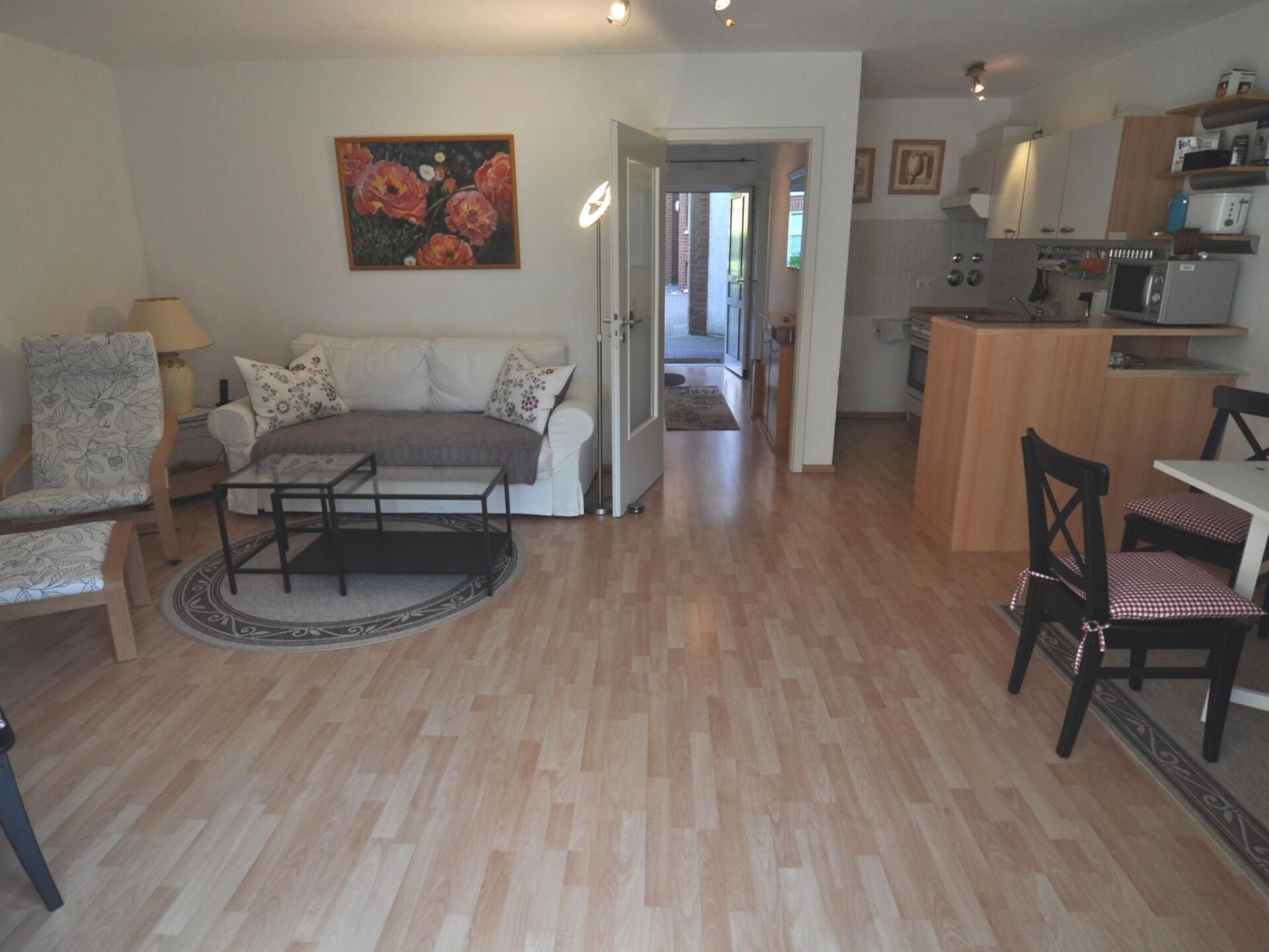 Sunny means sun for breakfast, lunch and coffee. Smoking is only permitted on the terrace! Your walk to the west will take you along the water, past the indoor swimming pool (inexpensive), spa administration, centre with boutiques, jewellery shops, cafés and restaurants to the historic harbour where fresh fish is landed daily. Why not try the fresh fish sandwiches or the traditional fish soup here? On the beach, the path continues around the harbour directly to Timmendorfer Strand, which invites you to look around and shop or watch the 'scene' or those who think they are (Café Wichtig). Heading east, you will come to Travemünde via the Brodtener Ufer cliffs and Hermannshöhe with a wonderful view over the Bay of Lübeck.Spacious living room with integrated kitchen, dining area and direct access to the terrace. Bedroom with double bed with single mattresses measuring 100 x 200 cm and bedside tables, as well as a wardrobe. Outside window with blackout blind. Please bring your own bed linen. The kitchen is integrated into the living room and is equipped with everything you are used to at home, including - fridge with freezer compartment - cooker with ceramic hob and oven - microwave - kettle - coffee machine - dishwasher Bathroom with shower, washbasin, WC and an outside window.Activities ! Many sports facilities with the corresponding schools promise successful recreation with fun and games for young and old at any time of the year. Windsurfing, sailing, water skiing, fishing, diving, swimming, cycling on varied tours, inline skating, golf (Timmendorfer Strand, Warnsdort, Travemünde), tennis, horse riding.When enquiring about dogs, please state their shoulder height and breed. Enjoy complete relaxation in a comfortably furnished flat 50 metres from the sea. The flat was completed in 1995 and is guest-friendly. The beach is gently sloping, making it the best place for small children to play in the shallow water without having to cross a road. By the way, dogs are welcome guests and of course stay for free. Part of the nearby beach is currently open to dogs all year round. In summer, walk barefoot through the fine sand, dive into the waves or simply forget everyday life in a beach chair. The charm of the early and low season: in winter, after long walks, a visit to the sauna and mulled wine in your flat - by candlelight and cosy warmth, because Timmendorfer Strand is always busy, but a time without the hustle and bustle.Around Niendorf and benefits of the ostseecard ! Discounts for the Sealife aquarium, for the Aalbeek bird park with its 52-species owl collection, for the Ostsee-Therme in Scharbeutz, for the Niendorf indoor swimming pool, for public transport buses, for the Hansa-Park Sierksdorf 20 kilometres away and for the Hemmelsdorfer-See nature reserve. From the picturesque Niendorf fishing harbour and marina, excursion steamers depart several times a day to a wide variety of destinations along the coast and up the Trave. In summer, music and theatre performances take place in many nearby locations, such as opera, operetta and open-air performances in Eutin Castle Park. The nearby 5-lake plateau near Malente awaits you for a romantic boat trip. A visit to the old Hanseatic city of Lübeck with its historic city centre can be wonderfully combined with a visit to the Christmas market. In Oldenburg, you can visit the old rampart museum and the historic ring wall.We reserve the right to ask for a reasonable deposit on arrival, which will be refunded on proper departure.