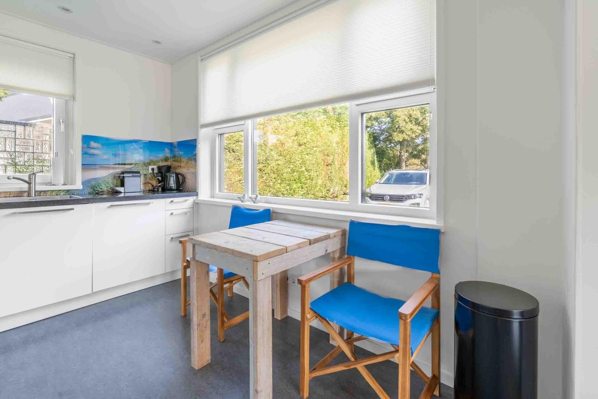 Wanneer je de woonkamer binnenkomt, kom je in een heerlijke woonruimte welke voorzien is van een zithoek met een smart tv en een eethoek met eettafel voor 6 personen. De nette open keuken is van alle gemakken voorzien, zoals een vaatwasser, combimagnetron en 3 verschillende koffiemachines.