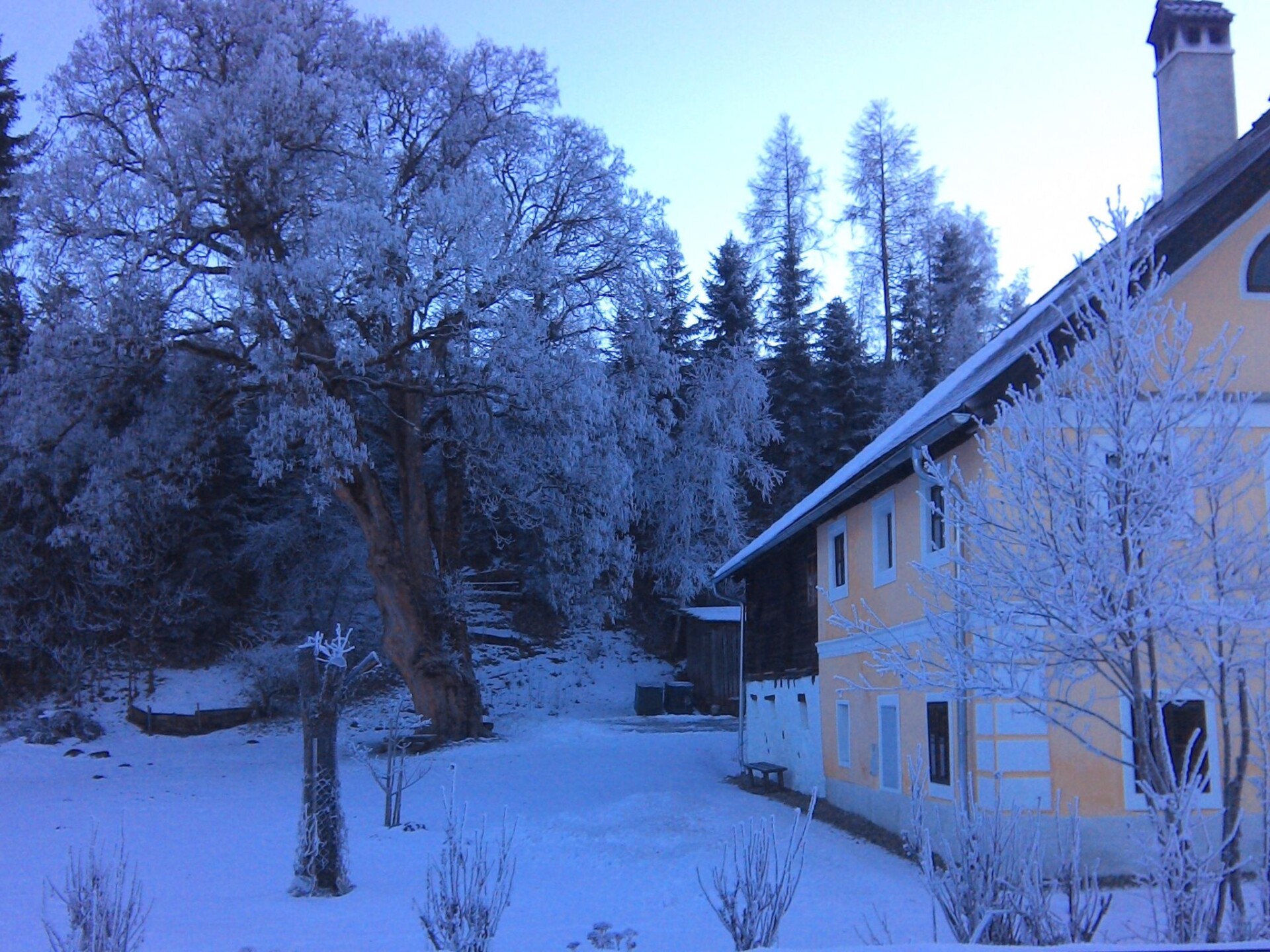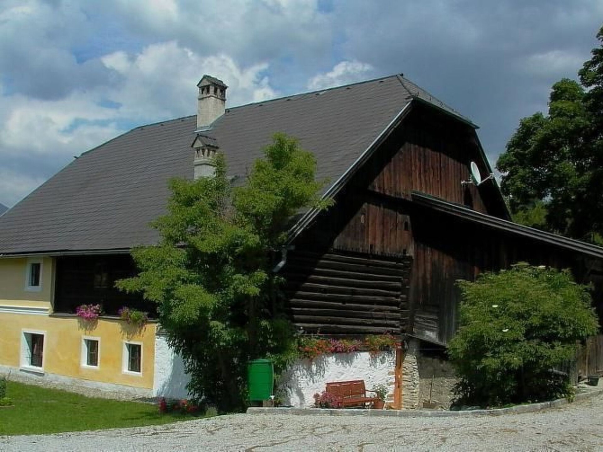 Pichl village, near Mariapfarr, Lungau, Salzburg county, Austria. An apartment in a lovingly recently renovated, Austrian farmhouse, dating from the 1600s. Many traditional features have been retained. The house contains 2 holiday apartments on 2 floors. This apartment for up to 6 people is situated on the ground floor. It provides a living space of nearly 90 m² and has 2 bedrooms, one with double bed and the other room with double and bunk bed. (Please note that all beds have a foot and headboard, so not suitable for very tall people.) There is a bathroom with shower, and another seperate toilet. A large kitchen and a combined dining and living room. The whole house was recently awarded ' Traditional Apartments of the Year for Austria - Salzburg' by the British Travel and Hopitality Awards, 2018+21.A large garden surrounds the entire property with full access for guests. Climbing frame/slide and swings for children. Many items of garden furniture ensure relaxation in shade or sunny positions. A BBQ / Grill is available for guests' use. The 300+ year old Sycamore is a protected living monument and is over 6m in circumference and as tall as the house. The steam train line runs by the side of the house, 4 times daily over the summer weekends.Quiet location in the village by a river, but only a few minutes from 4 major ski areas and Marapfarr. Free ski bus 300m. The Lungau is a brilliant area in summer also, for hiking, biking and relaxing.