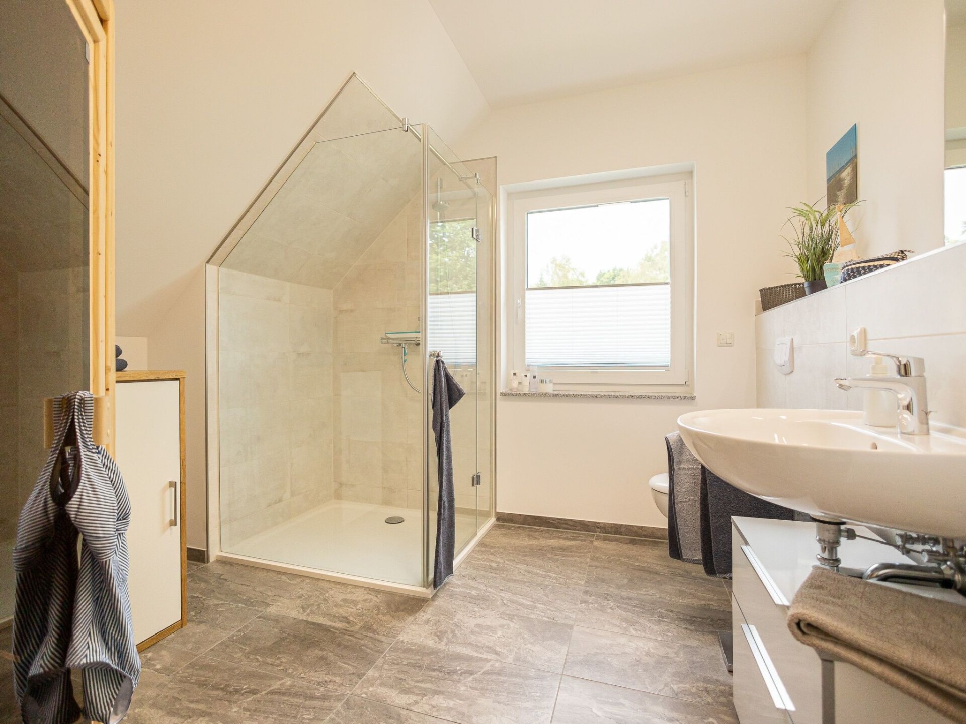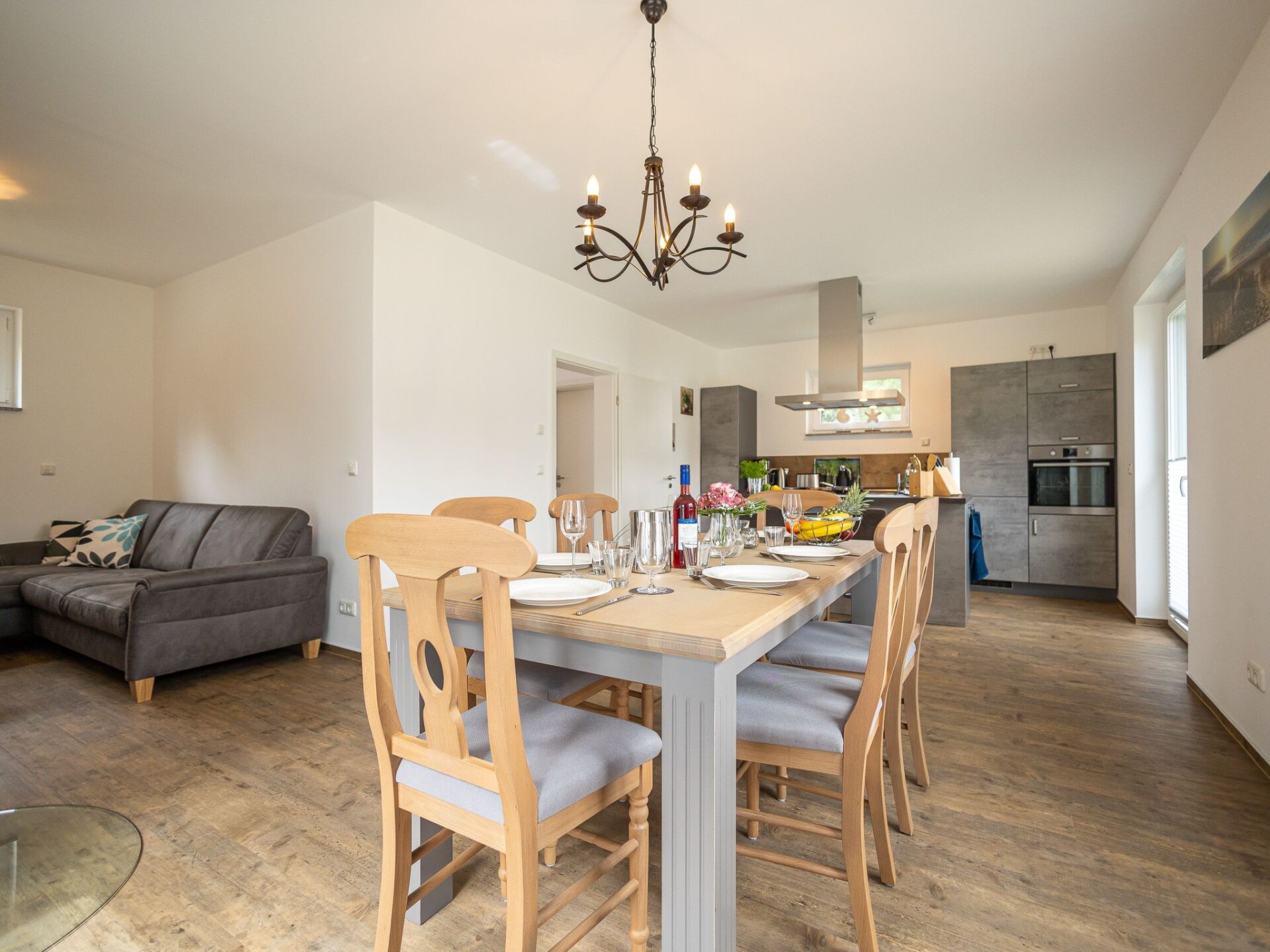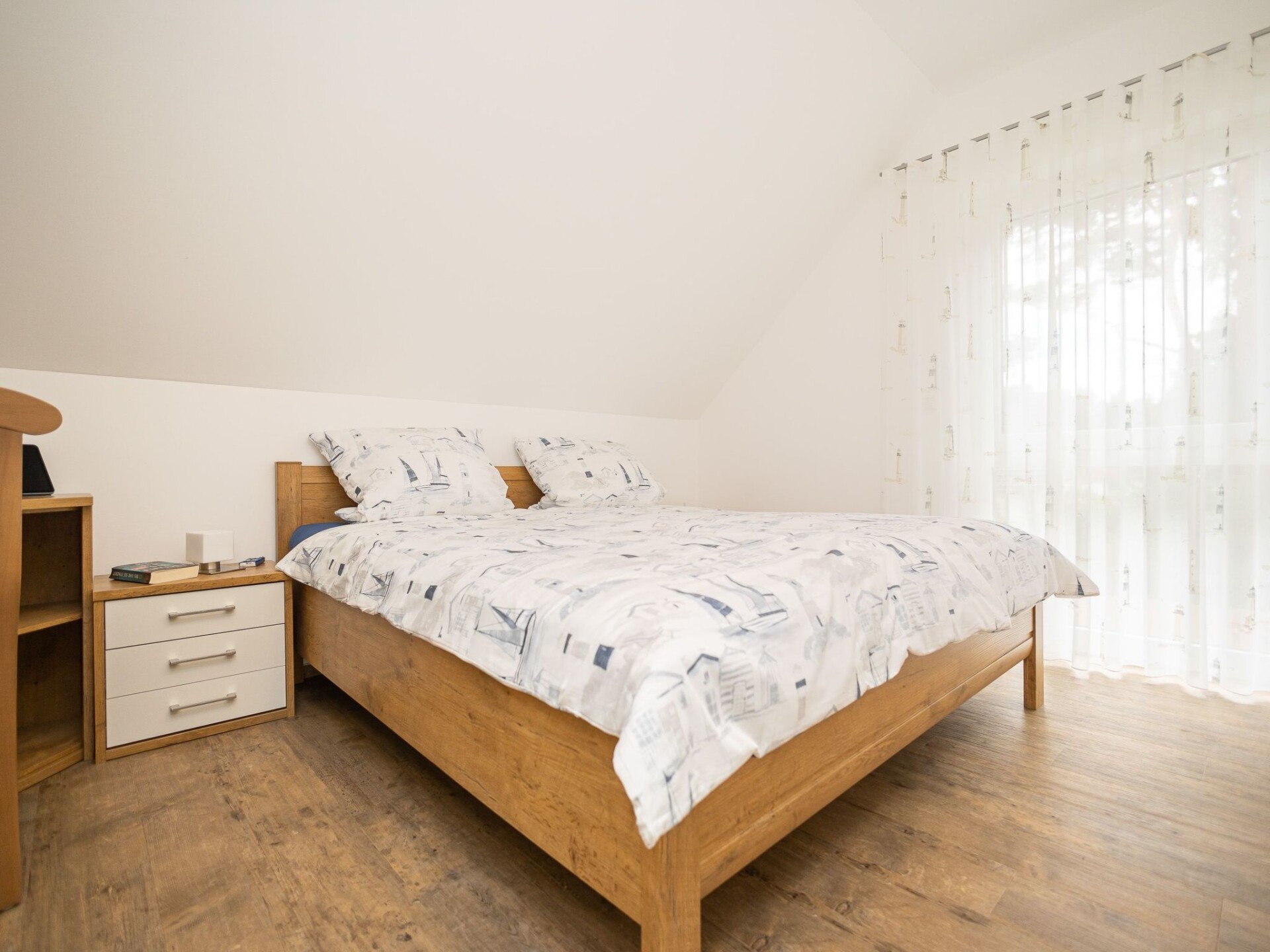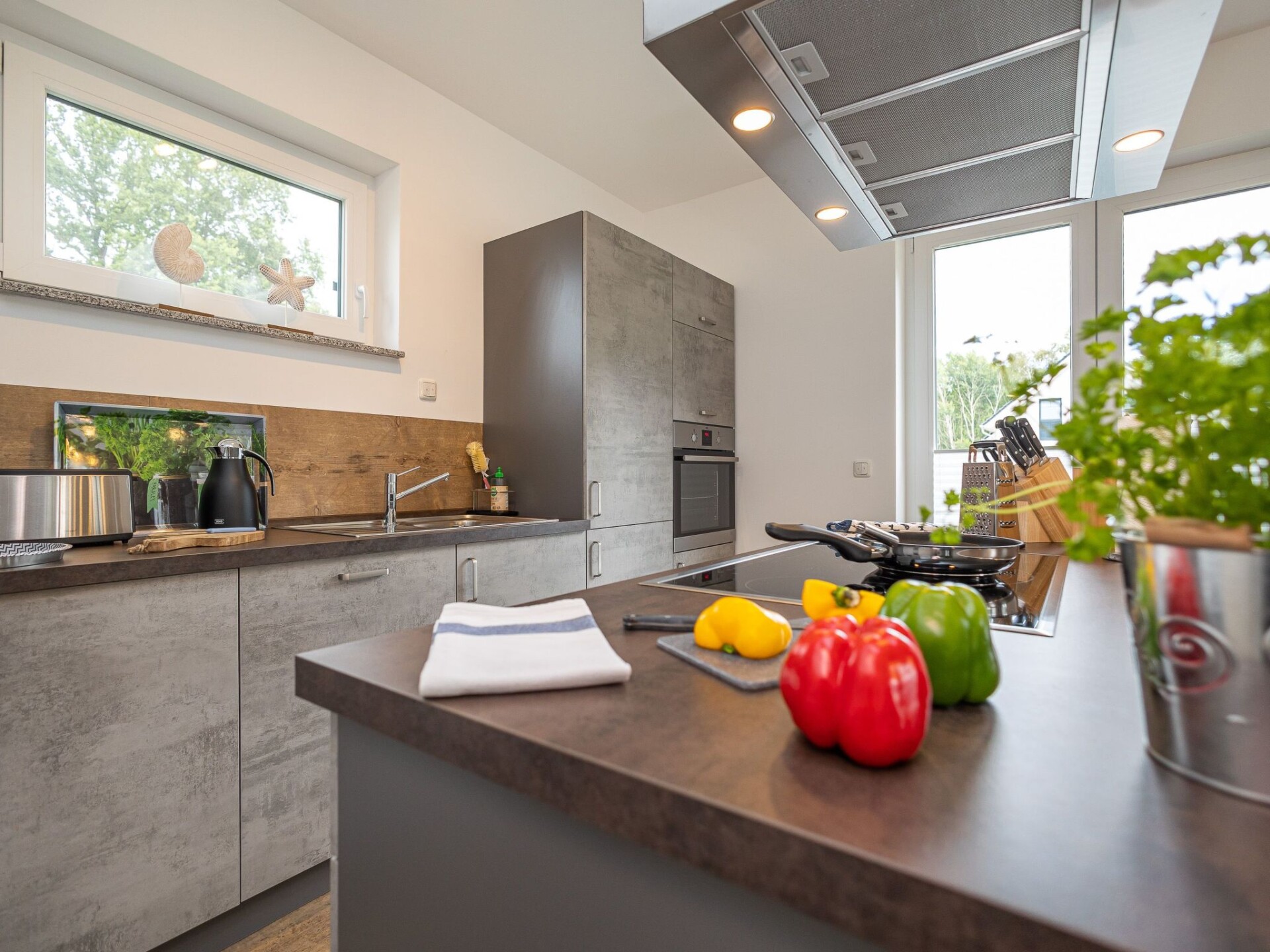 The holiday home, completed in August 2021 and equipped with modern facilities, is located on the edge of a small, cosy holiday home settlement on a 475 sqm plot in the middle of the "Vorpommersche Boddenlandschaft" nature reserve. The mild coastal climate, miles of fine sandy beaches between Zingst and Prerow on Fischland-Darß-Zingst and rustic forests, such as the Zingster Osterwald, which can be explored on foot or by bike, guarantee a relaxing and peaceful holiday at any time of year.The lovingly furnished holiday home offers space for up to 6 people to relax in three bedrooms, a spacious, attractively designed living/dining area and two bathrooms with shower and WC. The house is heated by a modern air heat pump through the central underfloor heating.The living/dining area is located on the ground floor and invites you to linger on approx. 38 square metres. Here you will find a fully equipped kitchen and seating for up to 6 people. The terrace and green areas are easily accessible through the floor-to-ceiling windows and can be used with the garden furniture provided.The living area has a cosy sofa, armchair and fireplace for an evening of TV or music. In the three bedrooms on the upper floor, there are two rooms with double beds and one room with a single bed and a folding wardrobe bed. Travel cots and highchairs are available on request.We ask for your understanding that the house is non-smoking.Friendliness is a matter of course for us as hosts. The current contact person for all questions and problems on site is the operator of the Café & Bar Wolli, which is located in the immediate vicinity of the holiday home area on the cycle path to Pruchten/Zingst ("Östlicher-Backstein-Rundweg", approx. 80 km around the Bodden).This circular route can be shortened by using the Bodden ferries or buses. The cycle path is also suitable for inline skates, roller skates and skateboards, jogging and Nordic walking. The Bodden is ideal for kitesurfing and SUP due to the wind conditions.The Bodden ferry departs from the harbour in Bodstedt several times a day during the season. You can shorten the wait with a tasty fish sandwich and admire the wooden fishing boats typical of the area, the Zeesenboote.The local beach is just a few minutes' walk away. Bodstedt offers holidaymakers and locals fresh fish from the local fisherman and other regional dishes in three small restaurants.Highlights in the area:- Störtebeker Festival on Rügen (75 km)- Climbing forest in Born (23 km)- Karls Erlebnishof in Rövershagen (41 km)- Marlow bird park (38 km)- Stralsund Ozeaneum or Oceanographic Museum (42 km)- Rostock / Warnemünde (61 km)