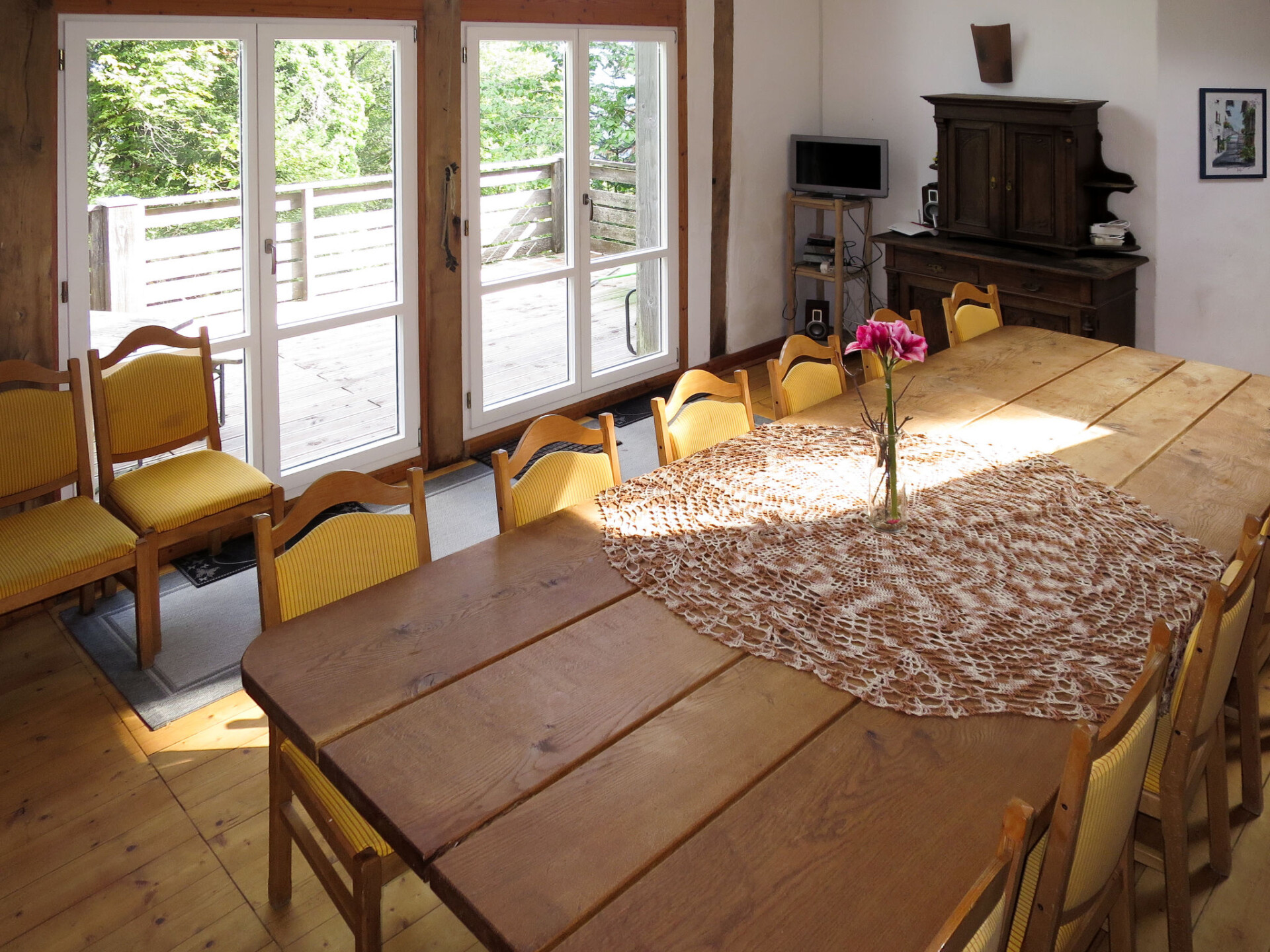 "Escher", huis 6-kamers 150 m2 op 3 verdiepingen. Rustiek en met veel hout ingericht: woonkamer, lage deurhoogte, 170 cm met open haard, zwedenkachel en Sat-TV. Keuken (oven, afwasmachine, 4 keramische glas kookplaten, broodrooster, waterkoker, elektrische koffiemachine). Douche/WC. Bovenverdieping: open eetkamer met eettafel. Uitgang naar het balkon. 1 2-pers. kamer met afgeschuinde daken. 1 kamer met afgeschuinde daken met 1 bed en 1 x 2 stapelbedden, 1 2-pers bed. 1 kamer met afgeschuinde daken met 1 bed en 3 x 2 stapelbedden, 1 2-pers bed. 1 kamer met afgeschuinde daken met 2 bedden en 1 x 2 stapelbedden. Douche/WC. 2e Verdieping: 1 2-pers. kamer. Elektrische verwarming, houtverwarming. Houten vloeren. Groot balkon. Balkonmeubilair, ligstoelen (6). Ter beschikking: kinderstoel, kinderbed. Internet (Internet (WiFi), gratis). Rookvrij huis. Maximaal 3 huisdieren/honden toegestaan.
