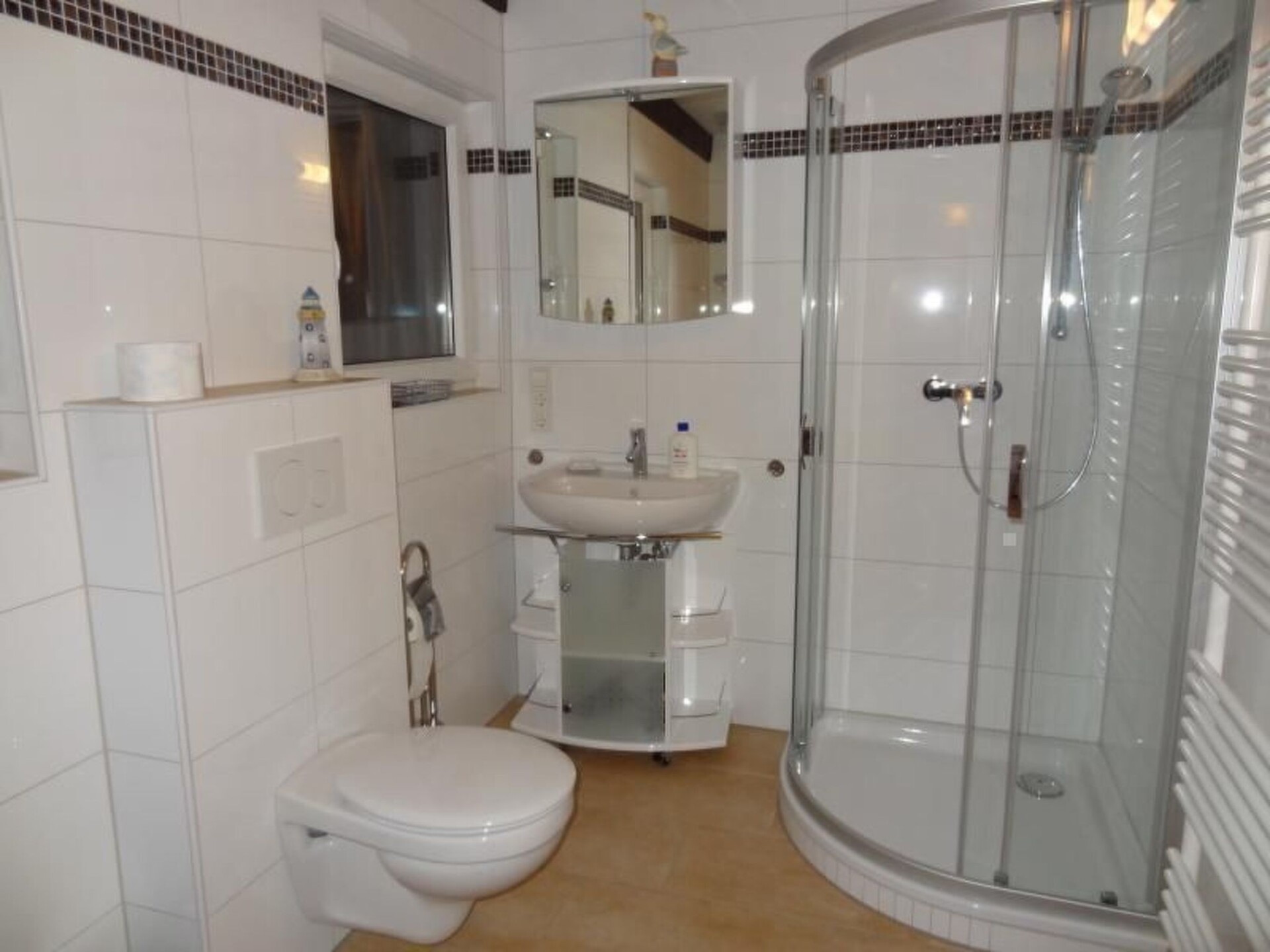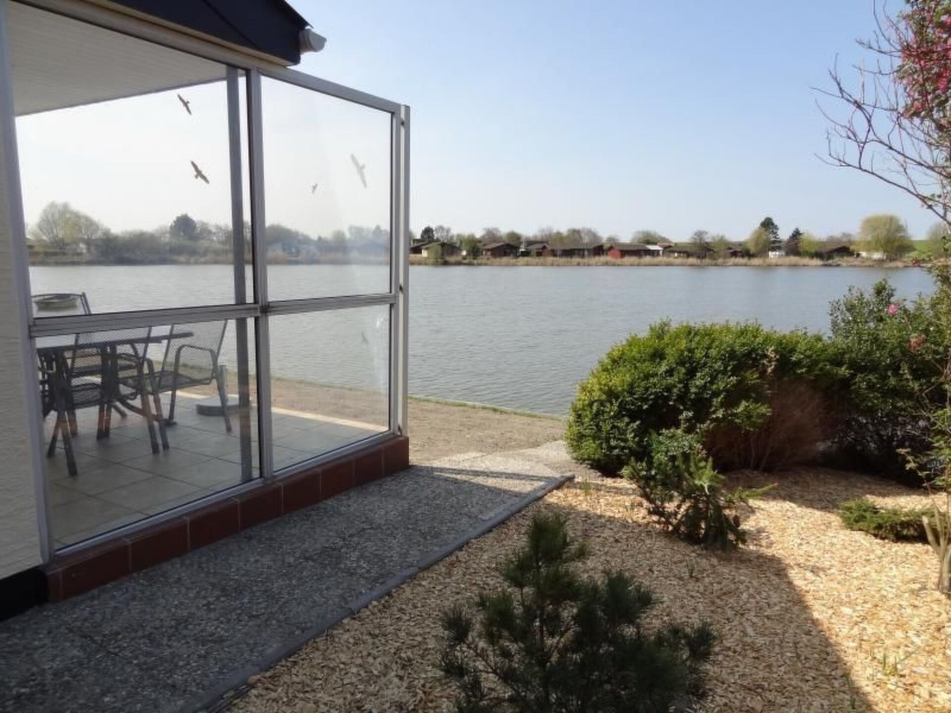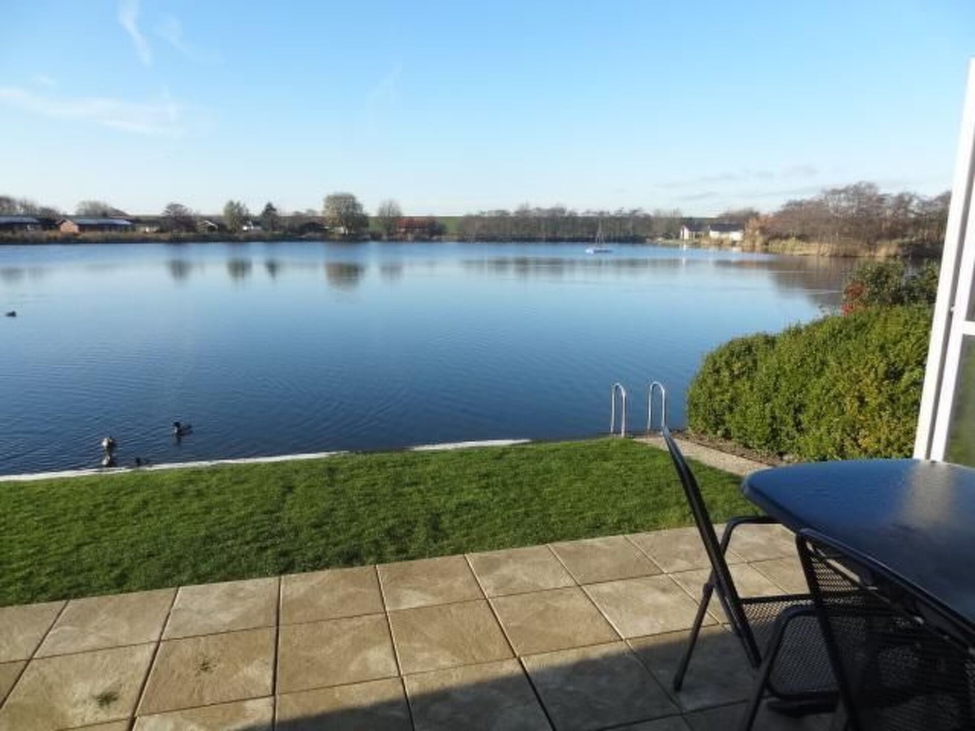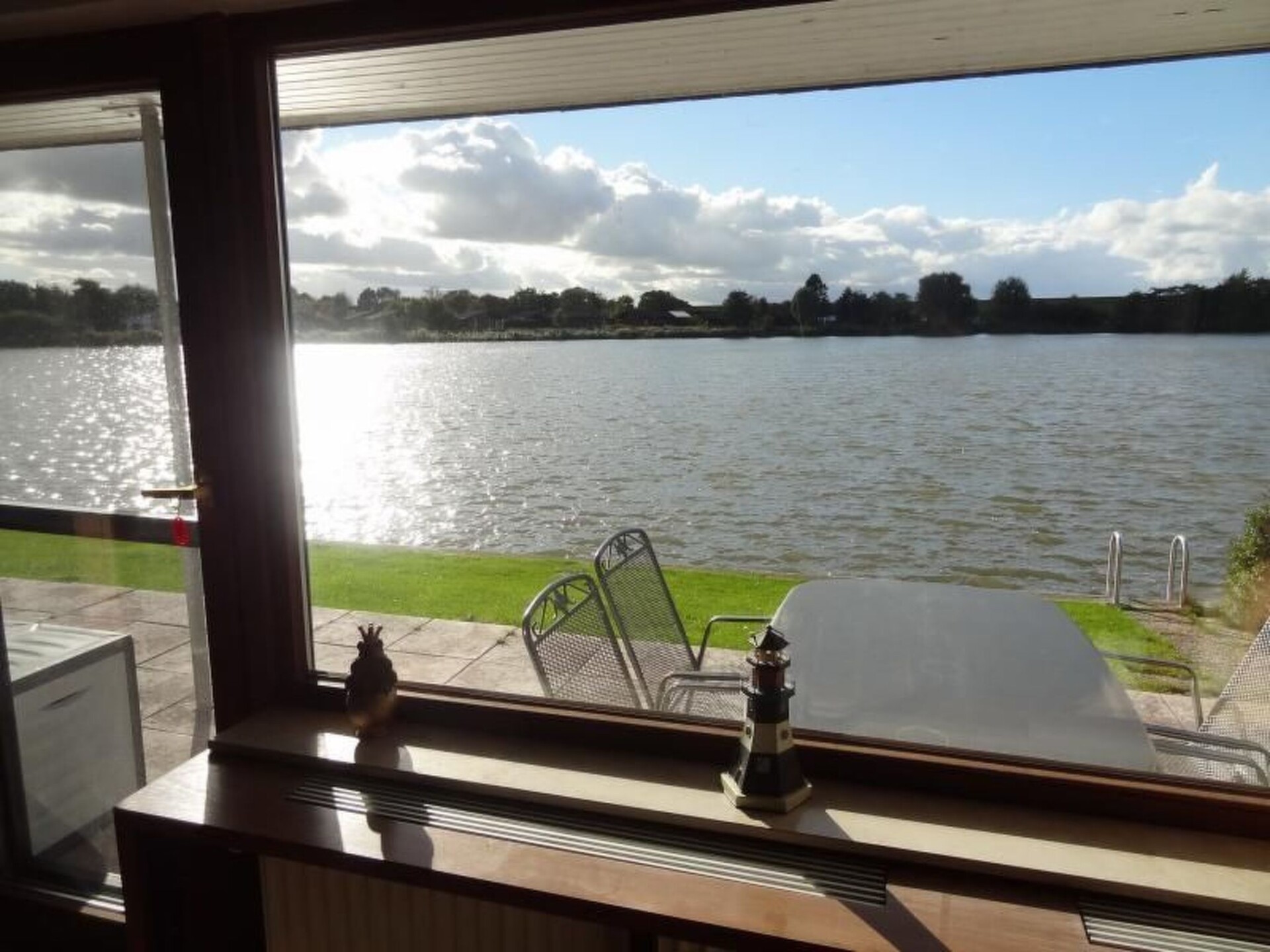 The dream holiday house with direct access to an inland lake, right on site, affords a beautiful view towards the North Sea embankment.It was completely newly renovated at the end of 2012, including new flooring (tiles, and laminate on the upper floor), as well as a new kitchen and a big new shower room. The furniture in the living room has been completely renewed to a high standard. The house stands on a site of over 380m² right by the lake and provides around 75m² of living space. The lower area has a big living room with an open fireplace, a kitchen and a dining room. Both rooms afford a wonderful view of the lake and embankment. The lower level also has a big bathroom with a shower cubicle and a bedroom with a double bed. The upper level has another bedroom with an alcove, a double bed and a single bed. There is a sofa bed on a gallery, along with a reading corner, with shelves with any books and some board games. A highchair, travel cot with a blanket and a pillow are available (bring your own protective mattress cover and bed linen). The bedroom windows are fitted with blinds.There is an electric fireplace which is for an atmosphere purpose only. It is not a real fireplace.A table, garden chairs with cushions, two loungers and a canopy beach chair are provided in the garden.The house is in the Eckwarderhörne holiday park, which includes a 50,000m² inland lake, also for fishing. A playground, tennis court (payable), volleyball court, sports ground, bicycle hire and a cosy little restaurant are available on site. From House A9 to the direct access to the lake is only about 250 metres. It is about 700 metres to the Eckwarderhörne beach facilities with a lighthouse, ferries and a starting point for guided walks across the tidal flats.