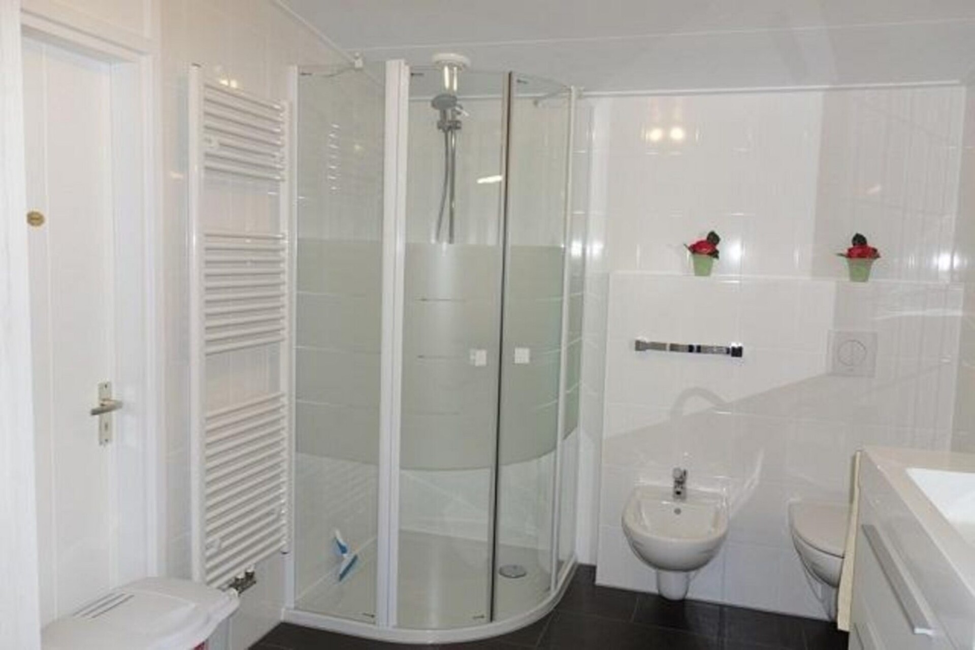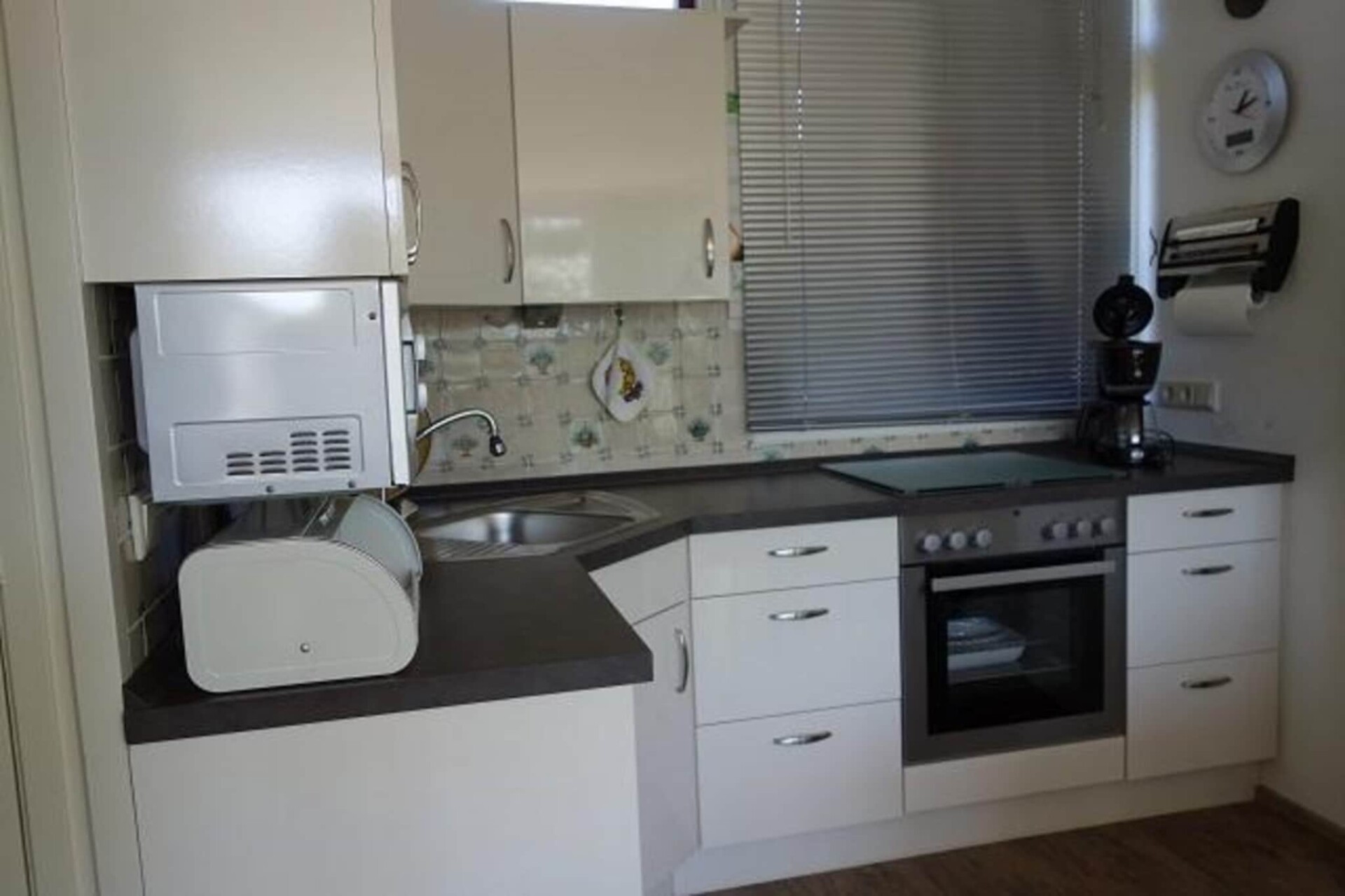 Binnen is de woonkamer licht en comfortabel, met leren stoelen, een elektrische open haard en een flatscreen-tv voor gezellige avonden. De open keuken is goed uitgerust met alles wat u nodig heeft tijdens uw verblijf, inclusief moderne apparatuur zoals een keramische kookplaat, combi-oven, koel-/vriescombinatie, koffiezetapparaat, waterkoker, broodrooster en zelfs een eierkoker. De nieuwe, ruime badkamer is een hoogtepunt, voorzien van een inloopdouche, wastafel met opbergruimte, bidet en een tweede toilet, waardoor deze zowel praktisch als stijlvol is.