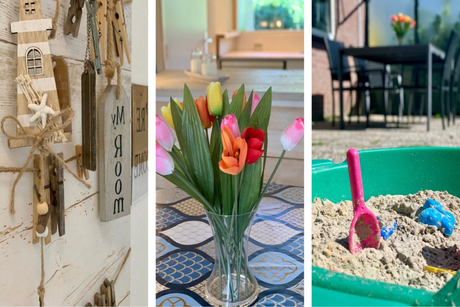 De woonkamer met laminaatvloer is voorzien van een tweezitsbank en twee fauteuils, plus een smart-tv met Nederlandse en een selectie Duitse zenders. De open hoekkeuken is volledig uitgerust met een gasfornuis, vaatwasser, oven, magnetron en een koelkast met vriesvak; keuze uit een filterkoffiezetapparaat en een Senseo-apparaat. Vanuit de woonkamer loopt u de heerlijke, grote tuin (500 m²) in, met een ruim gazon en een terras met een tafel en stoelen. Een elektrisch zonnescherm en een parasol zorgen voor de nodige schaduw en de tuin biedt volop privacy dankzij de volledige omheining en een afsluitbare schuur voor het stallen van fietsen. Huisdieren zijn welkom, maximaal twee.