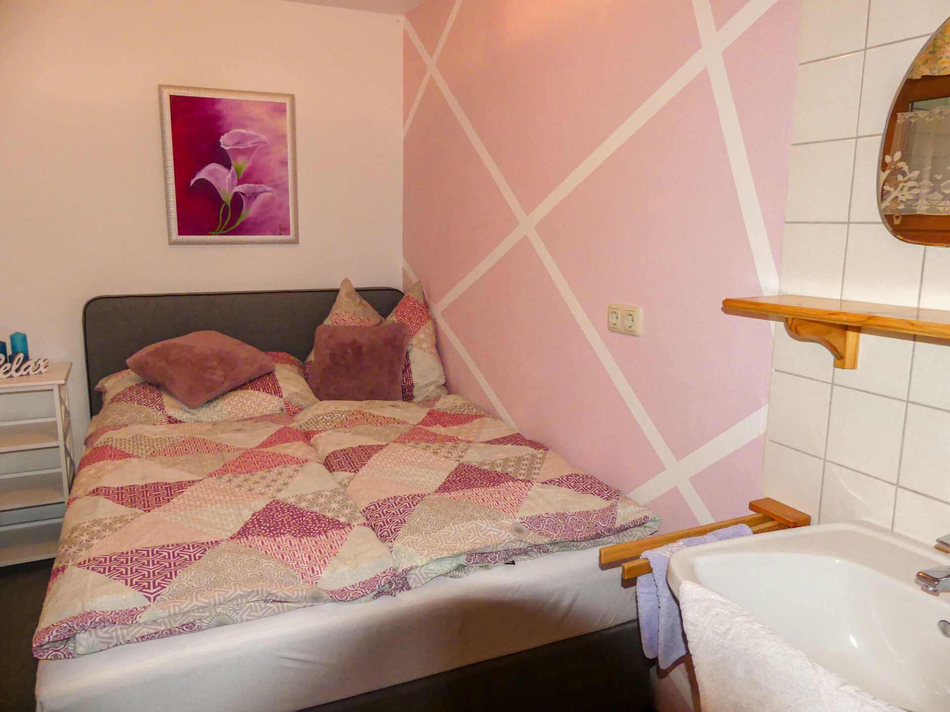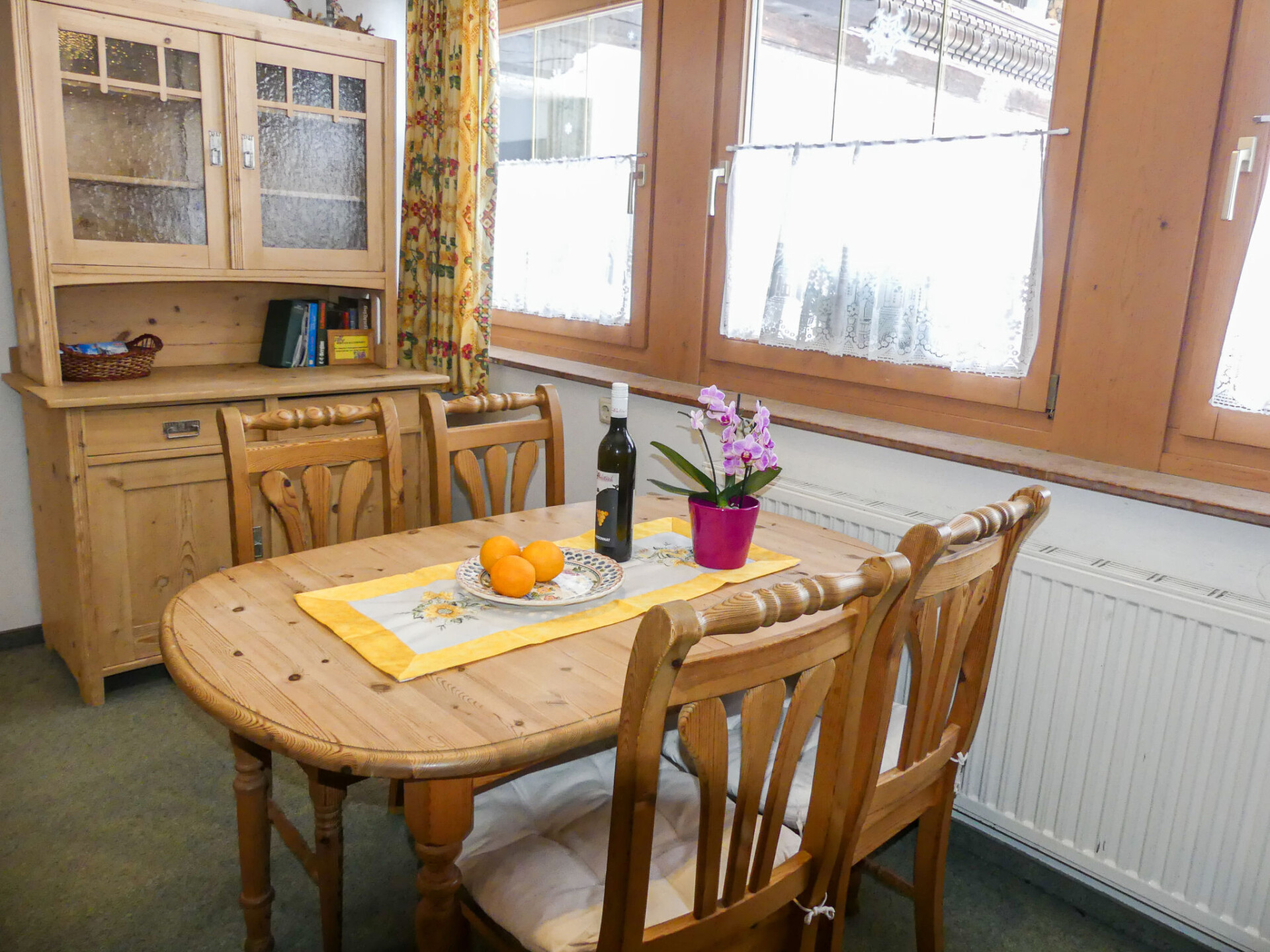"Eusch", appartement 3-kamers 62 m2, op de begane grond. Gezellig ingericht: woon-/slaapkamer met 1 2-pers divanbed, eettafel, Sat-TV en tegelkachel. 1 kamer met 1 2-pers bed (140 cm), wastafel. 1 kamer met 1 2-pers bed en wastafel. Open keuken (4-pits kookplaat, oven, afwasmachine, broodrooster, waterkoker, magnetron, elektrische koffiemachine). Douche/WC, aparte WC. Verwarming. Vloerbedekking. Ter beschikking: kinderstoel. Eén tweepersoonskamer is buiten het appartement. Niet rokers woning. Rookmelders. 50625-000155-2020