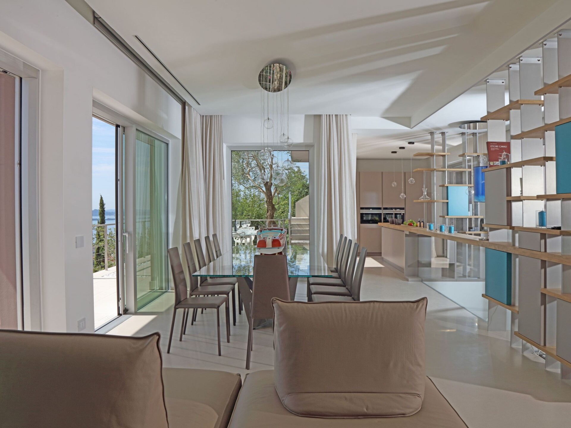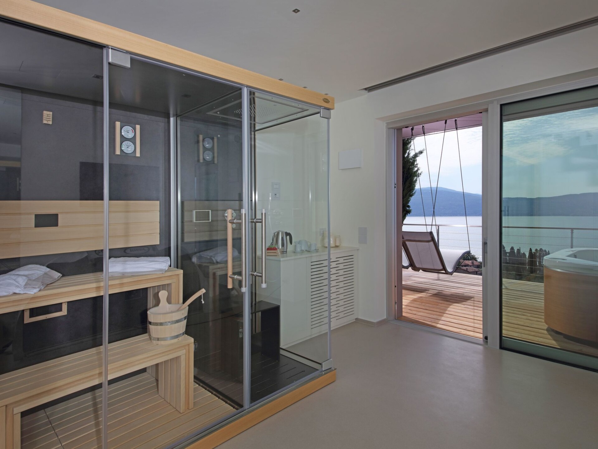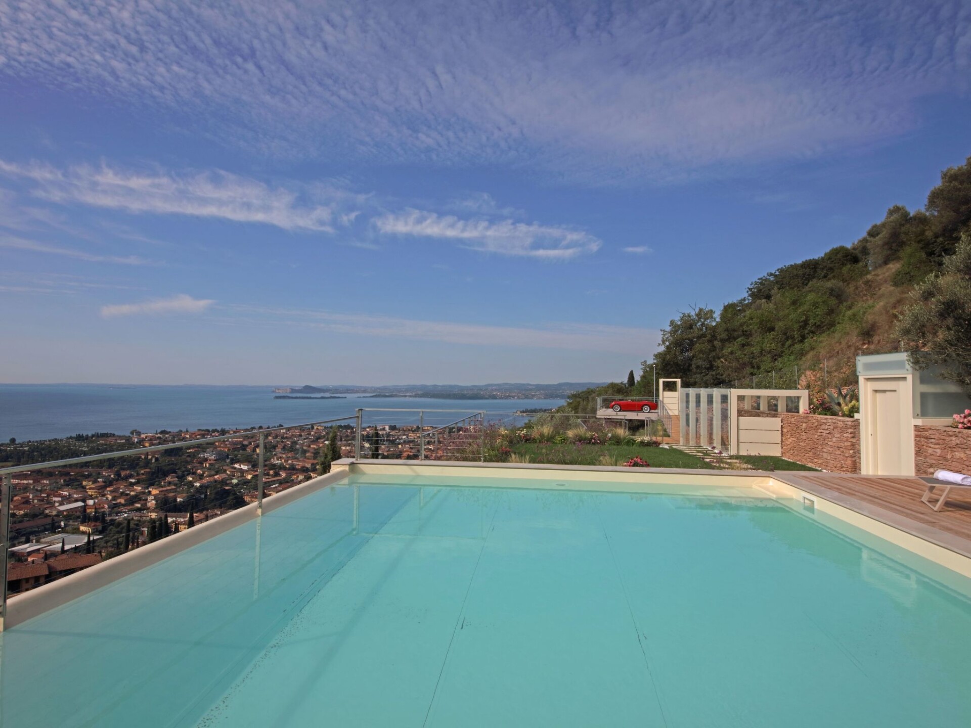 Villa Agave is a luxury villa with a modern style, furnished with exclusive and refined design pieces and with an incredible view of Lake Garda.Staying in the villa one can enjoy extreme privacy, being entirely surrounded by greenery, our guests are guaranteed absolute privacyImmersed in greenery and endowed with ample space, the villa features a wonderful infinity pool with panoramic views. The ideal setting for unforgettable aperitifs and moments of true relaxation.The living room is spacious, comfortable and bright. The open kitchen is equipped with everything you need to cook in complete autonomy during your stay: dishwasher, oven, microwave oven, induction hob, kettle, coffee machine and much more.The sleeping area consists of 4 bedrooms with double beds (each one has a bathroom: 3 with ensuite, one with a separate bathroom) two rooms have bunk beds and a single bed for our younger guests, for a total of 10 beds.The sauna with Turkish bath and heated whirlpool on the terrace complete this splendid villa, ideal for holidays with the family or in the company of friends.The villa has 3 parking spaces.CIR: 017187-CNI-00176- Heller Garden- 5,2 km- Vittoriale degli Italiani- 5,2 km- Bay of Sirens Park- 10 km- Jungle Adventure Park- 11,1 km- Gardagolf Country Club- 14,7 km- Wine Museum- 15,9 km- Caves of Catullus- 17 km- Oil Museum- 17 km- Vallio Terme- 17.4 km- Catullo Spa of Sirmione- 17.8 km- Sirmione Spa- 17,8 km Main attractions- Sirmione Castle - Rocca Scaligera- 18,1 km Nearest airports- Verona-Villafranca Airport- 36.1 km- Bergamo-Orio al Serio Airport- 71.1 km- Parma Giuseppe Verdi Airport- 96.1 km. IT017187B4BJBLUM6Q