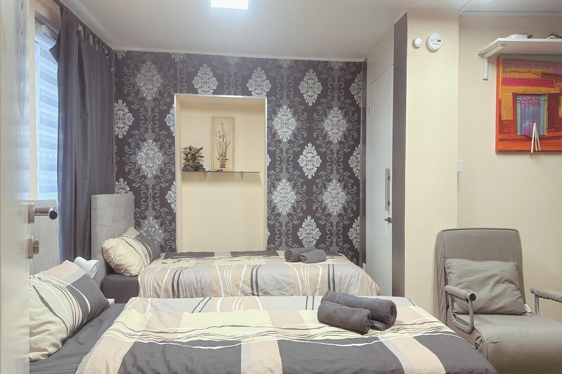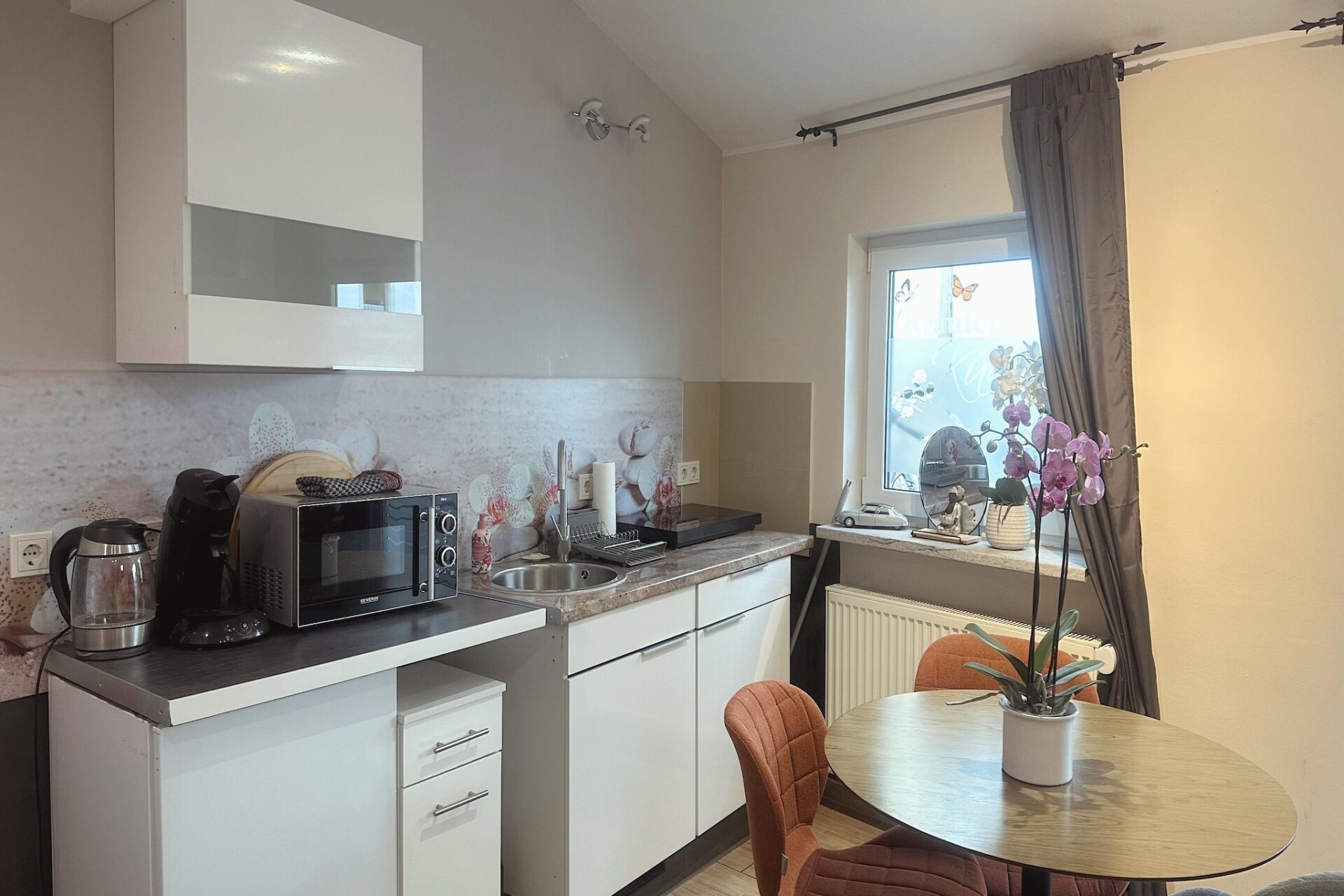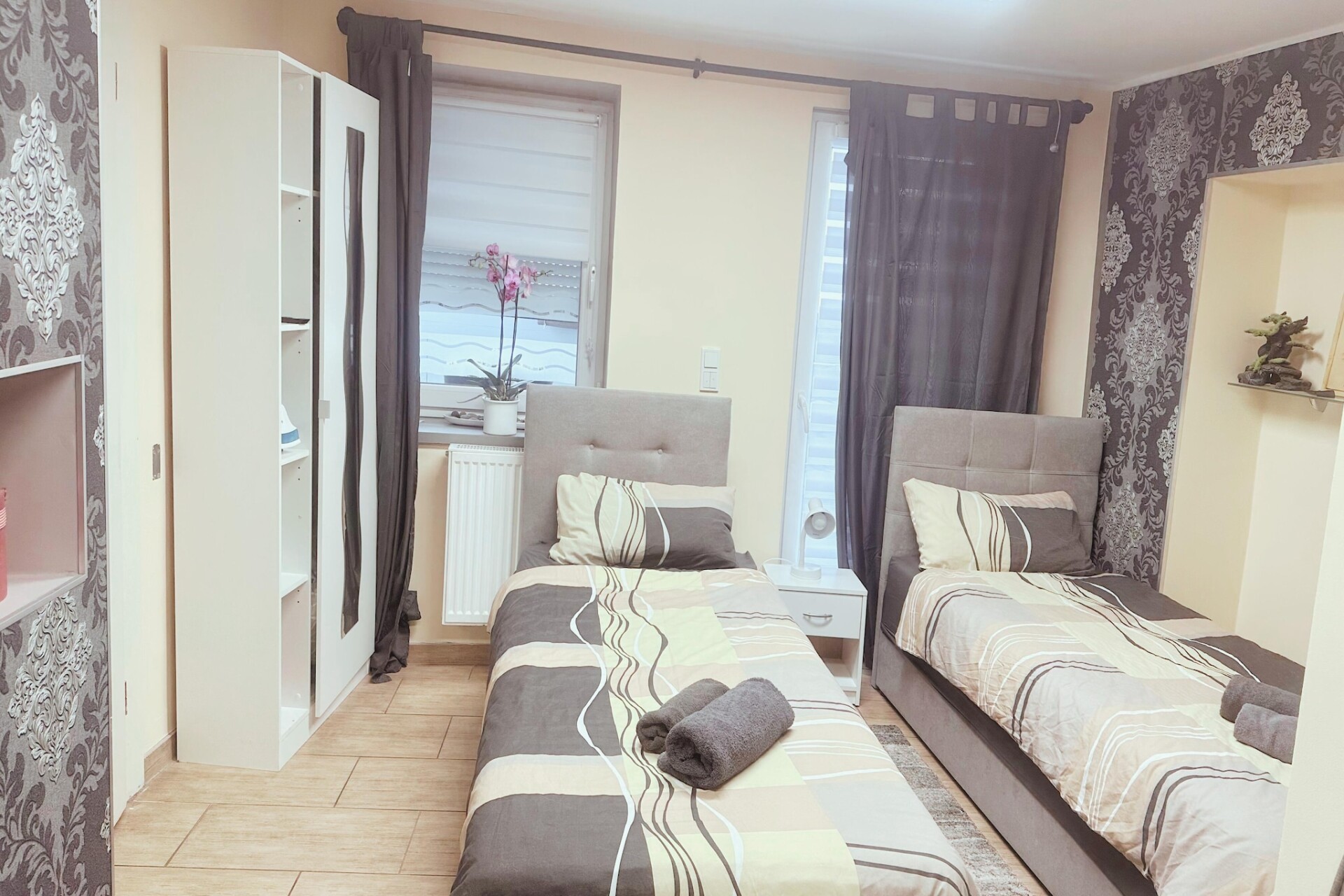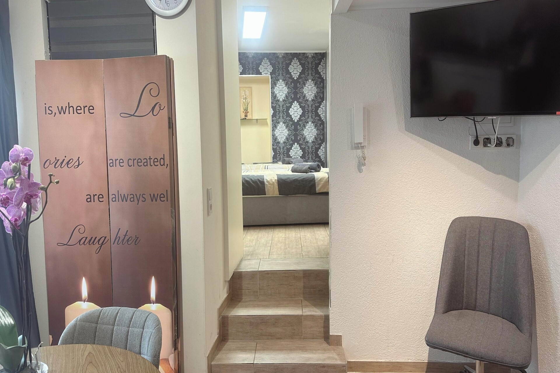 Het appartement beschikt over een lichte woonkamer met een comfortabele eenpersoons slaapbank, een tv en een eethoek – perfect om te genieten van maaltijden of te ontspannen na een dag vol ontdekkingen. De open keuken is volledig uitgerust met een koffiezetapparaat, waterkoker, magnetron, vaatwasser, koelkast en fornuis, waardoor u gemakkelijk alles kunt bereiden, van ontbijt tot diner. De aparte slaapkamer biedt een tweepersoonsbed of twee eenpersoonsbedden, afhankelijk van uw wensen, terwijl de moderne badkamer is voorzien van een douche, toilet, wastafel en haardroger.