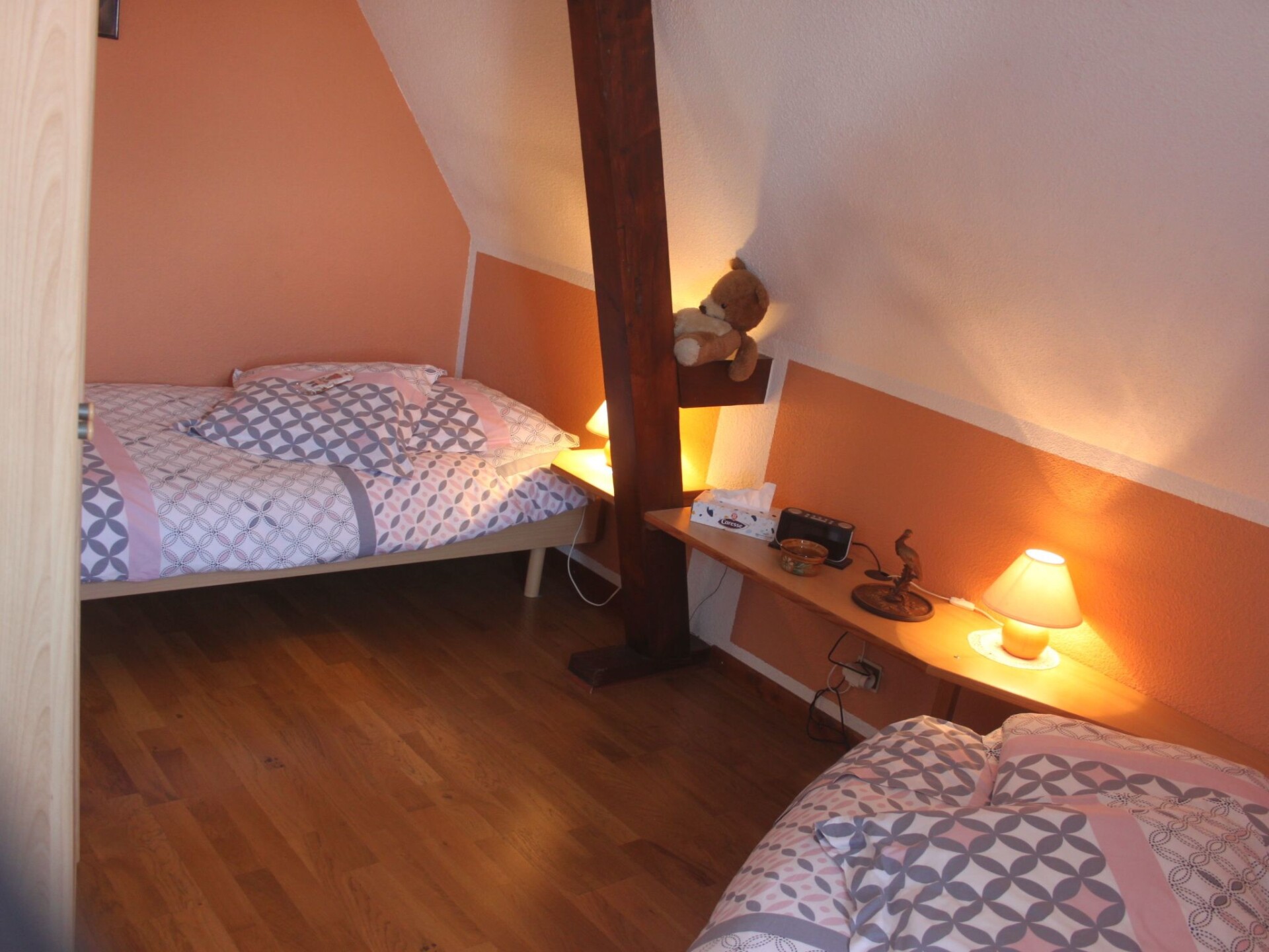 CHARMING ALSACIAN HOUSE CLASSIFIED GITE DE FRANCE 3 EPIS 3 ETOILES Charming Alsatian house, classified "Gîte de France 3* 3 épis" for 4/5 people, quiet, in the centre of the Alsace wine route and close to the most typical monuments of the region. The village of Nothalten is situated halfway between Colmar and Strasbourg. Its central location gives you easy access to the whole of Alsace, the Vosges and Germany.The gîte comprises: - 1 fully-equipped kitchen: oven, dishwasher, microwave, coffee machine, kettle, toaster, various frying pans, etc. - 1 living room with sofa bed, armchair, coffee table, bookcase with many books, mini-stereo with charging station for Iphone, TV (TNT HD) with DVD player (DVDs available free of charge) - 1 dining area with a large table and 6 chairs. 1 bedroom with a 160 x 200 bed, two bedside tables, a wardrobe and a cot. 1 bedroom with two separate 90 x 190 beds, wardrobe and bedside tables. - 1 WC separate from the showers. - 1 shower room with shower, washbasin, washing machine and storage cupboard for towels (provided free of charge). - 1 large covered terrace with barbecue and garden furniture. On the ground floor you will find a room dedicated to the various options we can offer you, such as breakfasts, table d'hôtes, etc.A large 35m2 private covered terrace with barbecue and garden furniture. A courtyard for parking cars. A 60 m2 lawn area with table, chairs and bench is at your disposal.The house is located in the vineyards, we do not rent bicycles, but you can get them at the tourist office. Various options are available: - breakfast on request at an additional cost - cleaning package. Electric car charging point with dedicated meter. We can also organise visits to wineries and distilleries, or arrange entrance tickets for various sites.There is a bakery in our small village, which also serves as a grocery shop. A post office. A few kilometres from Nothalten you will find supermarkets and other shops. From the gîte you have direct access to various hiking trails. 673370463004