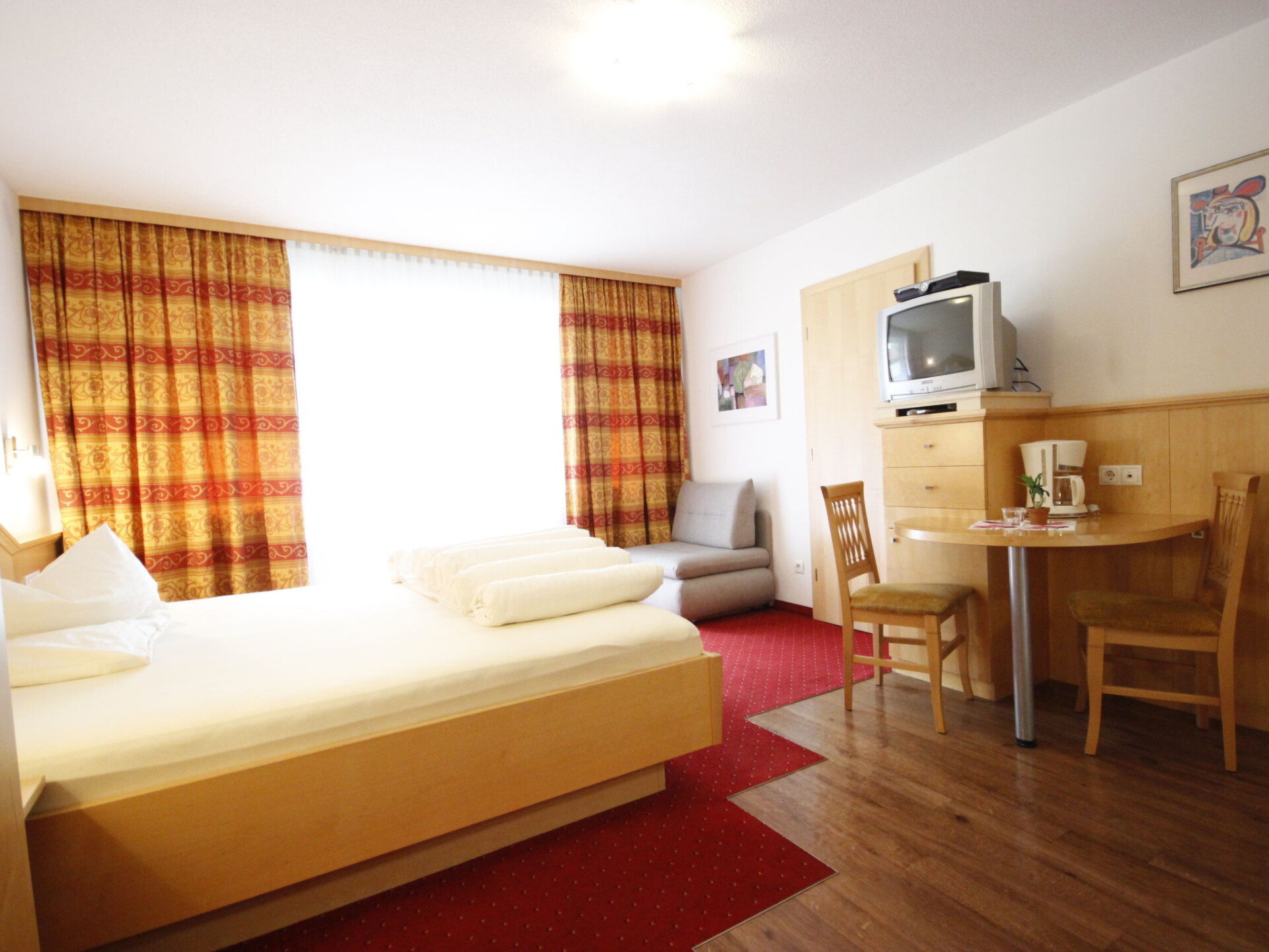 Appartement 1-kamer 26 m2, op de begane grond. Zeer mooi en gezellig ingericht: woon-/slaapkamer met 1 2-pers bed, eettafel en Sat-TV. Uitgang naar het balkon. Kookhoek (oven, afwasmachine, 4 keramische glas kookplaten). Douche/WC. Balkon. Mooi uitzicht op de bergen en het landschap. Ter beschikking: telefoon, kluis, haardroger. Internet (WiFi, gratis). Maximaal 1 huisdier/hond toegestaan. Rookmelders.