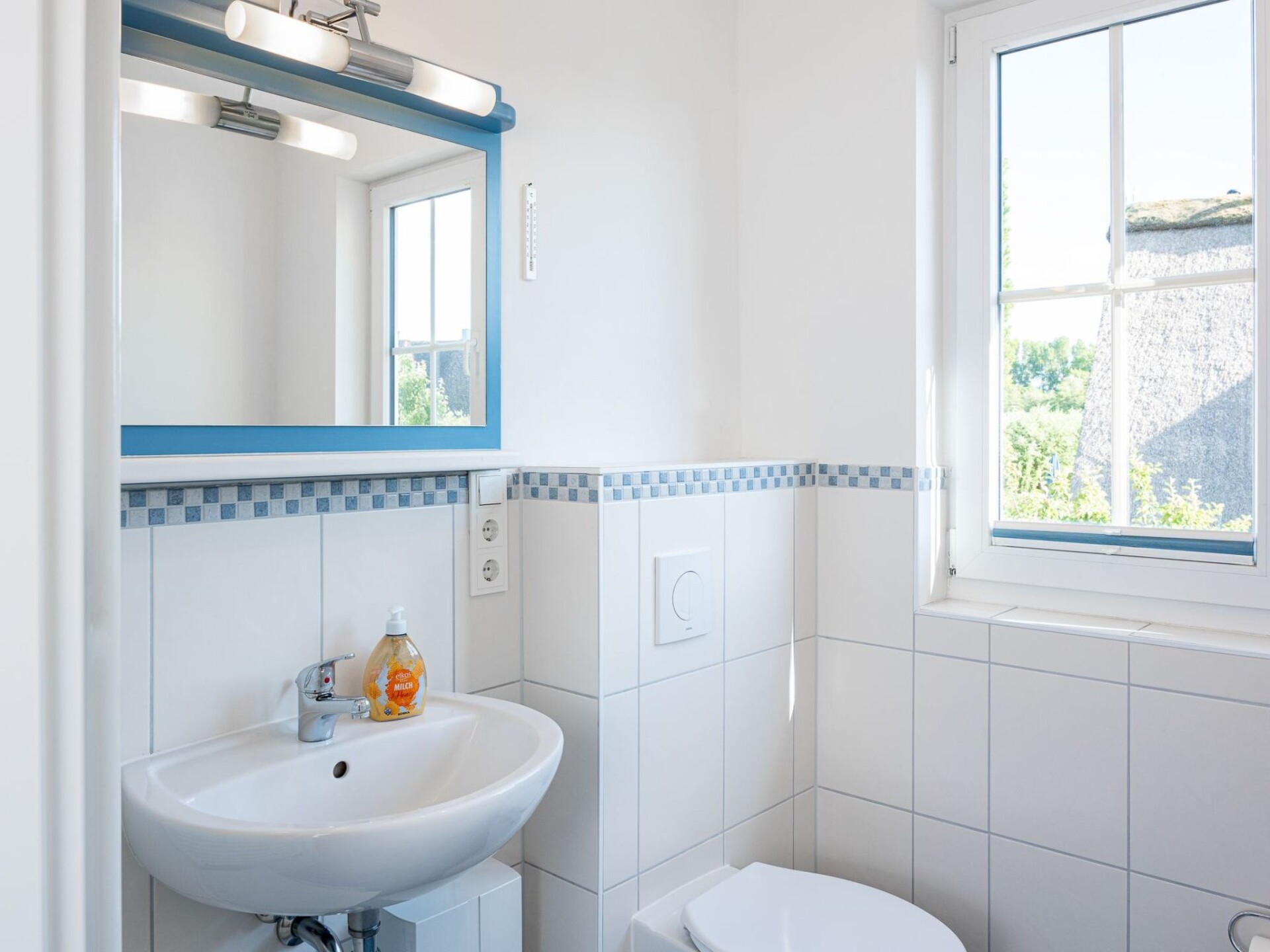 The Ostseepark Blaue Wiek is located directly on the Mecklenburg Baltic Sea coast between the old Hanseatic cities of Lübeck and Wismar, close to the settlement of Wohlenberg near the Baltic Sea resort of Boltenhagen. In addition to the great recreational value of the idyllic village itself, the central location on the Baltic Sea coast makes your holiday home so attractive.This house has a table with 8 seats, which is protected from the sun by an awning. There are also two sun loungers on the property. The covered outdoor pool (use from April to early November), which is located in the immediate vicinity, can be used by all guests, as can the sauna. An adventure playground (fenced in) and a large ball playground offer children from 2 to 80 plenty of opportunities to let off steam.This FAMILY - house is equipped child-friendly and offers with its approx. 89 m² floor space for up to 8 people - at best 4 adults and 4 children - enough space. 2 bedrooms have double beds and 2 have single beds, two bathrooms (ground floor with shower / upper floor bathtub), hairdryer, a modern fitted kitchen, dishwasher, microwave, oven, a flat screen TV with soundbar and radio. One bedroom on the upper floor also has a TV. There is a barbecue and garden furniture on the terrace. A handcart for the beach can be rented if necessary. The house is fenced and can be inhabited with pets (fee)... The washing machine has a coin-operated machine.Close to the beach Family friendly Fireplace Sauna Pool