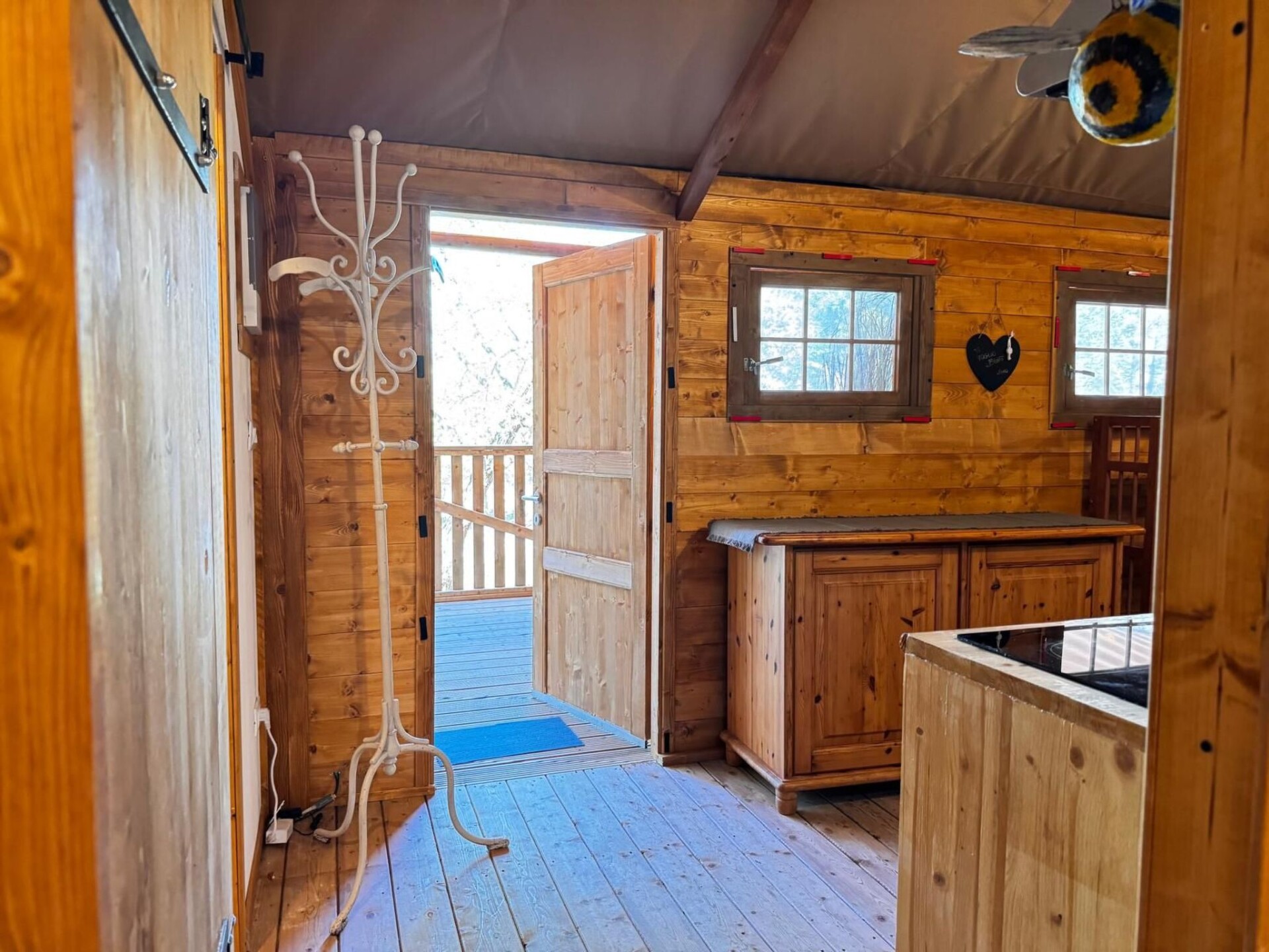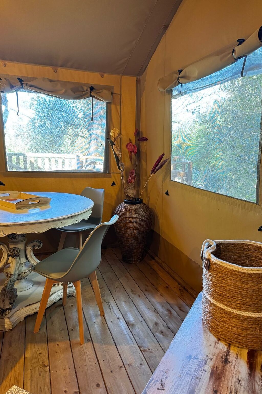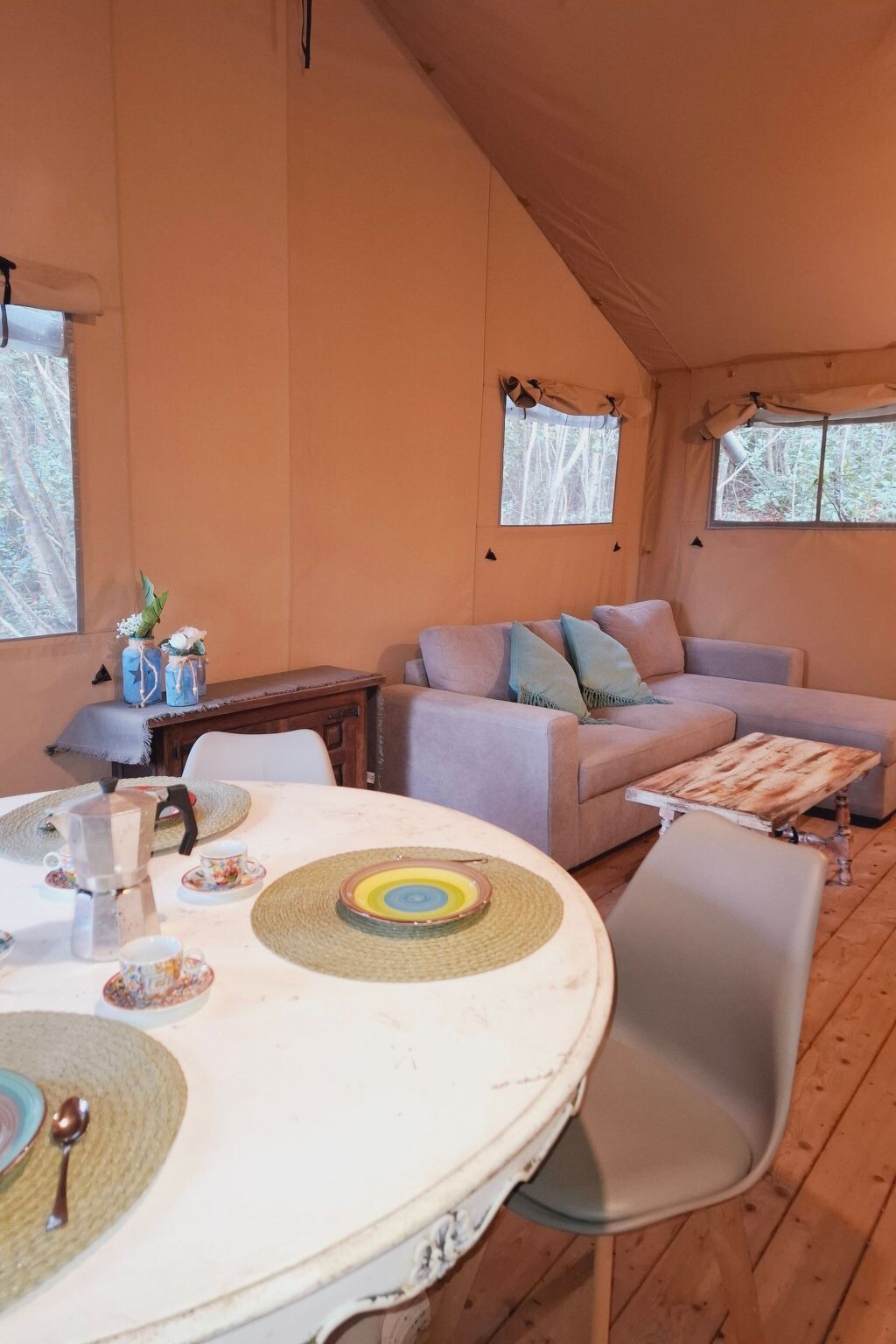 Located in the heart of Tuscany, in Monterotondo Marittimo, this villa offers ideal accommodation for 6 persons, guaranteeing a peaceful and relaxing stay. The property, located on the ground floor and free on four sides, opens directly onto the edge of an enchanting forest, promising a break from everyday life immersed in nature.Halfway between camping and glamour: glamping is the new frontier of green tourism.Imagine only the positive aspects of a holiday in the open air... we take care of the rest.A tent already set up and equipped with all comforts!These are to all intents and purposes tents, but spacious and equipped with all comforts, beds with mattress, air conditioning and private bathroom.We have created this new glamping area within the farm's centuries-old forest in order to experience contact with nature even more fully. Obviously you will be able to fully enjoy all the services and spaces of the agriturismo.A bungalow made of wood and fabric. The wooden floors and walls provide a touch of glamour, while the large veranda is ideal for outdoor dining. It has a private bathroom, air conditioning, internet Smart TV, free WiFi. Large kitchenette equipped with everything you need (crockery, fridge, microwave), living room with sofa bed, two double bedrooms. Private bathroom inside.The kitchen, practical and functional, is equipped with an induction cooker, a coffee machine with pods, a dishwasher and an electric kettle, offering everything you need to prepare and enjoy meals in the tranquillity of your own accommodation.Guests can enjoy the shared use of a swimming pool, perfect for cooling off during summer days, while the communal garden offers the ideal space for relaxing in the open air or enjoying pleasant moments with your pet; yes, four-legged friends are welcome, even large ones.Finally, the villa imposes some restrictions on group bookings and youth groups, ensuring a quiet atmosphere suitable for families or groups looking for a relaxing holiday away from the daily hustle and bustle. IT053027B5W2L6E56M