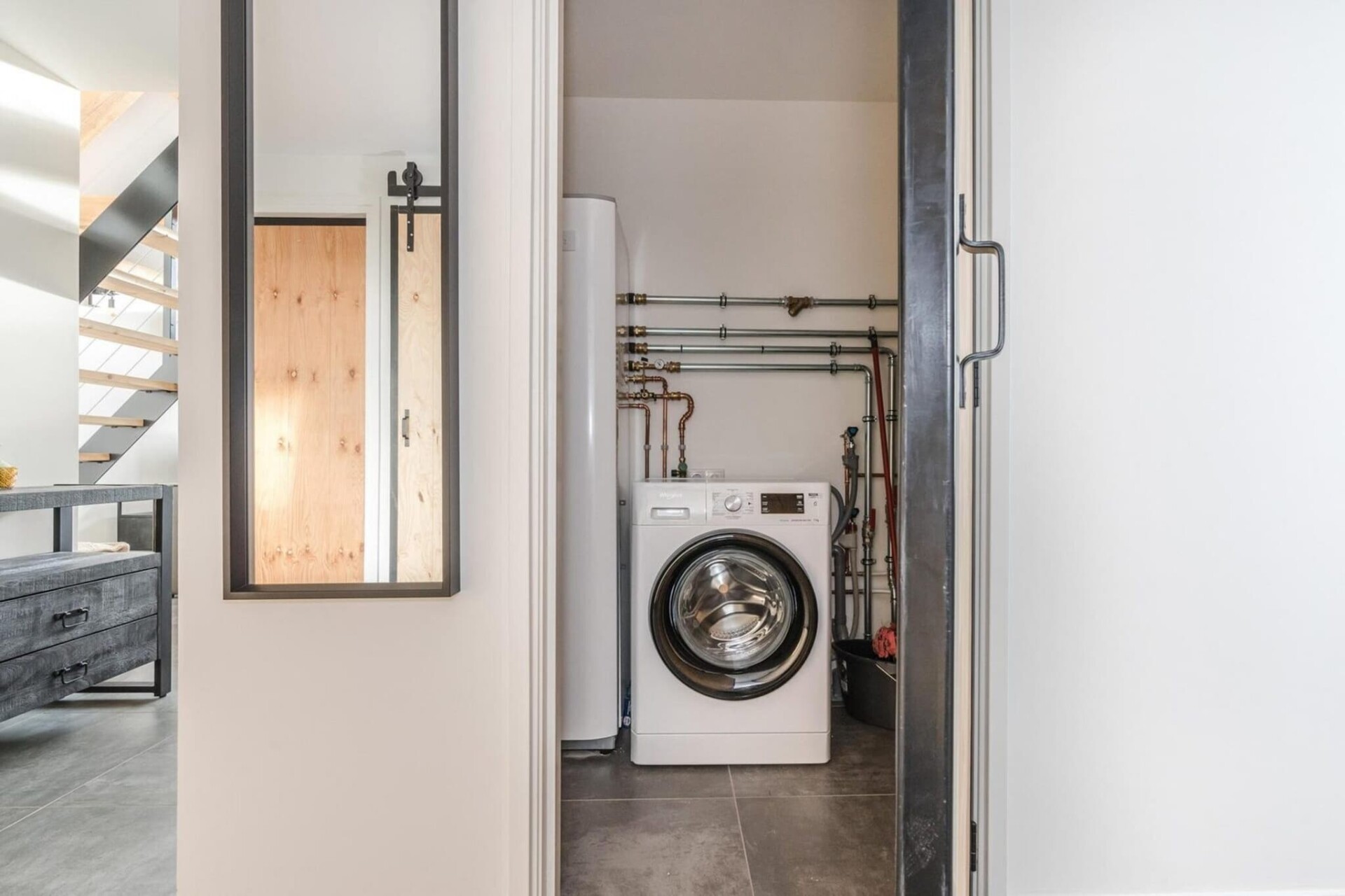 Op de begane grond zorgen twee serene slaapkamers en een moderne badkamer met douche en bad voor een rustgevende nachtrust. Boven zorgt een knusse master suite met en-suite badkamer voor extra privacy. Er is ook een wasruimte met wasmachine en droger, plus een duurzame warmtepompboiler die uw verblijf milieuvriendelijk houdt. Vanuit het ruime terras met uitzicht op een rustige vijver kunt u genieten van uw ochtendkoffie of ontspannen onder de sterrenhemel. Met een eigen parkeerplaats voor twee auto's en alle comfort binnen handbereik combineert dit charmante toevluchtsoord luxe, natuur en huiselijke warmte tot een onvergetelijk verblijf.
