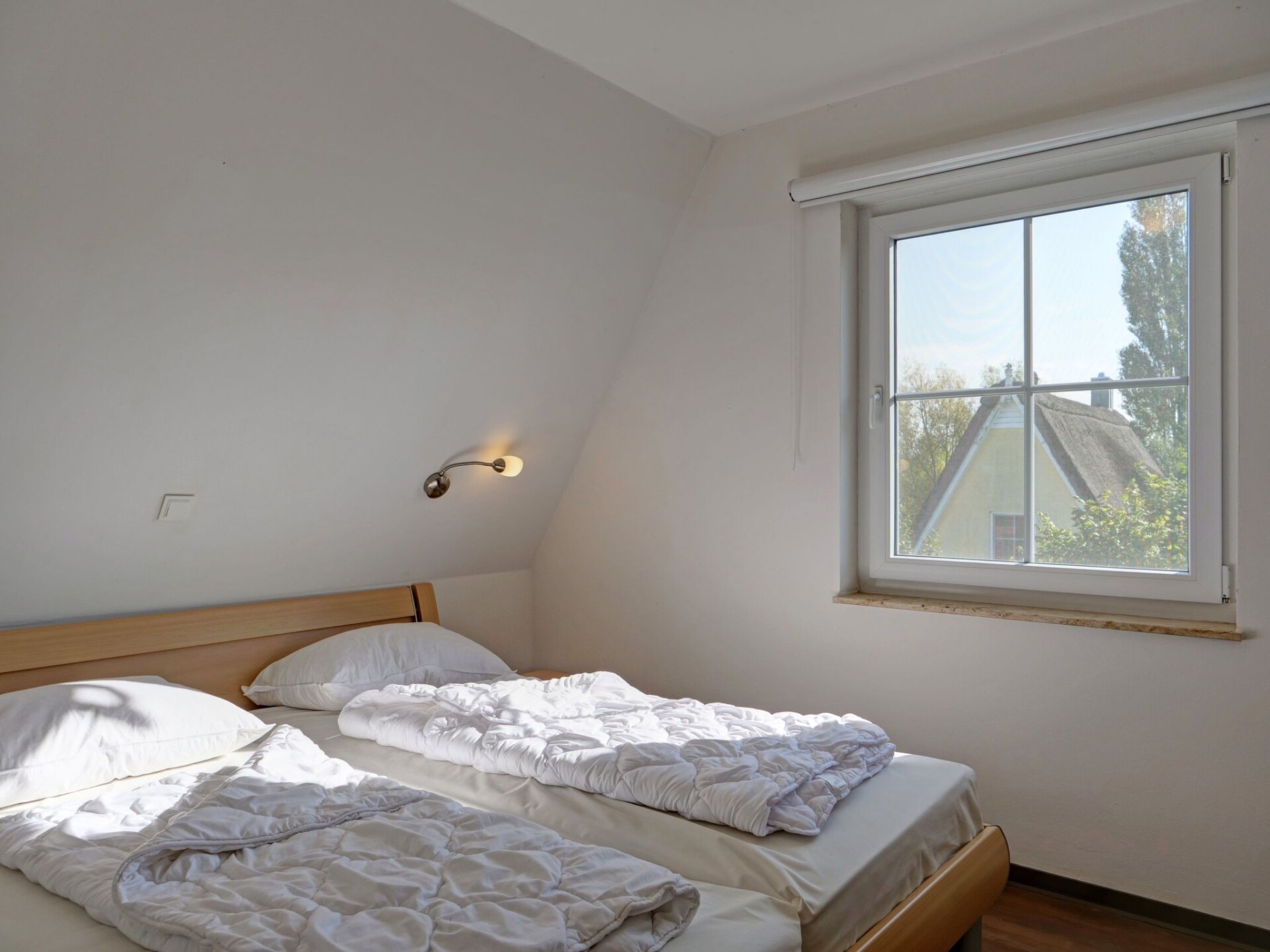 Maximaal 2 huisdieren/honden toegestaan. Discover your ideal holiday home in Beckerwitz on the picturesque Baltic Sea coast! This inviting thatched-roof holiday home offers space for up to 5 people and will be the perfect retreat for a relaxing stay. With two bedrooms, two bathrooms and a host of amenities, it is perfectly equipped to make your holiday as comfortable as possible. Pet lovers will appreciate that up to two large dogs are welcome here, so the whole family can stay together.The interior of the holiday home leaves nothing to be desired. In addition to underfloor heating in parts of the house, modern amenities such as a washing machine for sole use, a dishwasher and a coffee machine contribute to the comfort. The cosy warmth of the fireplace ensures a cosy atmosphere even on cooler days, while a kettle is always ready for a hot cup of tea or coffee.Outside, a terrace invites you to enjoy the fresh sea air and spend relaxing hours outdoors. The holiday home is detached, surrounded by a garden for exclusive use, which guarantees optimum privacy. There is also a pool for communal use - ideal for cooling off on warm days.The area surrounding the holiday home offers numerous leisure activities. Just 774 metres separate you from the beach and the sea, allowing for water sports activities and relaxing days by the water. There is a grocery store just 1.5 kilometres away for your daily needs. The proximity to the old Hanseatic cities of Lübeck and Wismar, especially Wismar as a UNESCO World Heritage Site, also promises cultural experiences and historical discovery tours.In this holiday home in Beckerwitz, you will find the perfect blend of relaxation, comfort and nature experience. Make it your base for an unforgettable holiday on the Baltic Sea coast, enjoy the idyllic setting and the numerous possibilities that the region has to offer. Your well-being is the top priority here, so you can enjoy your days off to the full.