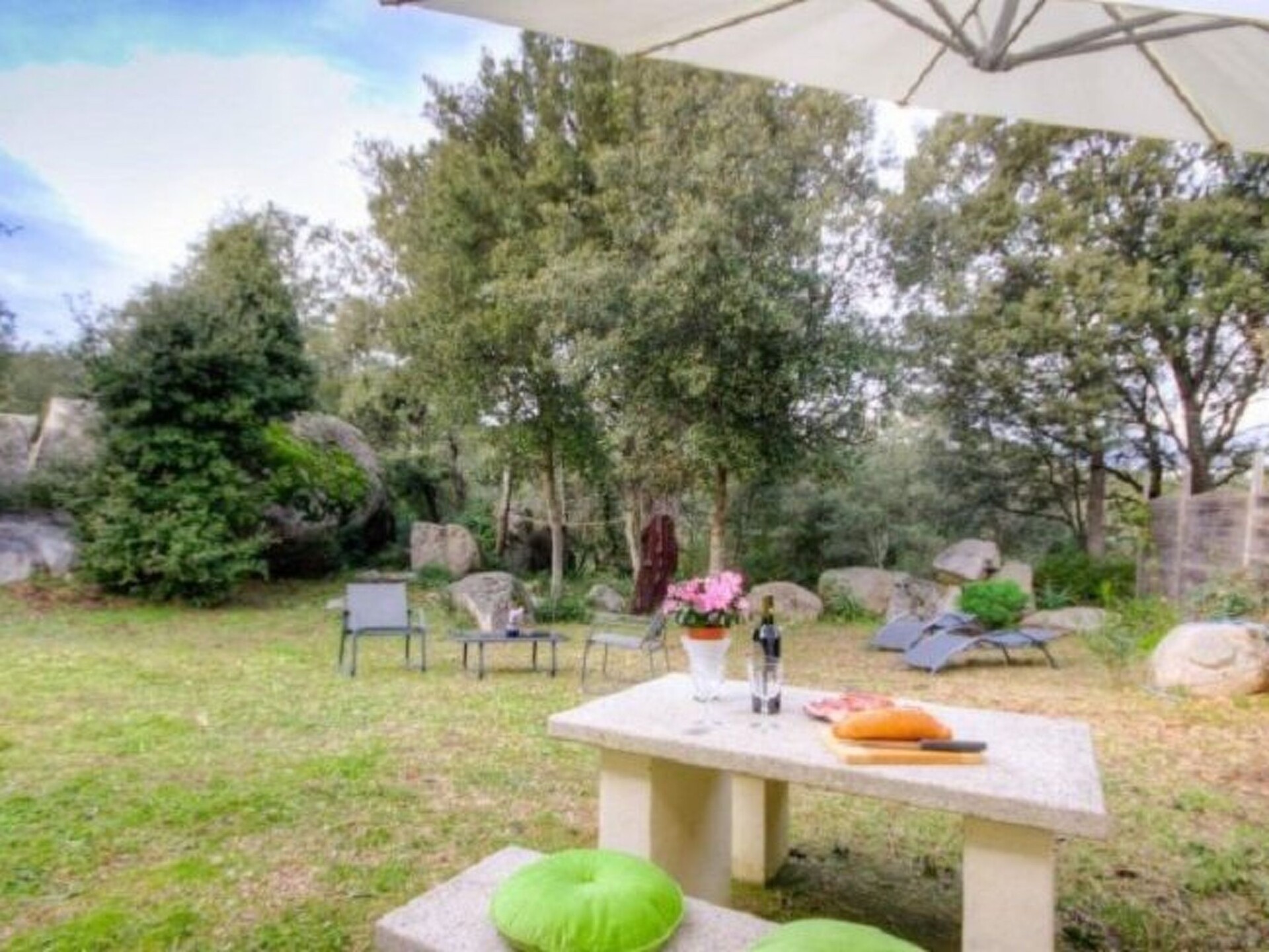 Comfortable, beautifully decorated and everything is there to make your life easier. Ideal location for a couple, 5 km from Porto-Vecchio and 1 km from the beach, in the heart of unspoilt countryside, close to everything.outdoor facilities Terrace Garden furniture Sun loungers Car park Barbecue Beach kit, parasol, mats, cool boxOne bedroom with a 160cm bed, living room with a 140cm sofa bed, fitted kitchen, shower room with shower, washbasin and WC, fitted storage space. The accommodation is accessed via a terrace and there is a garden under the oak trees on the other side of the property. The interior furniture is solid wood. The kitchen is equipped with a top fridge with a freezer compartment, an extractor hood, a 3-burner gas hob and an electric hob, a microwave oven, a grill oven, an electric coffee maker, a food processor (blender, mixer), a pressure cooker, a complete set of pots and pans and lids, all the accessories needed in a kitchen (colander, graters, set of knives, bottle opener, corkscrew, salad bowl, etc.) and a washing machine.Table service for four people, water glass, wine glass, champagne flute, aperitif glass, bowl, coffee set, ironing board and iron.Very well located, close to everything (shops, restaurants, beaches, etc.) and away from the hustle and bustle in unspoilt countryside. 17342