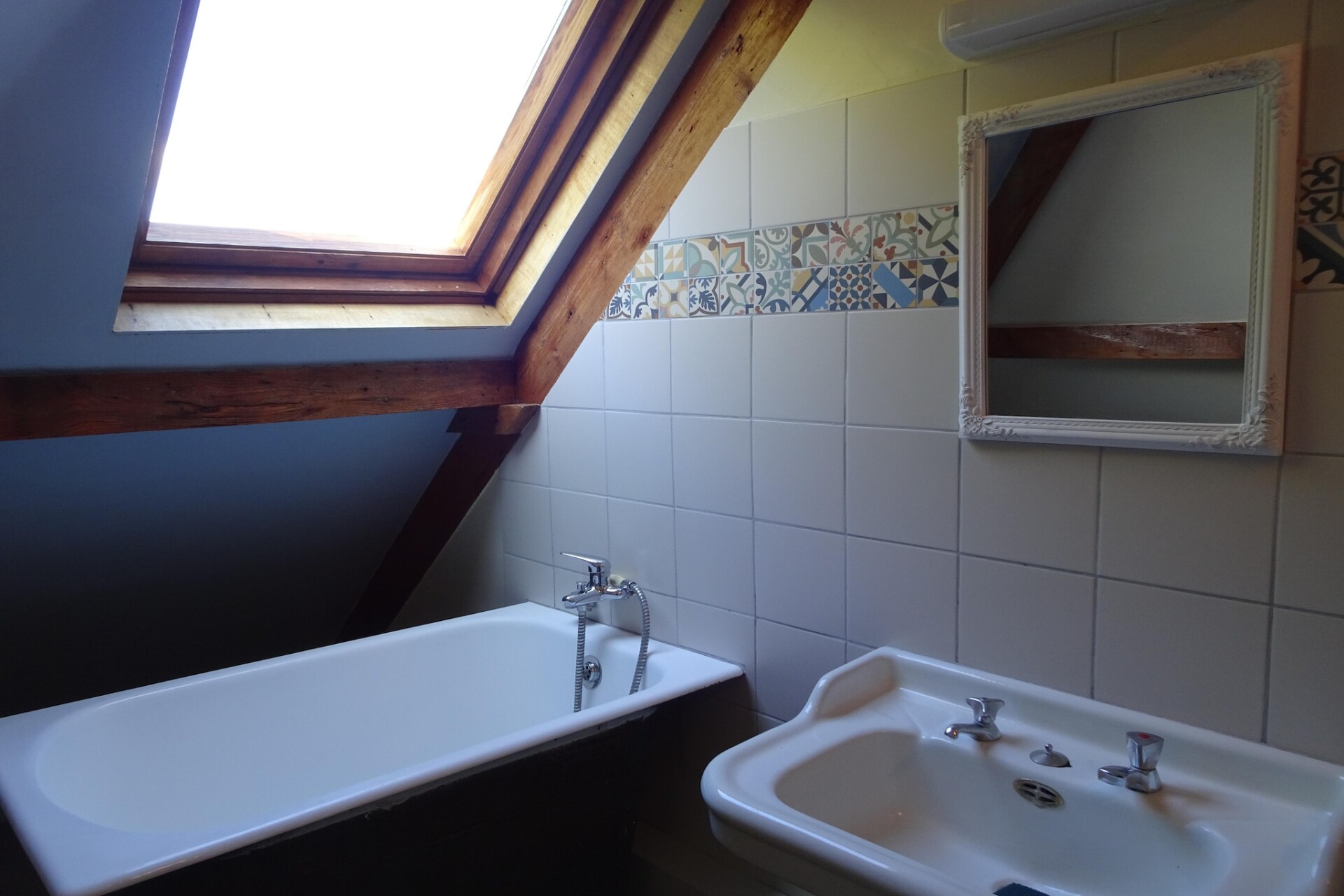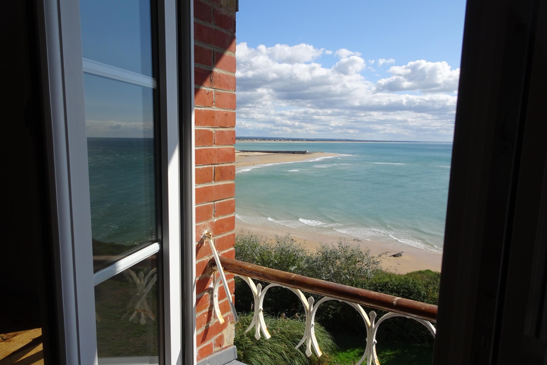 Het hoogtepunt van deze charmante oude villa is de fantastische ligging boven het strand van La Potinière. Vanuit de grote tuin en bijna elke kamer in het huis heeft u een prachtig uitzicht op de zee en het kustgebied. Binnen is het vakantiehuis zeer eenvoudig en rustiek ingericht, maar het biedt voldoende comfort voor een fijne vakantie in Normandië. Het trappenhuis en de muren van de gang zijn nog niet gerenoveerd. Op de muren staan opschriften, correspondenties van de Amerikanen tijdens de oorlog.