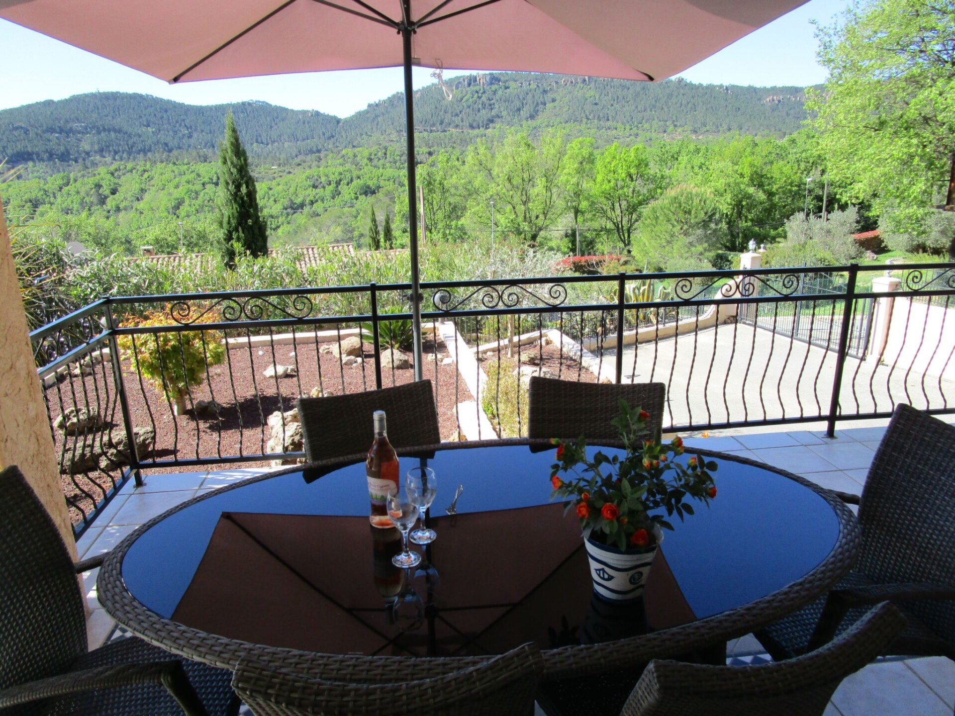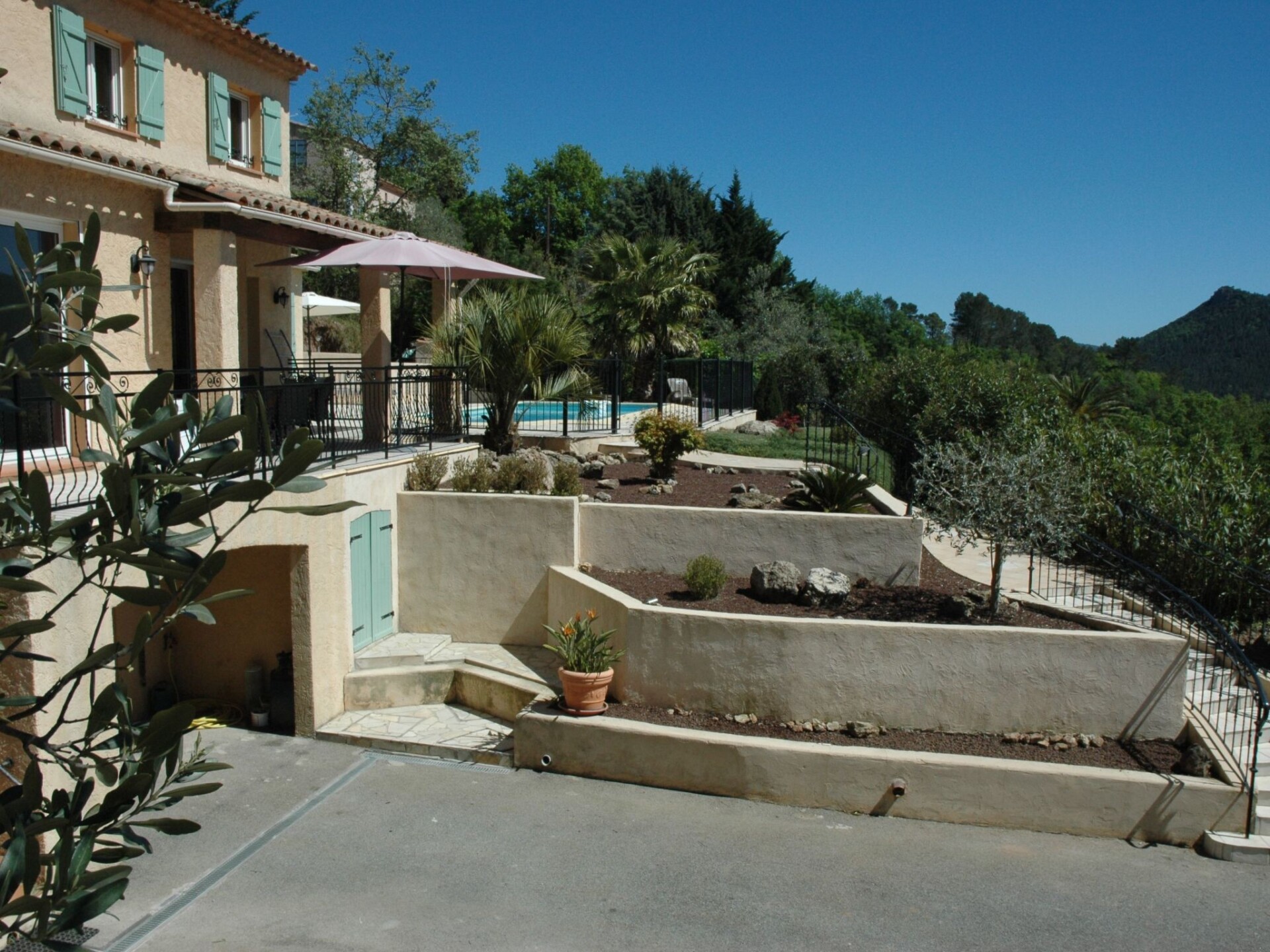 Mooie vakantiewoning met zwembad in Provence nabij Côte d'Azur voor 6 personen +baby. Er is overal AIRCO voorzien die reversibel is. Warmte op frisse momenten en koelte bij hete zomertemperaturen. Prachtig vrijstaand vakantiehuis gelegen in het achterland van de Middellandse Zee. Op loopafstand van het dorpscentrum waar er talrijke terrasjes en restaurantjes zijn. Er is een Carrefour met benzinestation op 2 km afstand van onze vakantiewoning. Terras aan zwembad zonder inkijk van de buren . Beneden slaapkamer met een 2 persoons bed (160x200cm)1ste verdieping 4x één persoonsbedden ( 90x200cm) +1 kinderbedjeEr is op elke slaapkamer +living en salon Airconditioning aanwezig die op koudere momenten kan omgevormd worden tot verwarming.Onze woning omvat een kelderverdieping waar zich de Garage (voor 1 auto) en de wasplaats (met wasmachine en droogkast) bevind. Hier staat ook een extra kleine ijskast .Op de begane grond hebben we een aparte WC, een mooie ruime living waarin een salon en eetkamer gedeelte is. Flat screen TV met satelliet post. DVD speler en Radio CD speler. Gratis Wifi. Annex de keuken met alle mogelijke comfort en toestellen . Zeer goed gevulde bestek en servies kasten. Aanwezig toestellen : Traditionele Oven, Magnetron, Combi ijskast, vaatwasser, broodrooster, waterkoker, koffiezetapparaat + Senseo, elektrische Weber BBQ, wasmachine en droogkast, strijkijzer en strijkplank. Een slaapkamer met 2-persoonsbed (1.60m x 2m) met badkamer waarin wastafel en douche.Op de bovenverdieping een apart 2de toilet , een 2de badkamer ( met dubbele wastafel en inloop-douche) en 2 slaapkamers. Op de eerste verdieping zijn er 4 eenpersoonsbedden + een kinderbedje Ons hele domein is omheind met ijzerwerk en afgesloten door een automatische poort. Dus wel geschikt voor een klein hondje , deze kan niet ongezien weglopen. Honden worden niet toegelaten in het zwembad omdat ze schade kunnen aanrichten met de nagels aan de zwembad liner. Om dezelfde reden is zwemmen met zwemvliezen ook verboden. Omdat ons huis op een helling gelegen is heb je een mooi idyllisch panoramisch zicht in de bergen. Vanop een terras aan de eetkamer kijk je uit op een gezellig rotstuintje. Een elektrische Weber BBQ staat ter jou beschikking. Een tweede terras ( absoluut zonder inkijk door de buren) bevind zich aan het zwembad. Een privézwembad van 8m x4m met Romeinse trap. Naast de tuinmeubelen zijn hier ook 6 ligbedden ter beschikking. Ons huis is moeilijk toegankelijk voor rolstoelgebruikers. Wij aanvaarden 1 KLEINE hond indien hij zindelijk is. Hiervoor vragen wij echter een vergoeding voor onze poetsdame . Roken liefst buitenshuis aub.Voor verhuringen tijdens de maanden November-December-Januari-Februari-Maart en April wordt de elektriciteit gerekend naargelang verbruik aan 0.40/KWU Het centrum van Bagnols en Forêt is op 800 m wandelafstand. Hier zijn verschillende terrasjes en restaurantjes met zeer goede prijs/kwaliteit verhouding. Op 2 km is er een Carrefour met benzinestation. Meerdere winkelgelegenheden kan je op 10 km vinden. Fréjus-plage is op 16 km maar op 10 km afstand kan je heerlijk zwemmen, waterfietsen... aan het meer van St Cassien. Het walhalla van de golf nl Terre Blanche is op 8 km afstand. Hele mooie wandelingen maken is er ook geen probleem. Voor mountainbikers zijn er vele circuits te vinden. Basisinformatie - Huisdieren toegestaan: 1 - toegestaan maat van hond: klein (tot 30 cm) - Accommodatietype: vakantiehuis - bevindt zich in: niets van toepassing - type gebouw: eengezinshuis - totaal aantal verdiepingen in het gebouw boven de begane grond: 2 - perceeloppervlakte: 1400 m² - bouwjaar: 2000 - laatste uitgebreide renovatie: 2015 - vrijstaand object - bescherming tegen inkijk - geen groepsboeking - geen jeugdgroepen - aantal slaapkamers: 3 - aantal badkamers: 2 Top eigenschappen - wifi - airconditioning: overal - verwarming: overal - balkon - terras - tuin: voor alleengebruik - geheel afgesloten (met muur, hek of heg) - Buitenzwembad - ㄴ voor alleengebruik - ㄴ maximale diepte: 80 cm - ㄴ lengte: 800 cm - ㄴ breedte: 400 cm - privéparkeerplaatsen in totaal: 3 - ㄴ daarvan parkeerplaatsen in garage: 1 - ㄴ daarvan parkeerplaatsen in carport: geen - ㄴ daarvan privéparkeerplaatsen buiten: 2 Slapen slaapkamer 3 - tweepersoonsbed (van 1,51 m tot 1,79 m breed) slaapkamer 6 - 2x eenpersoonsbed slaapkamer 9 - 2x eenpersoonsbed - kinder-/babybed Badkamer badkamer 3 - douche - wastafel badkamer 6 - douche - daglicht toilet - wastafel Koken/Wonen - koffiezetapparaat: koffiezetapparaat, koffiezetapparaat met pads - koelkast/vriezer: diepvriesvak, diepvrieskast, koelkast - kookplaat: elektrische kookplaat - afzuigkap - oven - broodrooster - magnetron - waterkoker - vaatwasser - oppervlakte keuken: 12 m² - aantal eettafels: 3 - maximaal aantal zitplaatsen: 6 - aantal woonkamers: 1 - zonwering voor woonkamer - open haard - kachel Entertainment - televisie: satelliet-tv - dvd-speler - muziekinstallatie - radio - gezelschapsspellen voor volwassenen Voor kinderen - kinderstoel - kindertoiletbril - gezelschapsspellen voor kinderen Huishouden - wasmachine: voor alleengebruik in het object - wasdroger: voor alleengebruik in het object - strijkijzer - stofzuiger - ventilator: 2 - rookmelder Toegankelijkheid - hellingbaan naar de vooringang - douchekruk Buitenbereik - barbecue: elektrische BBQ - buitendouche Omgeving - uitzicht: tuin, bos, weide, berg - dichtstbijzijnde centrum van een plaats: 800 m - levensmiddelenzaak: 2,5 km - uitgaansgelegenheid: 15 m - restaurant: 800 m - station: 15,0 km - vliegveld: 46,0 km - snelweg: 16,0 km - afstand openbaar vervoer: 1,0 km - strand: 15,0 km - kiezelstrand: 15 m - zandstrand: 15,0 km - water (zee, meer enz.): 15 m - zee: 15,0 km - meer: 10 m - watersport: 10,0 km - aanlegplaats: 15,0 km - boot inclusief: waterfiets - visstek: 10,0 km - golfplaats: 5,0 km - fietsverhuur: 2,0 km - wandelpad: 1,0 km