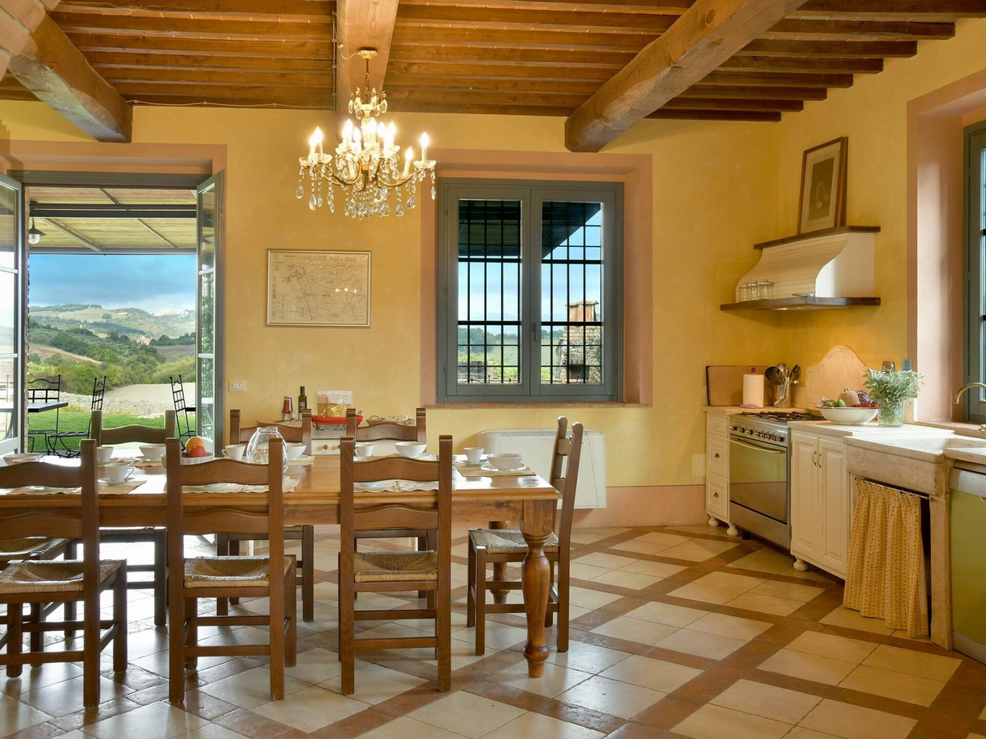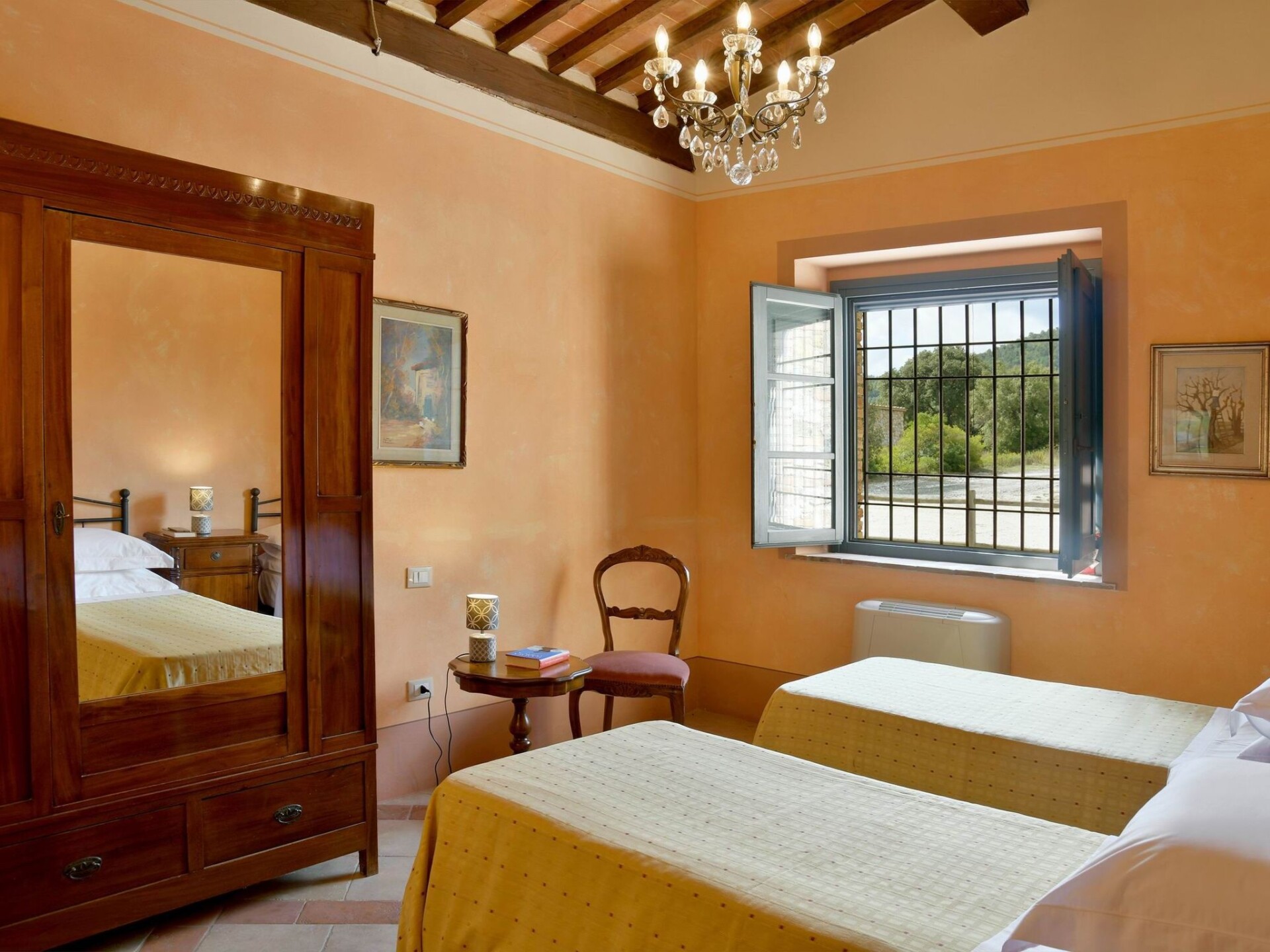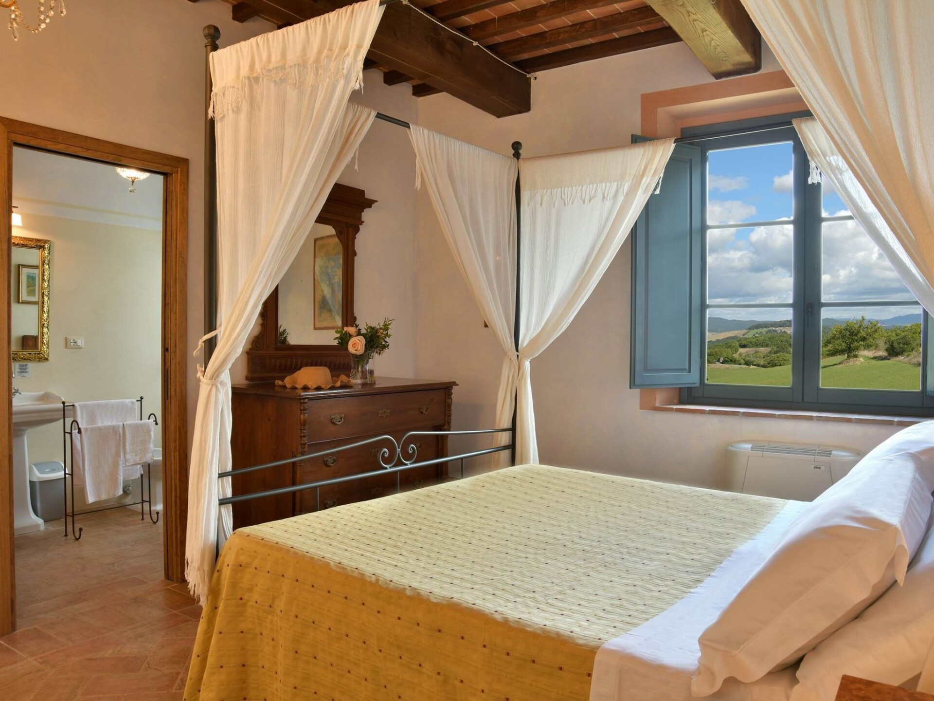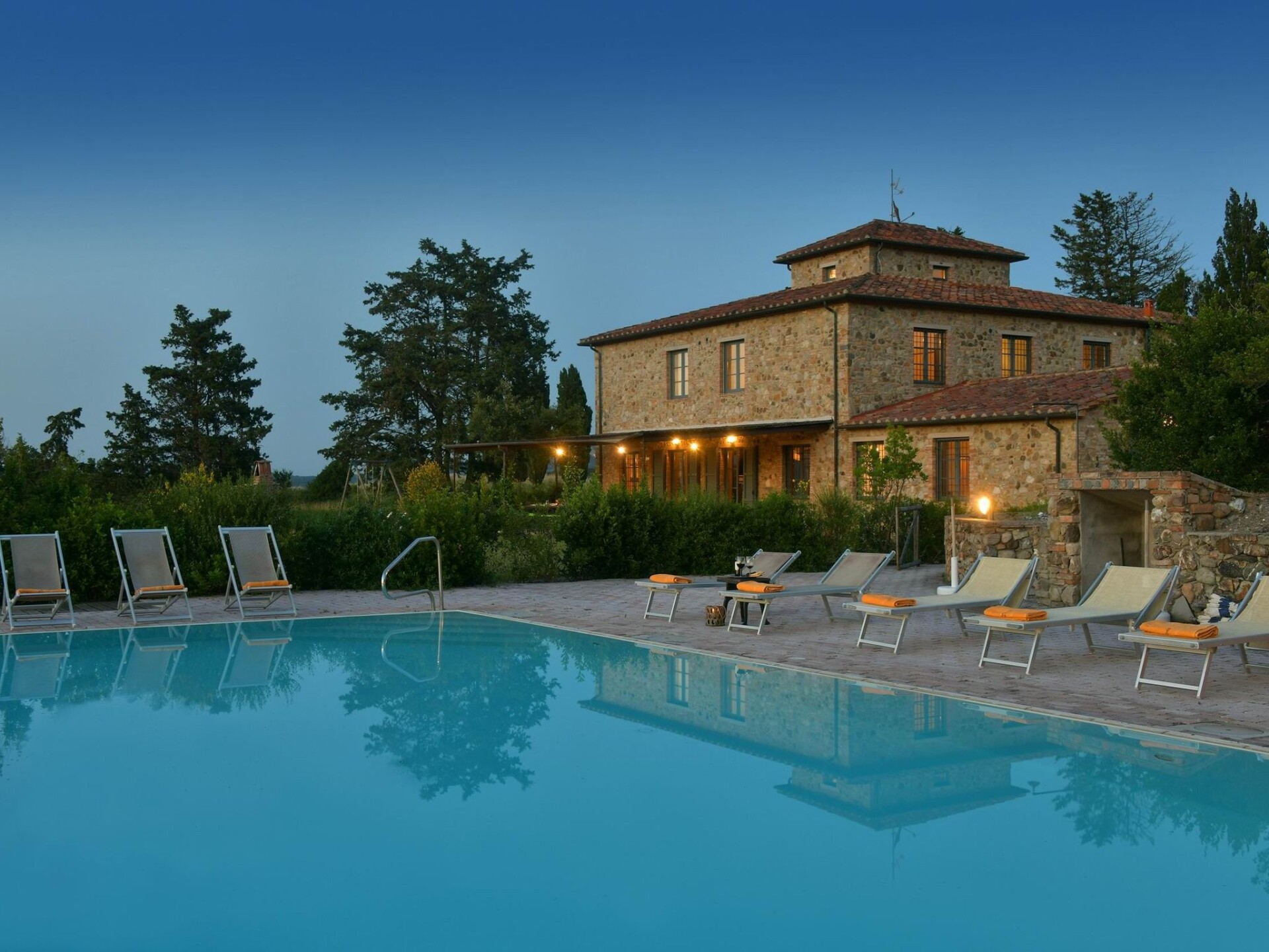 Maximaal 2 huisdieren/honden toegestaan. This Tuscan farmhouse with swimming pool, air conditioning and Wi-Fi has been carefully restored, paying particular attention to preserving its traditional features, and can accommodate up to 22 people.The villa, located in an area of absolute tranquillity and silence, ideal for a relaxing holiday, has a large garden with a covered porch and barbecue, ideal for al fresco dining, as well as a children's playground and table tennis table.The jewel of the garden is the infinity pool (fenced, 12x6 m, up to 150 cm deep, heated on request, open from May to September).Situated in a very quiet area, the 500 m² villa is divided into two independent flats, one for 8 guests and the other for 14. There are 10 bedrooms with private bathrooms and a tower with two single beds.Both flats extend over two floors.Flat for 8 guests: ground floor with living/dining room with fireplace, fully equipped open kitchen (gas cooker, oven, refrigerator with freezer, microwave, American coffee maker, mocha coffee maker, toaster, blender, juicer, kettle, dishwasher) and 1 twin bedroom, 1 double bedroom, each with private bathroom with shower. First floor: 2 double rooms with canopy, each with bathroom with shower.Flat for 14 persons: Ground floor with large living room, fully equipped open kitchen (gas cooker, oven, fridge with freezer, microwave, American coffee maker, moka, toaster, blender, juicer, kettle, dishwasher), fireplace, dining area and 1 twin bedroom, 1 double bedroom, each with private bathroom with shower. On the first floor are 4 double bedrooms with canopies, each with private bathroom with shower. Access to the tower, where there are two single beds and a bathroom with shower.Amenities: Wi-Fi, satellite TV, washing machine, hairdryer, mosquito nets, heating, air conditioning in all rooms, safe, 1 cot and 1 high chair, courtesy set in each bathroom, fire extinguisher, first aid kit for emergencies, large private car park, pets allowed.It is located in the heart of the Etruscan Coast, between Volterra (30 km) and beautiful beaches (Marina di Bibbona), 20 km away. At the same distance you can also reach Bolgheri, famous for its prestigious wines such as Sassicaia, Ornellaia, Masseto, etc.Thanks to its position, the villa enjoys a magnificent view of the surrounding countryside. Its strategic position also makes it easy to reach the nearby wellness and spa centres of the Montescudaio area, as well as to make excursions to beautiful art cities such as Pisa, Lucca, Siena, Florence or the splendid Etruscan ruins of places like Populonia.Distances: nearest shops in Casale Marittimo or Guardistallo 10 km away. Nearest restaurant and food shop 7 km. Sea 20 km; Volterra 30 km; San Gimignano 60 km; Pisa airport 73 km; Siena 85 km; Lucca 96 km; Florence 120 km. IT049001B49575MM9A